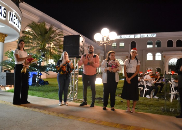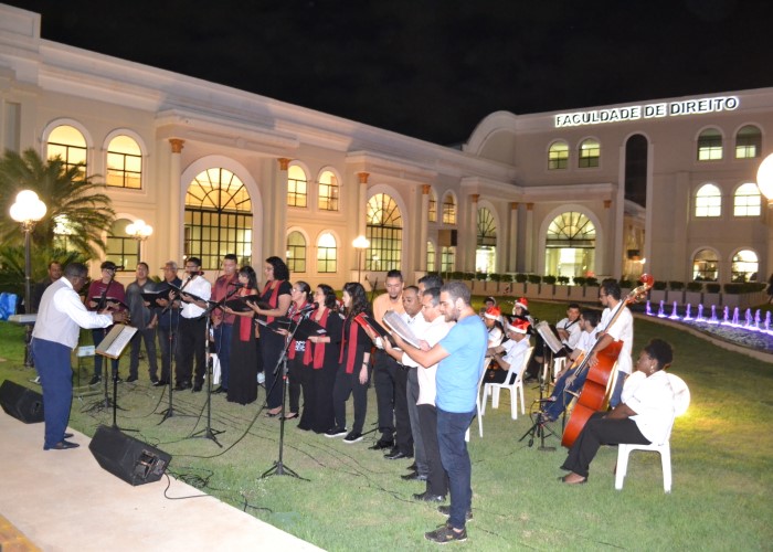 Novembro entra na reta final e Dezembro se aproxima, o mês do Natal, e para entrar no clima natalino, a Faculdade Metropolitana realizou na última sexta-feira (23) uma cantata de natal que contou com a participação do coral do curso de Música da faculdade Metropolitana e com a orquestra Vila Lobos de Porto Velho, um verdadeiro show para todos os convidados, alunos e professores que prestigiaram o evento. A noite foi cheia de surpresas, além do espetáculo musical, houve uma linda homenagem para a Diretora Geral da Faculdade Metropolitana, Dra. Maria Silvia de Carvalho pelo seu aniversário. A homenagem foi feita pela direção e colaboradores da instituição. Confira como foi essa linda noite em nossa galeria de fotos:
