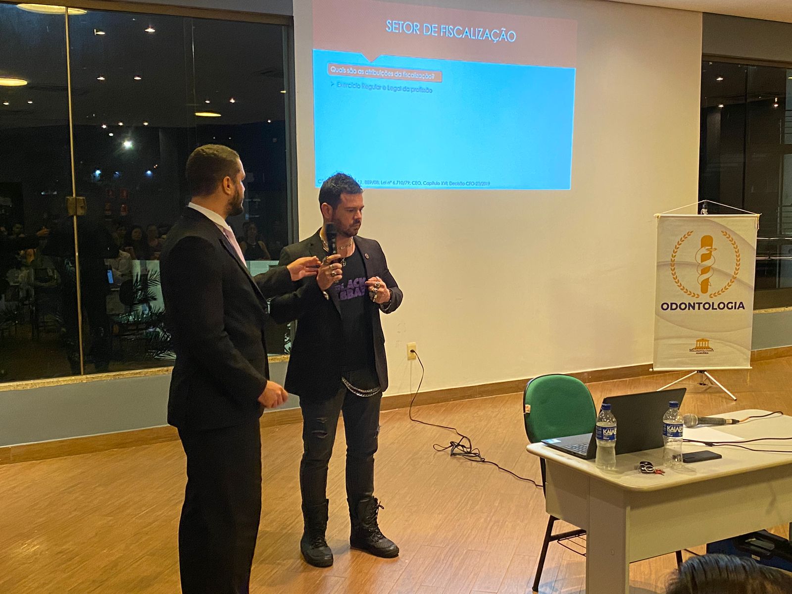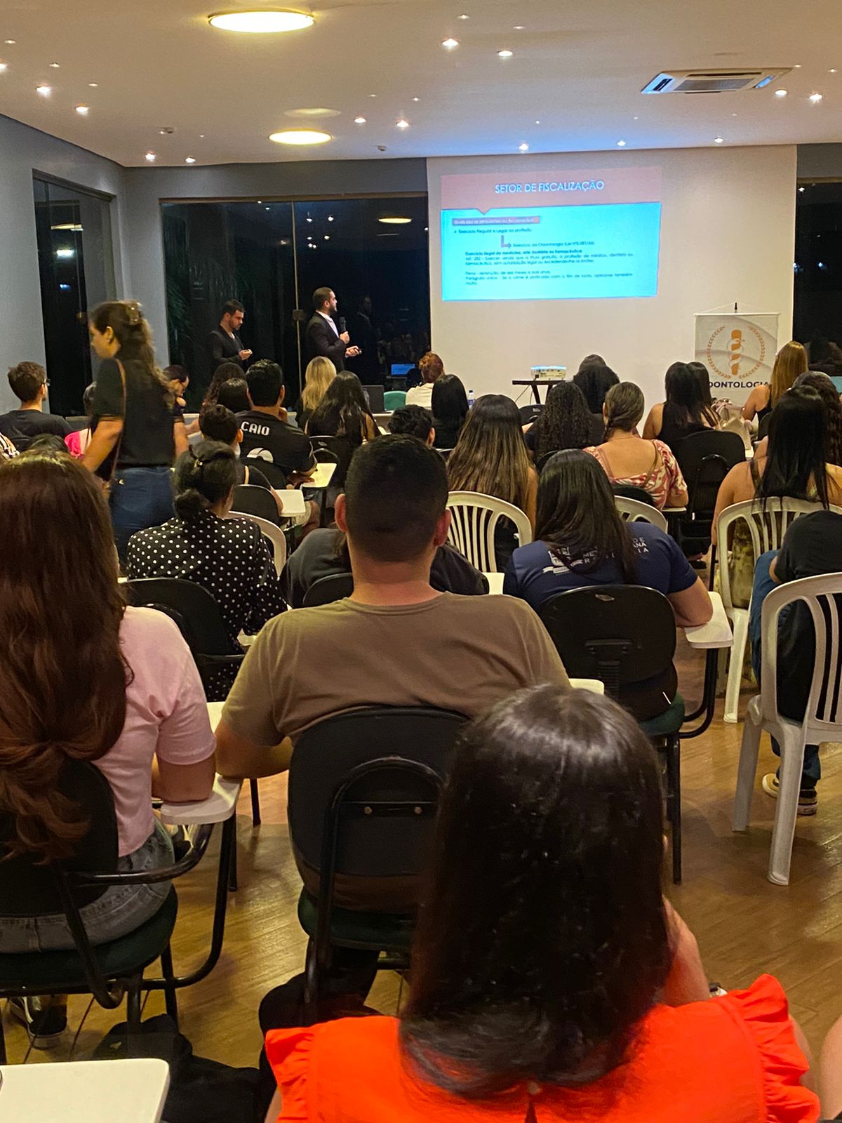 Na última semana, os acadêmicos do curso de Odontologia da Faculdade Metropolitana participaram de uma palestra enriquecedora sobre Ética na Odontologia, realizada no Salão de Gastronomia da instituição. O evento contou com a presença de dois renomados especialistas: o Dr. Lorran Lima, especialista em Odontologia Legal, e o Dr. Dellio Junior, especialista em Periodontia e Implantodontia e atual Presidente da Comissão de Ética.
