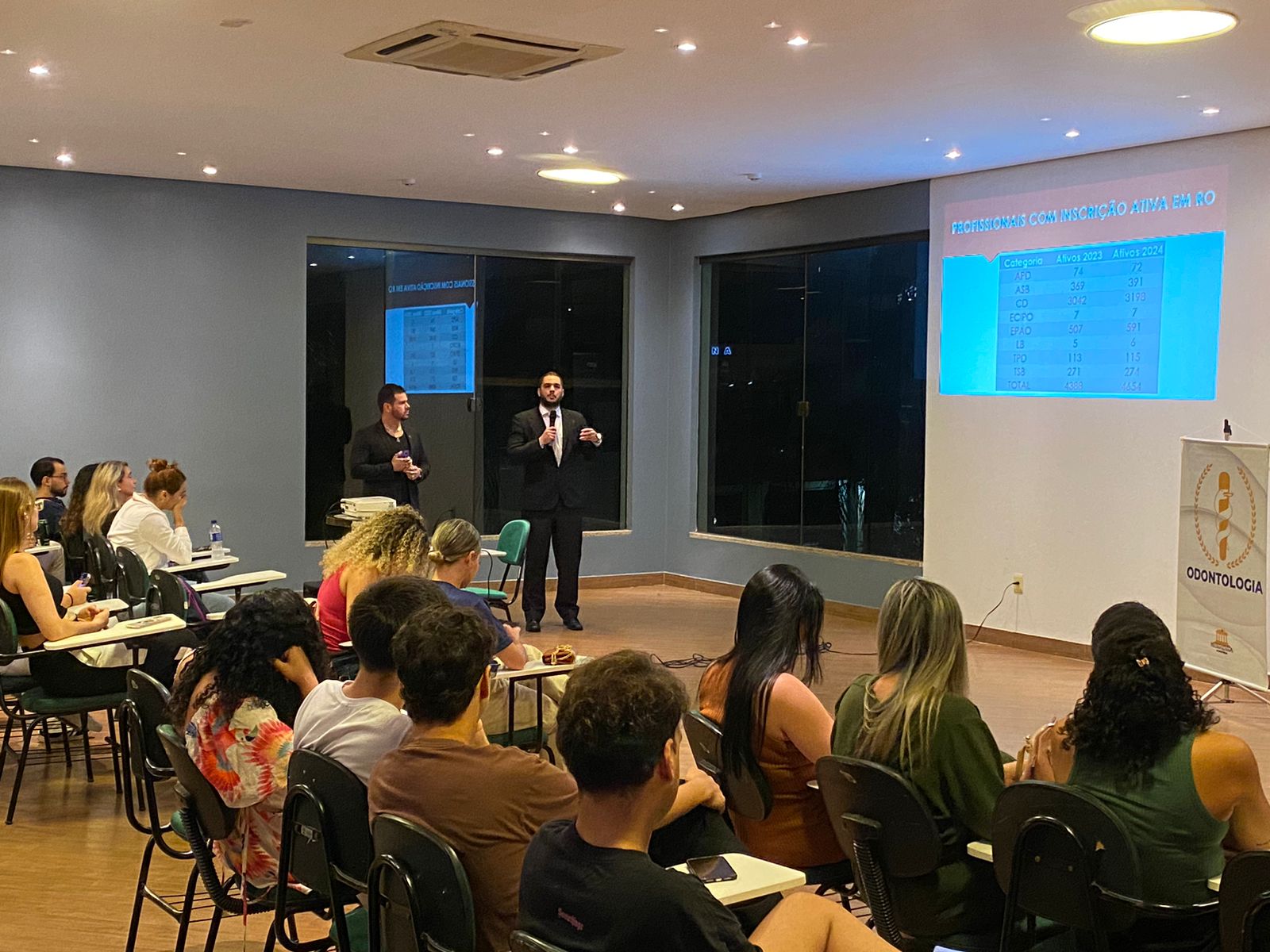 Complementando a discussão, o Dr. Dellio Junior trouxe experiências práticas de sua atuação em Periodontia e Implantodontia, além de compartilhar sua vivência como Presidente da Comissão de Ética. Ele destacou a importância de se manter um relacionamento ético e transparente com os pacientes, afirmando que “uma prática odontológica responsável e ética é fundamental para o desenvolvimento profissional e pessoal de cada futuro dentista.”