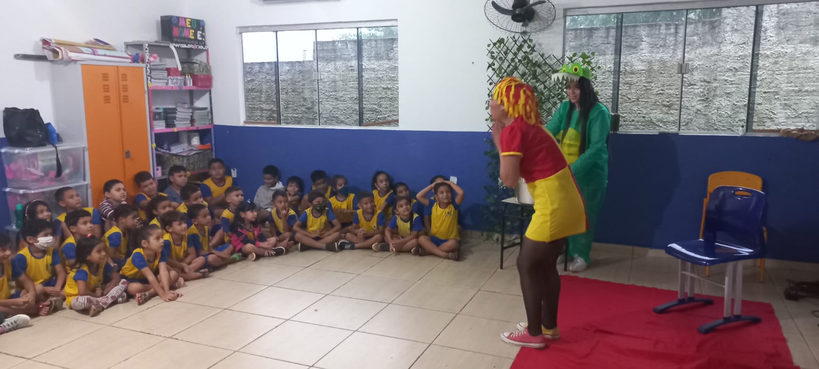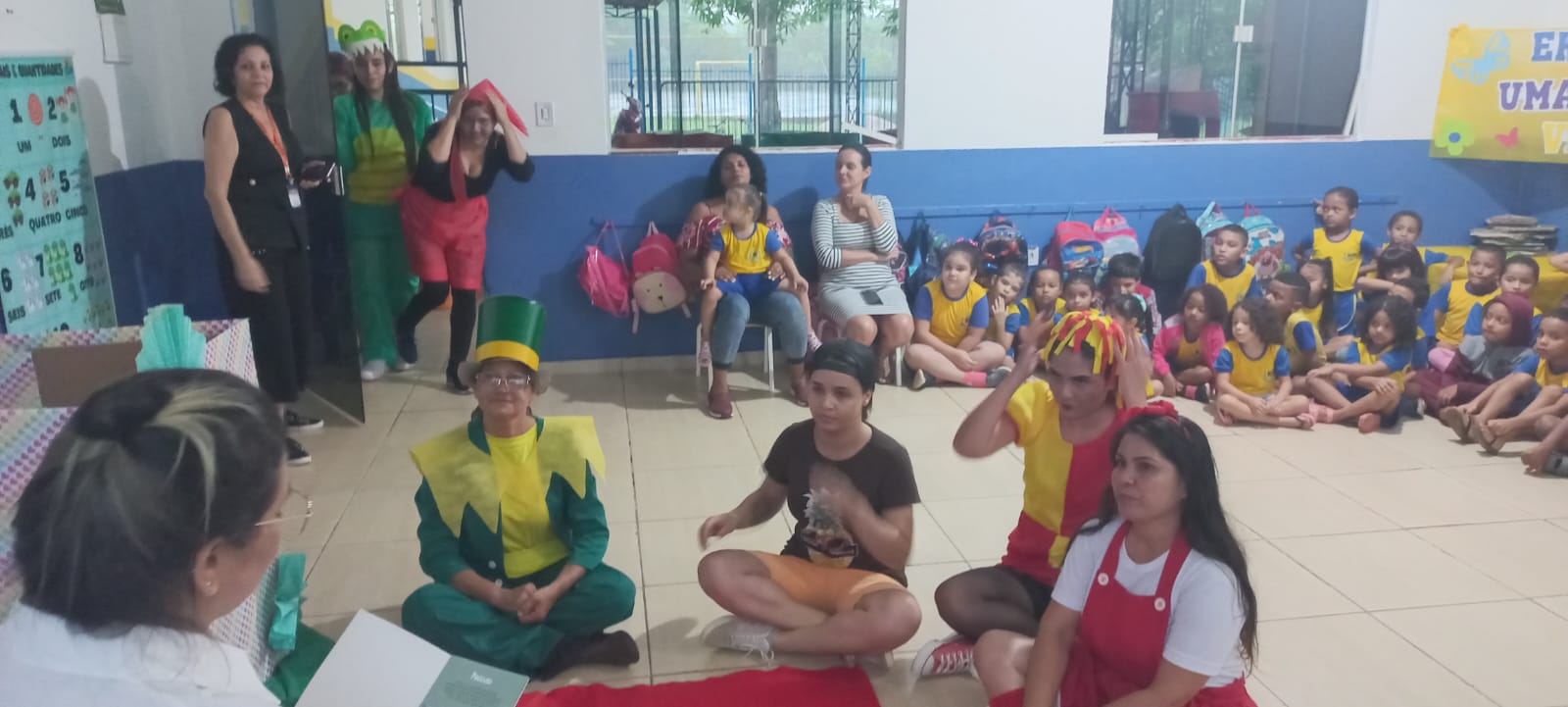 A Professora Jane Lúcia, coordenadora do estágio, descreveu a última atividade: “Se desenvolveu a partir de uma história dramatizada. O projeto aconteceu por meio de atividades interdisciplinares da disciplina de Estágio dos Anos Iniciais, junto com a disciplina de Literatura Infantil, ministrada pela professora Ana Lúcia Pollitano. A ideia dessa atividade foi trazer as teorias que foram trazidas como proposta de ensino e aprendizagem a partir das vivências, das experiências no contexto escolar.