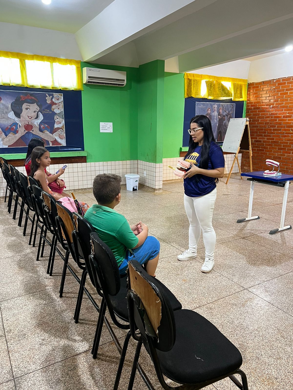 Na ação, os acadêmicos promoveram a saúde bucal, através de orientação sobre escovação e saúde e entrega de kits de higiene oral. Os alunos foram supervisionados pela professora Patrícia Chaves dos Santos.