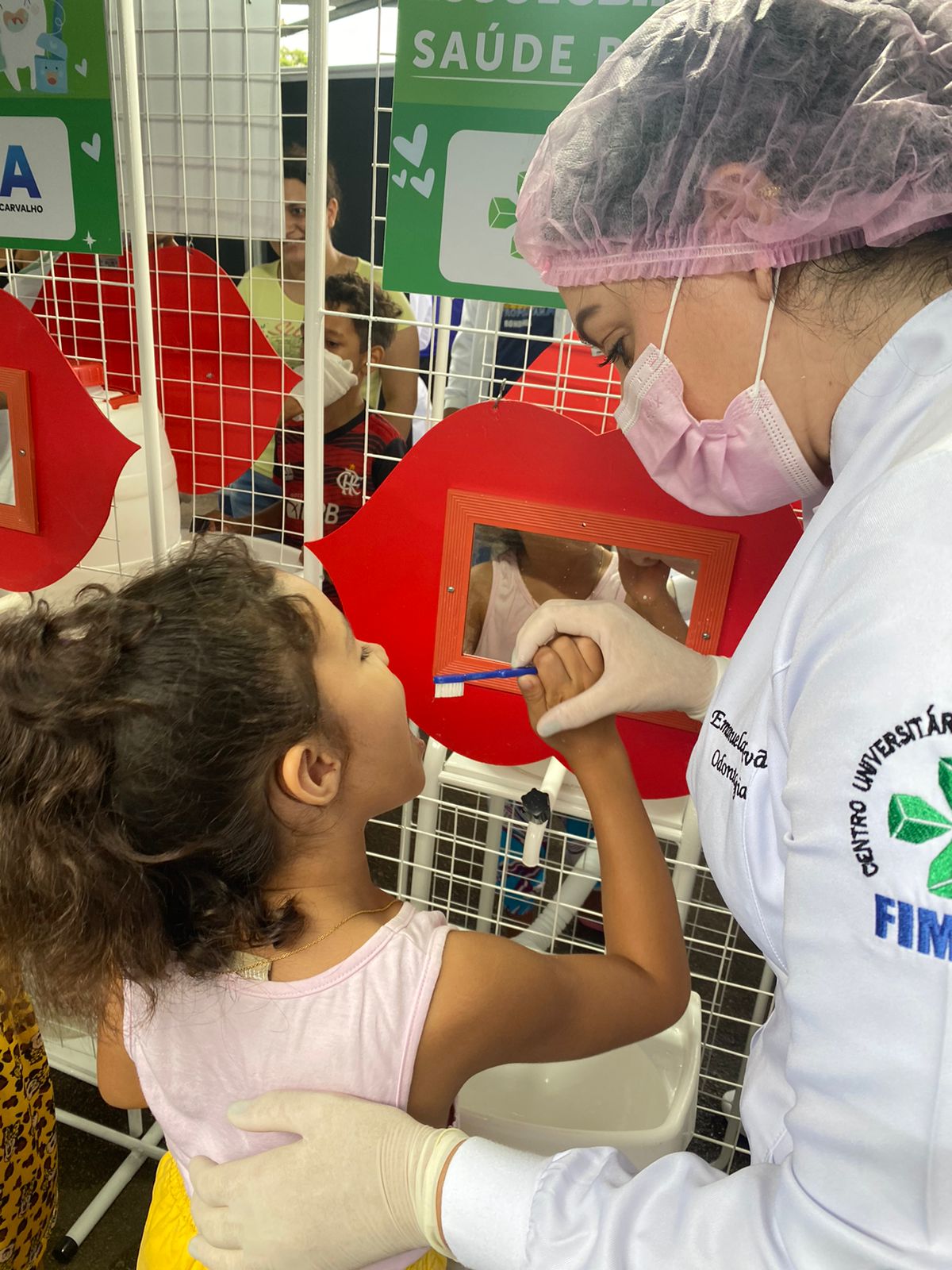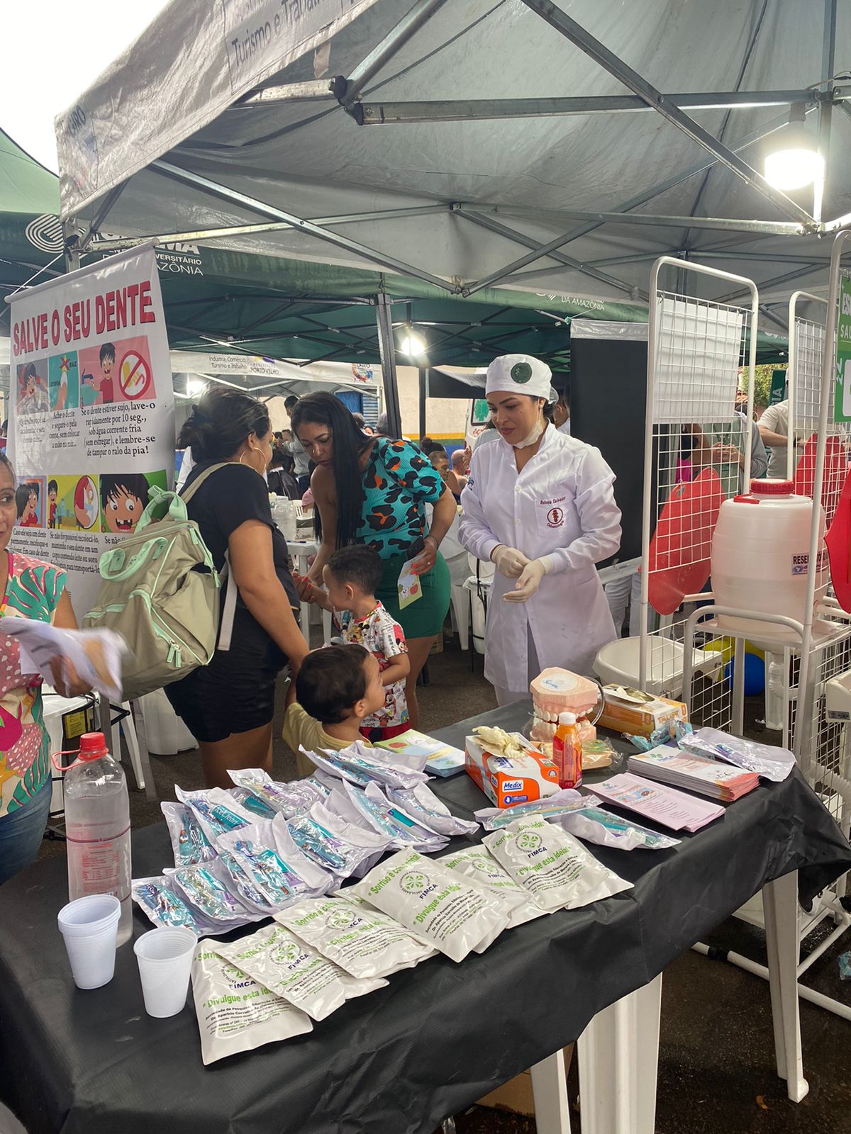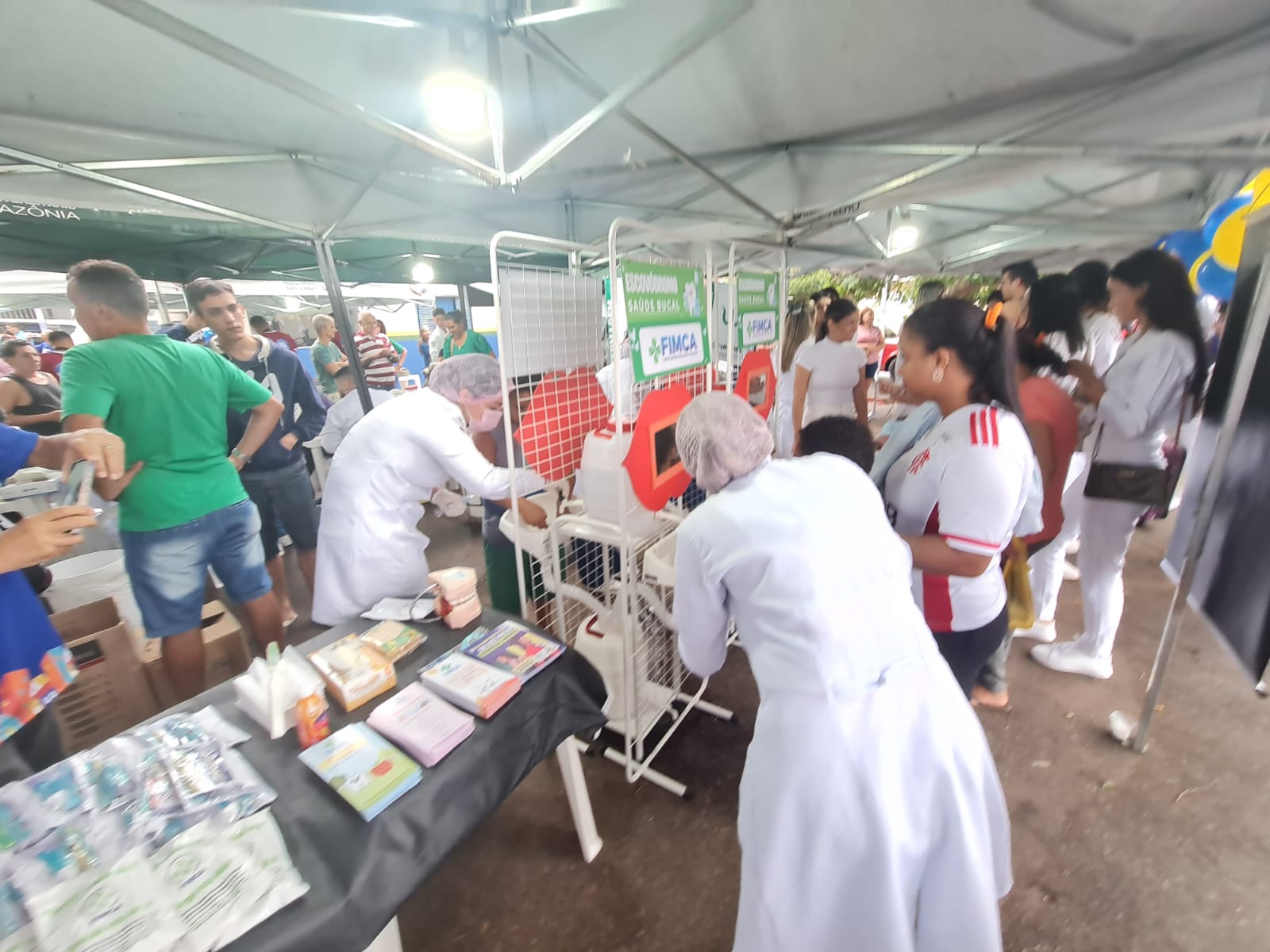 Os cursos de Estética e Cosmética, Odontologia e Farmácia desempenharam um papel fundamental durante o evento, proporcionando atendimentos que promoveram a saúde e o cuidado pessoal. Os alunos de Estética e Cosmética ofereceram avaliação e hidratação facial, demonstrando suas habilidades na área da beleza e estética, enquanto os estudantes de Odontologia compartilharam orientações cruciais de escovação e distribuíram kits de higiene bucal, reforçando a importância da saúde oral.