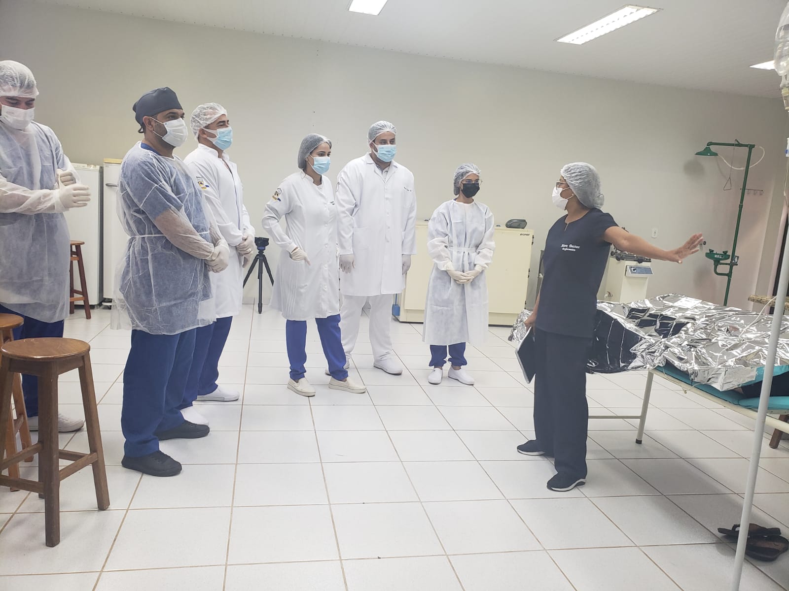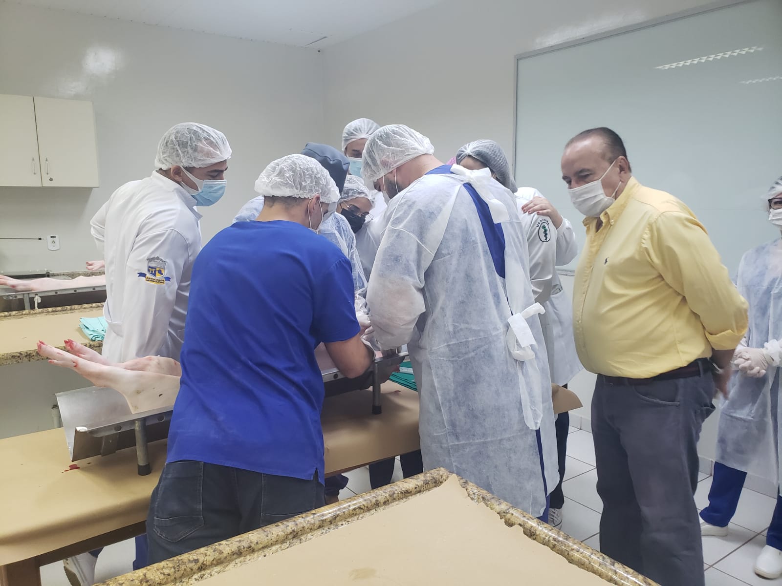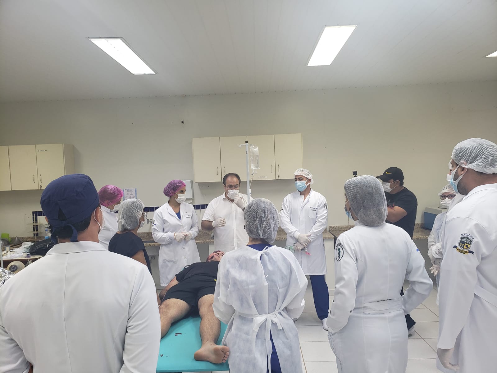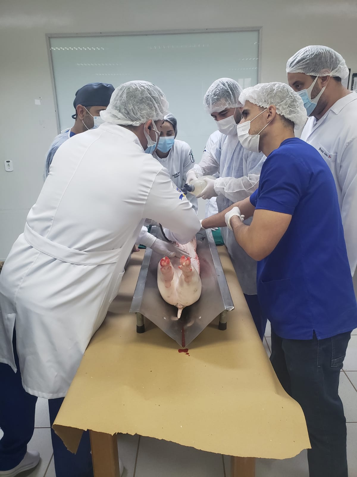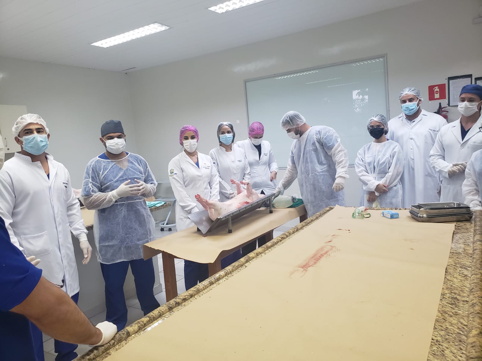A atividade aconteceu no laboratório de Técnicas Cirúrgicas e Fisiologia, para praticar o que foi aprendido na disciplina de Técnicas Cirúrgicas. Estiveram presentes o coordenador do curso Dr. Luis Maiorquim, a coordenadora adjunta Dra. Fabiana Souza, a enfermeira Mara Bastos e a coordenadora pedagógica Luciana Aguiar.