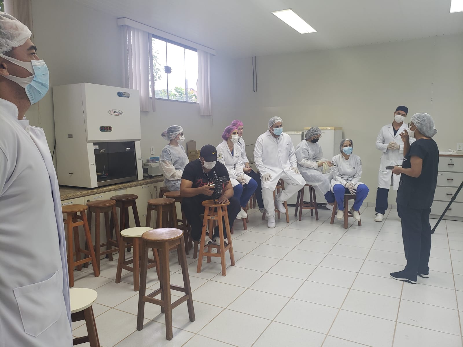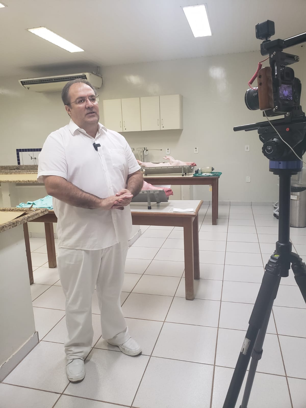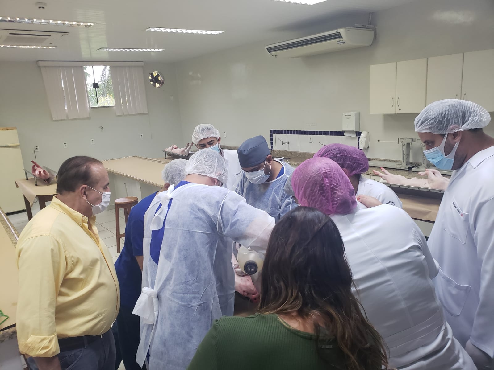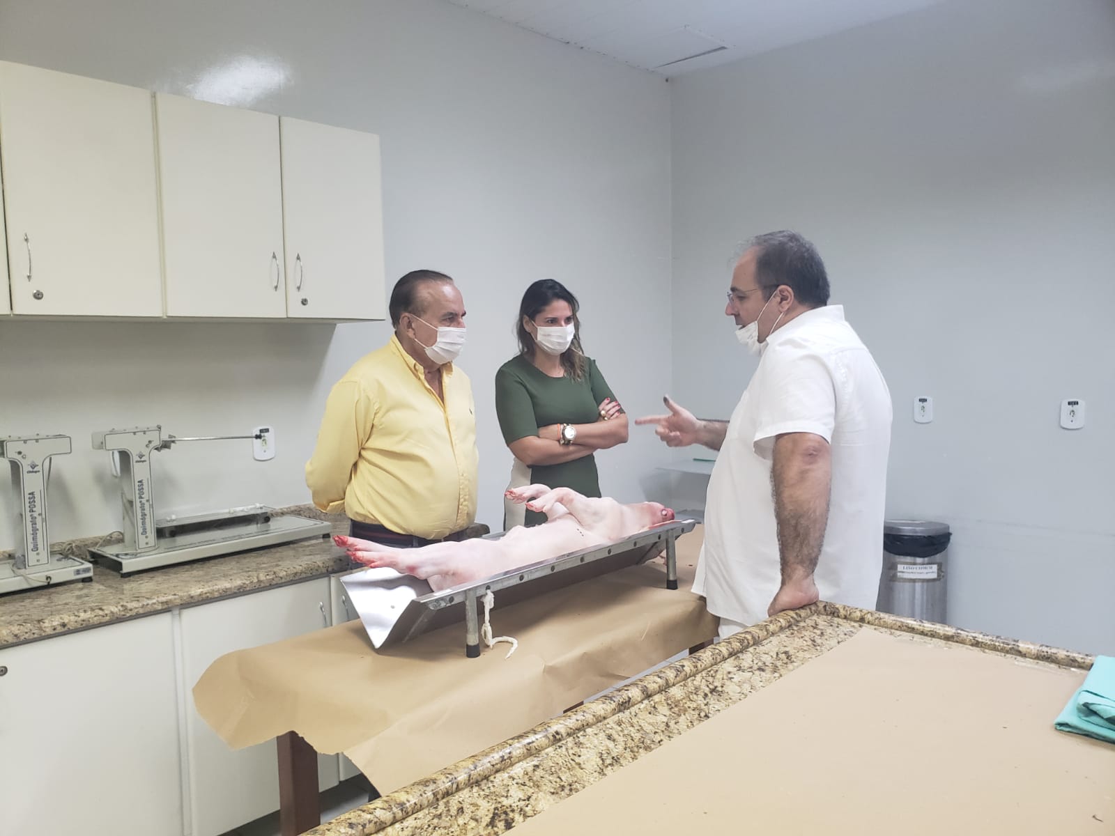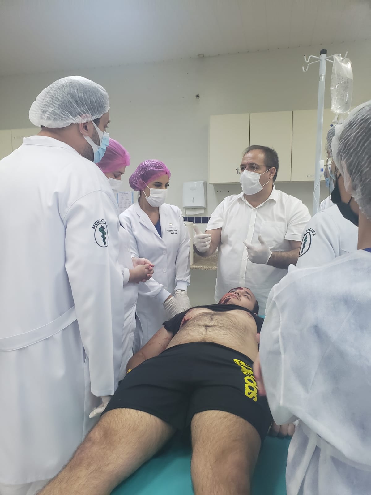 A atividade aconteceu no laboratório de Técnicas Cirúrgicas e Fisiologia, para praticar o que foi aprendido na disciplina de Técnicas Cirúrgicas. Estiveram presentes o coordenador do curso Dr. Luis Maiorquim, a coordenadora adjunta Dra. Fabiana Souza, a enfermeira Mara Bastos e a coordenadora pedagógica Luciana Aguiar.