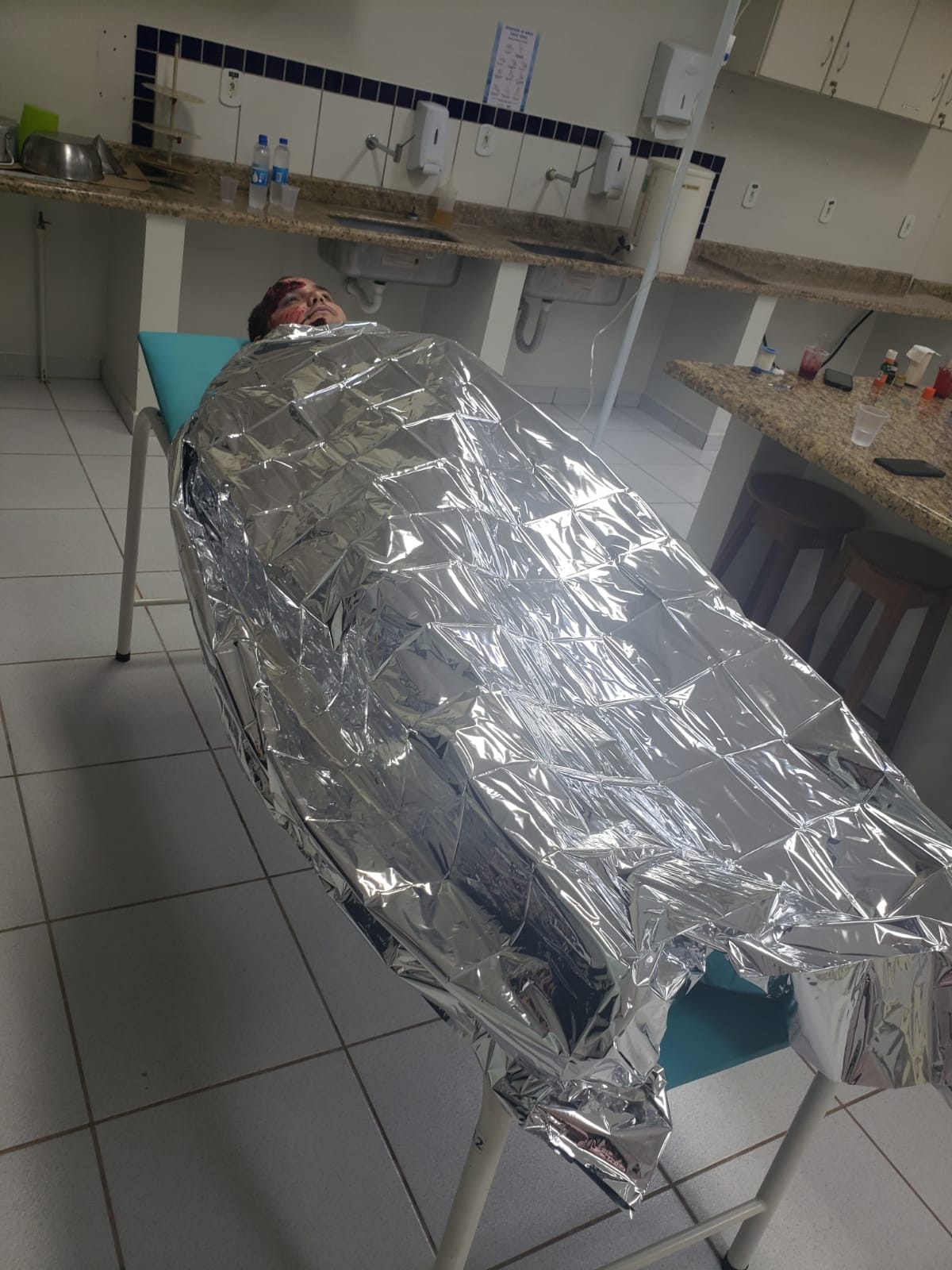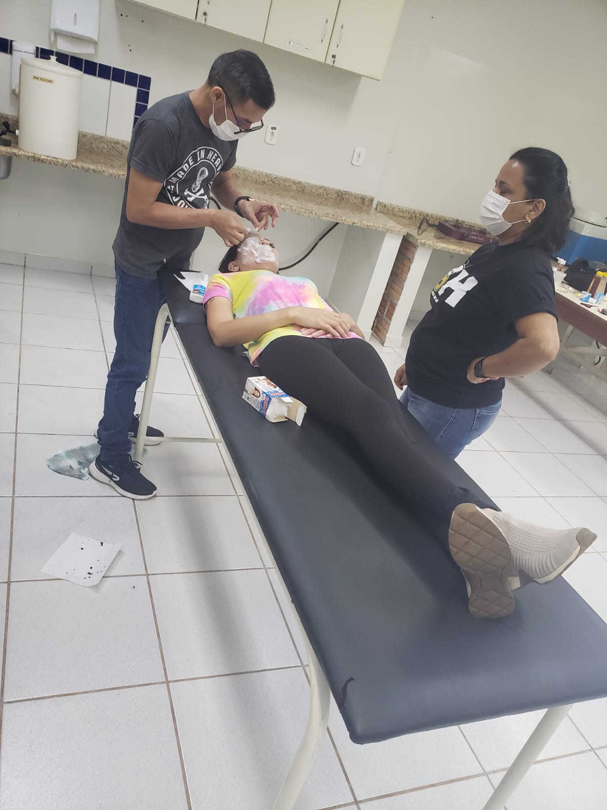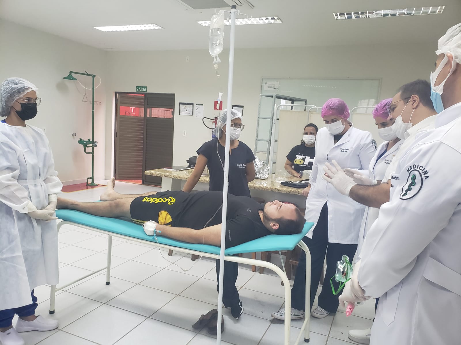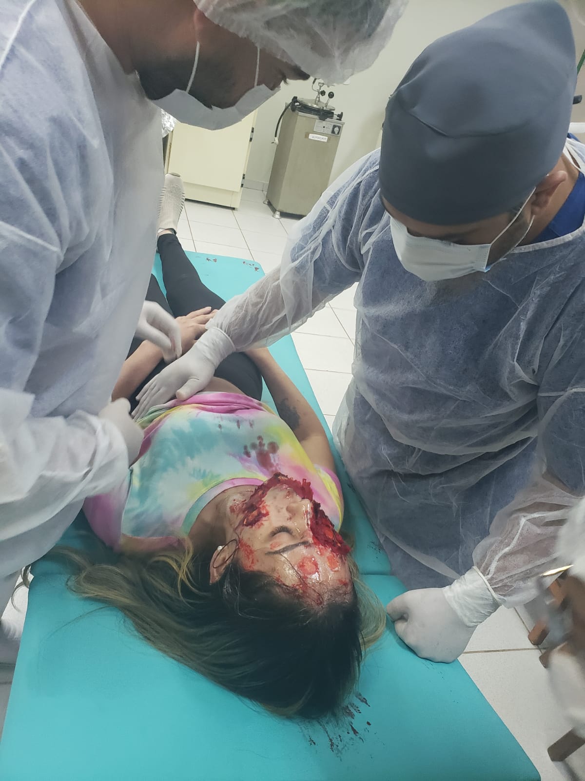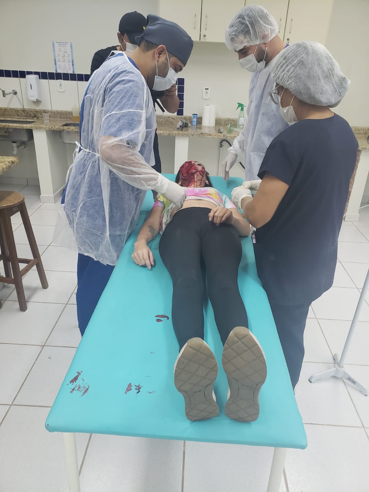 A execução contou com atividades de sutura e primeiros socorros e contou com as participações do técnico de enfermagem e caracterizador Adenilson Amaral, do acadêmico Elton e da colaboradora Jéssica. Estes foram caracterizados para simular um acidentado de trânsito e uma vítima de queimadura, respectivamente.