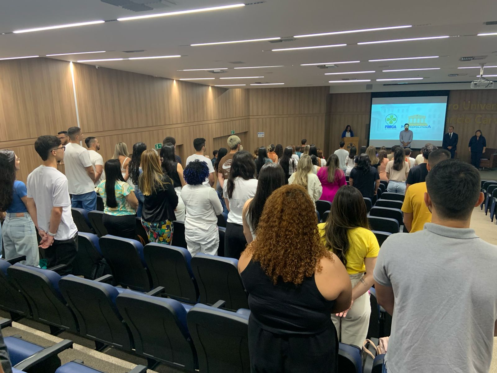 O Dr Maurício disse: Hoje é o primeiro dia de aula para o curso de medicina, aula magna aqui na Metropolitana, nós desejamos muito Sucesso para todos.