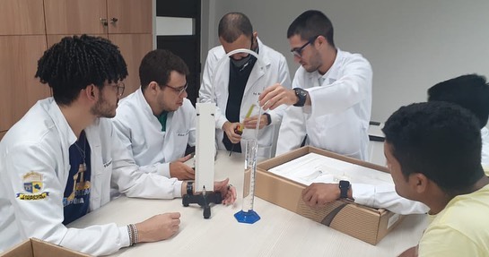 Os acadêmicos de Engenharia Elétrica participaram da atividade prática onde foi trabalhado os princípios de Berboulli no escoamento dos fluidos. Aplicação dos conceitos de épico, teorema de Steven e princípio de Pascal, Professor responsável Me. Maicon Maciel.