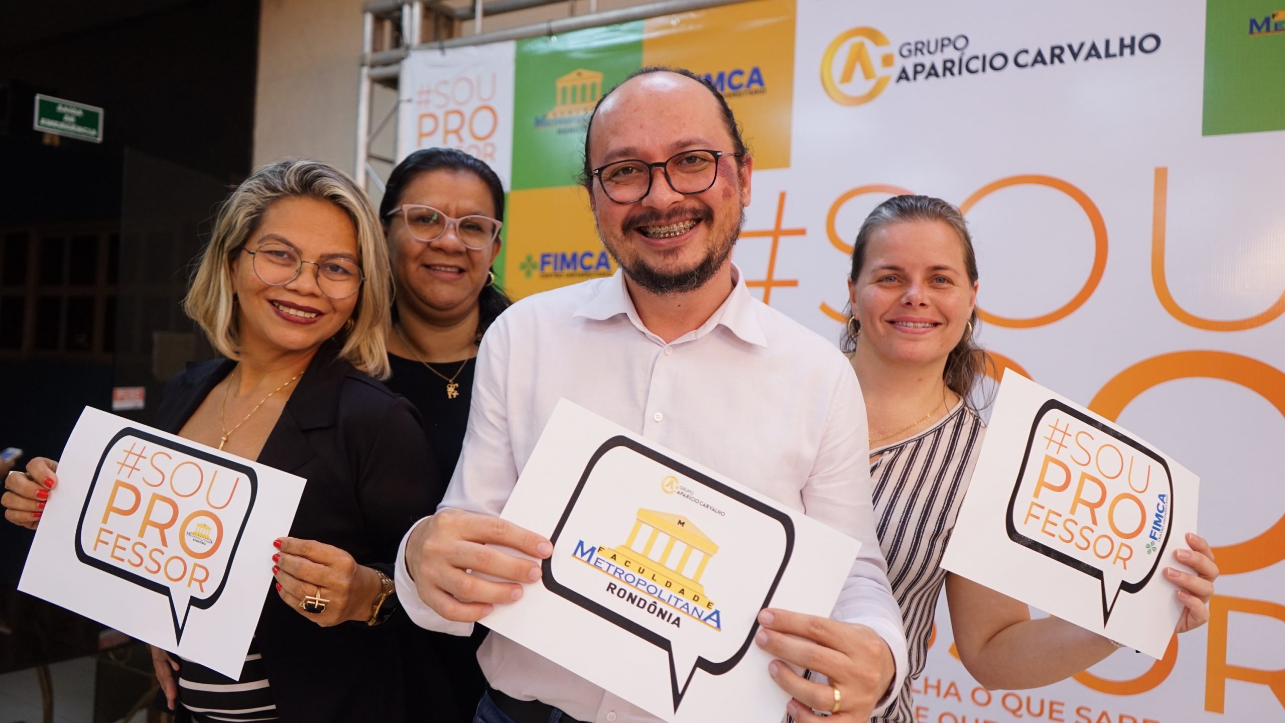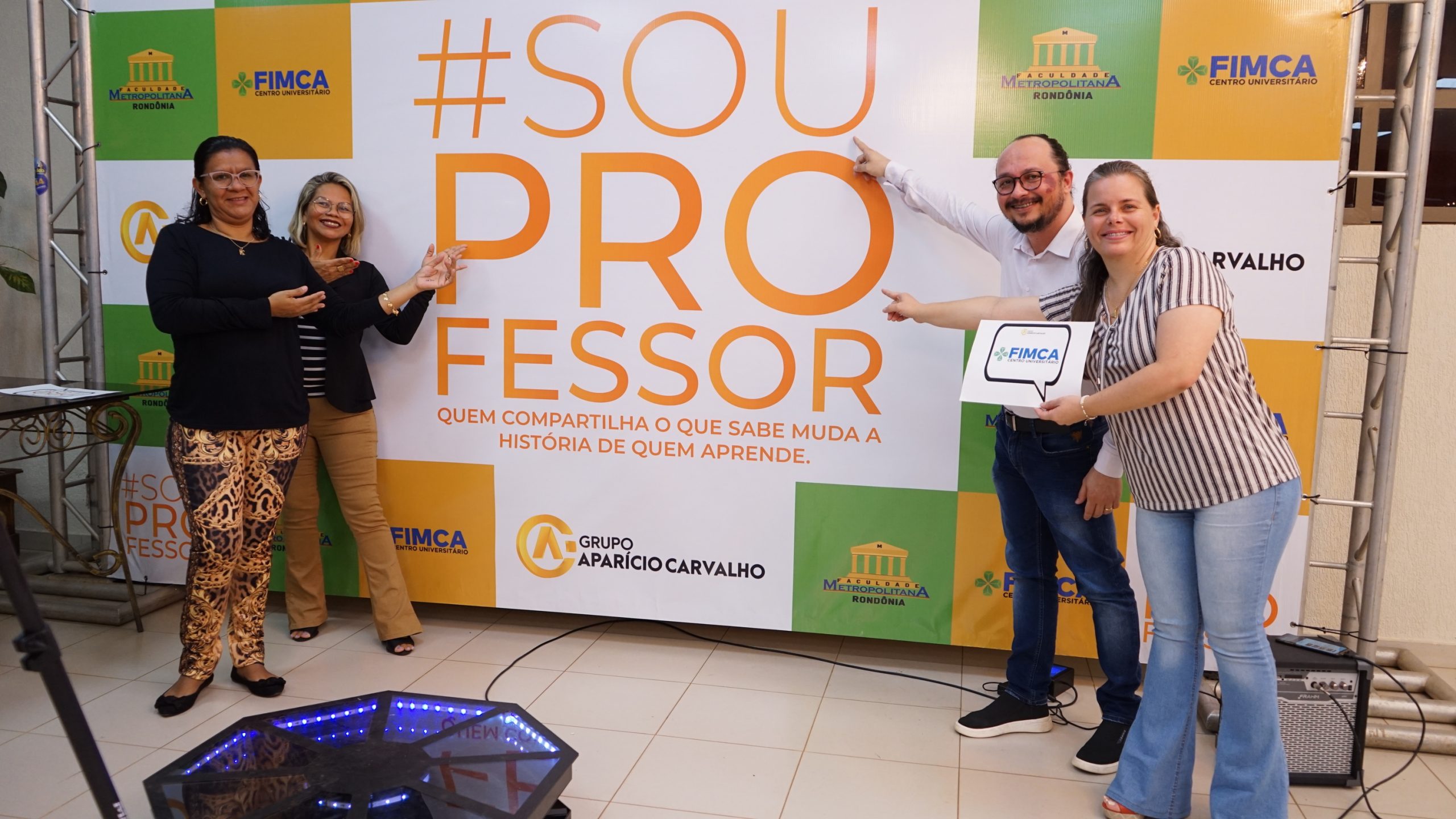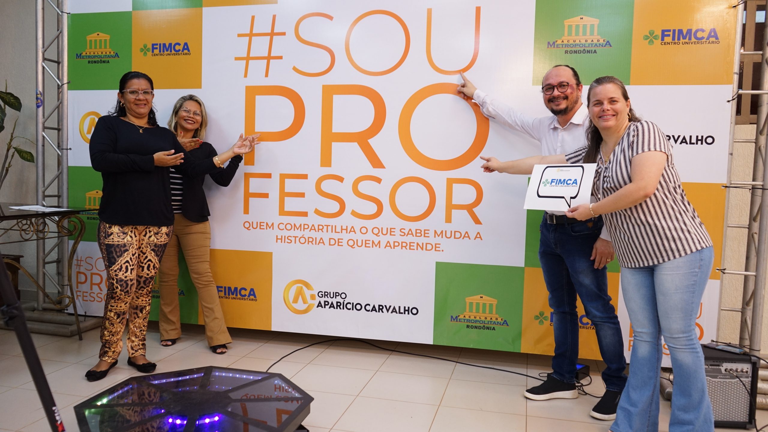 Nesta sexta (14), o Centro Universitário Aparício Carvalho realizou um evento para comemorar o Dia dos Professores. A celebração aconteceu no Hall do Auditório da Faculdade Metropolitana e aconteceu em dois momentos: às 11h e às 17:30h.