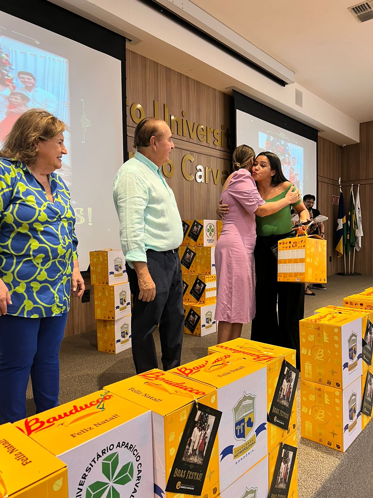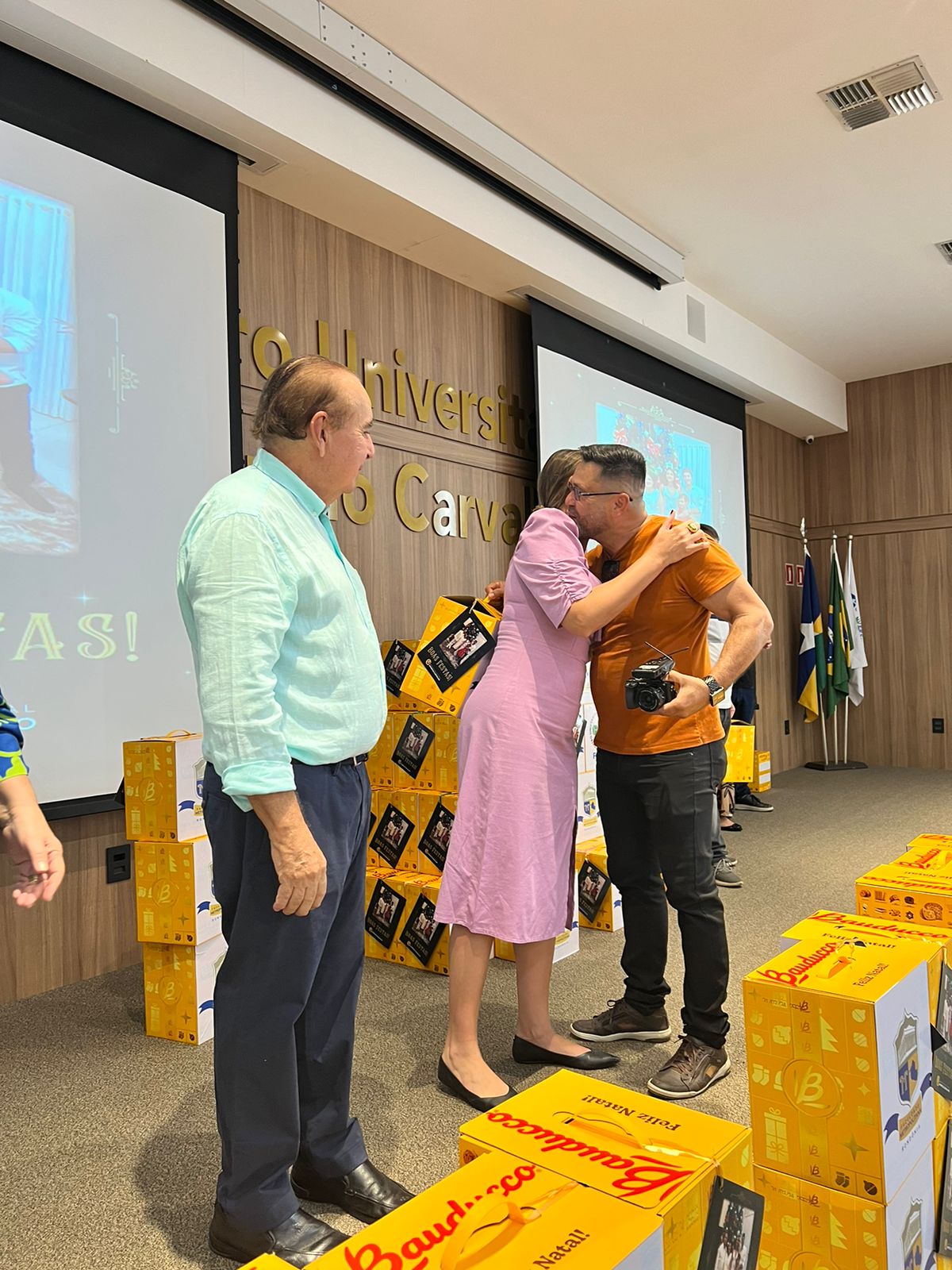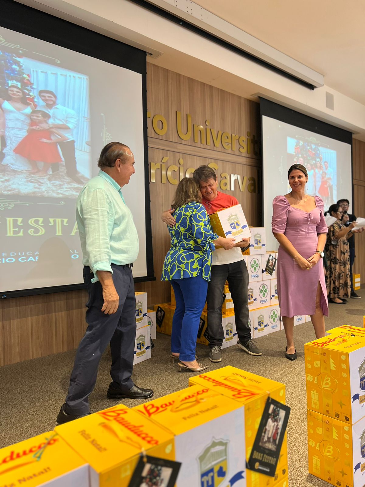 Em seu emocionante discurso de agradecimento aos trabalhos da equipe durante o ano, o diretor Aparício Carvalho destacou a importância do trabalho conjunto para o sucesso da instituição, ressaltando o comprometimento e a dedicação de cada colaborador. “É com imensa gratidão que entregamos estas cestas de Natal a vocês, que fazem parte da família do Grupo Educacional Aparício Carvalho. Este é um momento para celebrar não apenas as festividades, mas também os laços que nos unem como uma equipe dedicada e comprometida com a educação de excelência.”