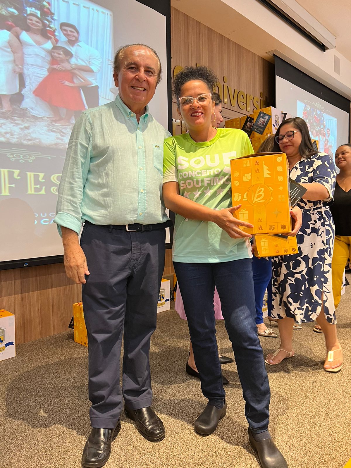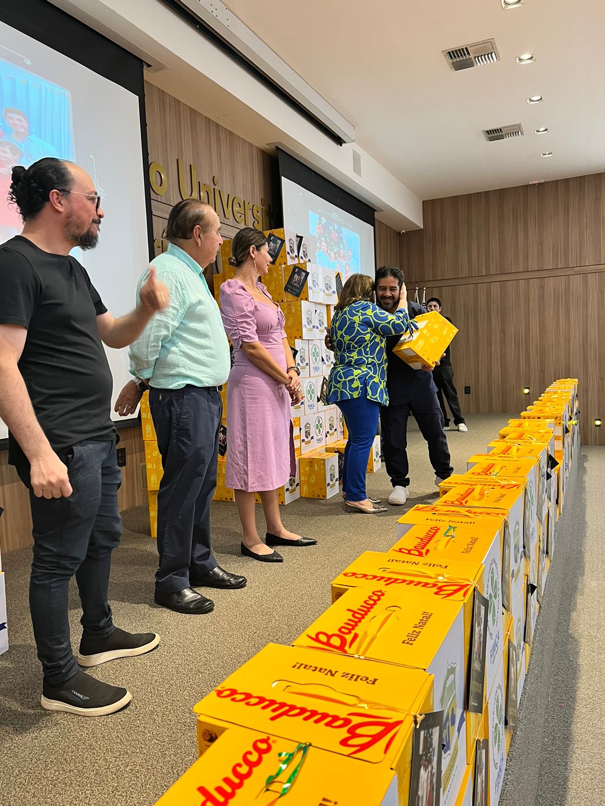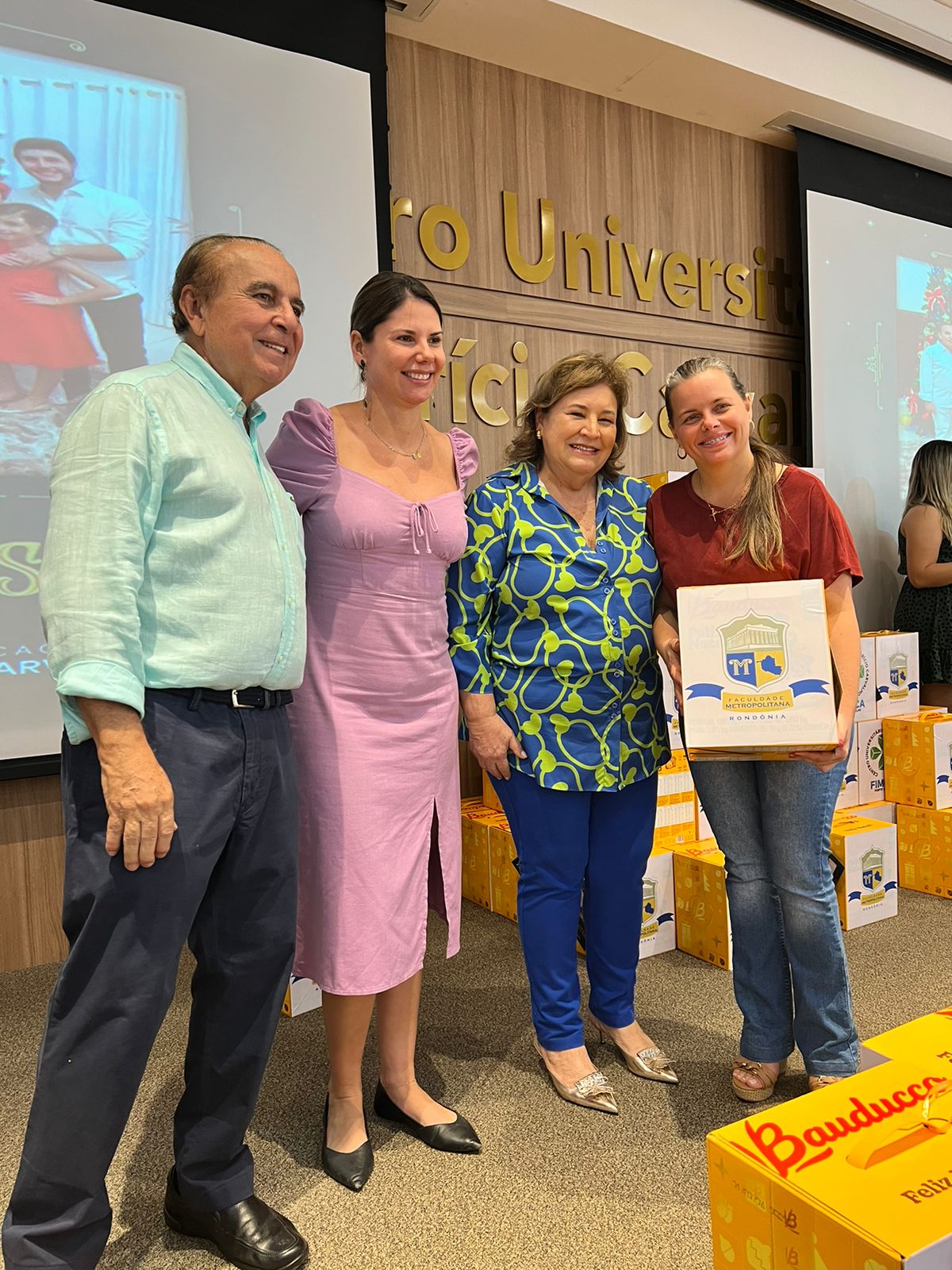 Os membros da diretoria, liderados pelo Dr. Aparício Carvalho, diretor do grupo, entregaram pessoalmente as cestas de Natal a todos os colaboradores, expressando assim a gratidão pela dedicação e empenho ao longo do ano. A Dra. Maria Silvia, diretora da Faculdade Metropolitana, a Dra. Nelice Batisteli, diretora pedagógica, o Prof. Edimar Sartoro, diretor de EAD, o Prof. Luiz Ibanor, vice-diretor da Metropolitana, e Mário Schwaab, diretor financeiro administrativo, estiveram presentes nesse gesto simbólico de apreço pela equipe.