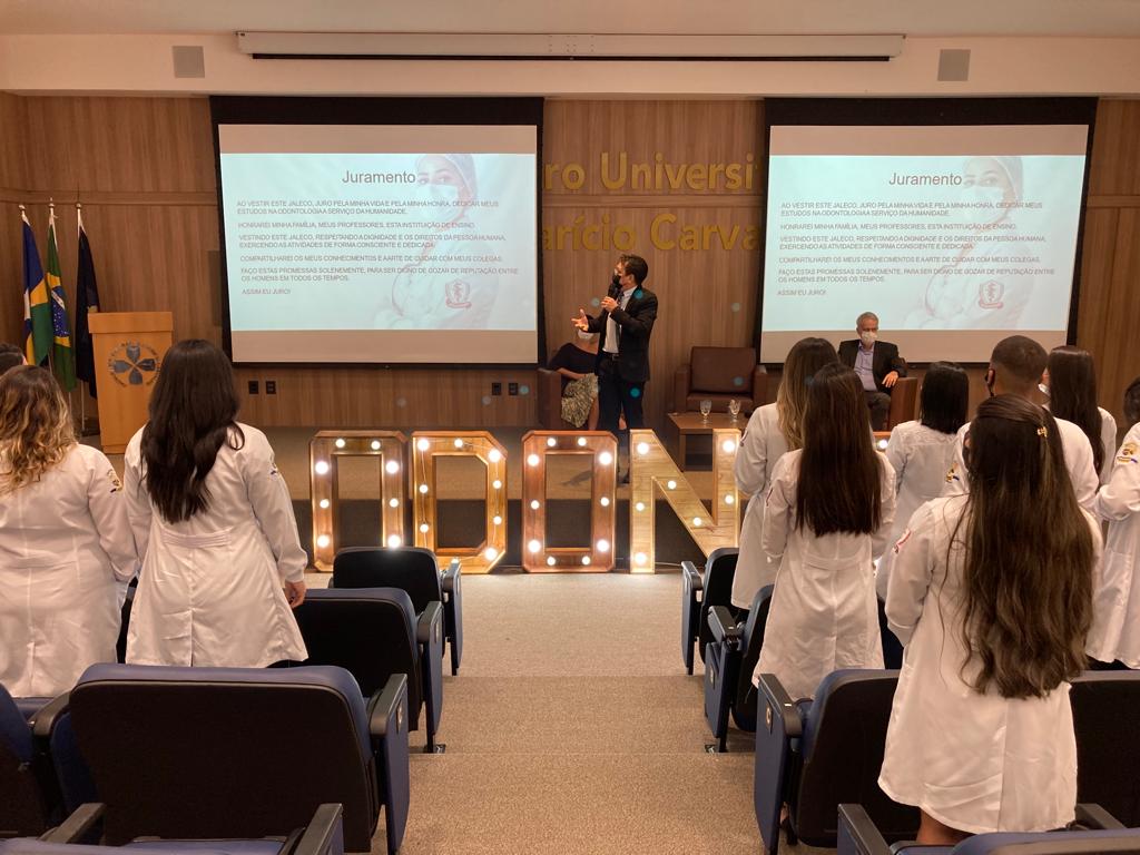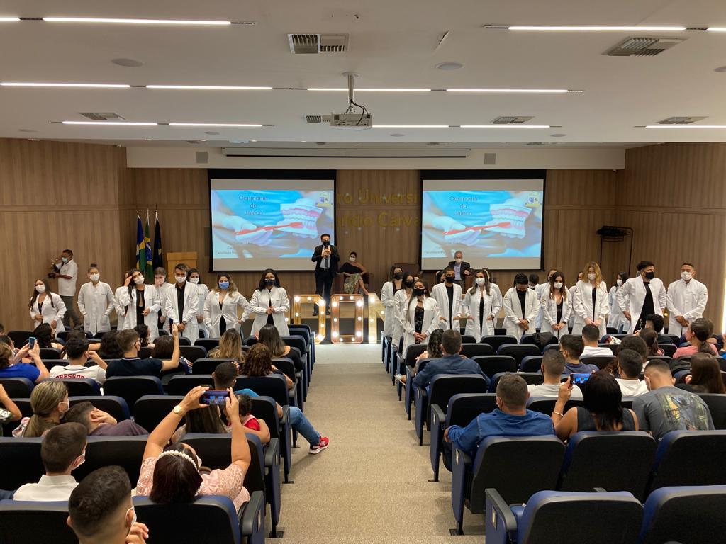 O curso de Odontologia do 1º e 4º período da Faculdade Metropolitana realizaram na noite de ontem (07) a Cerimônia do Jaleco é um evento que marca o inicio da vida acadêmica na área da saúde e destaca a importância da utilização dos EPI. A entrega do jaleco é feita por familiares e/ou amigos dos acadêmicos, um momento emocionante e de grande incentivos para os mesmos.