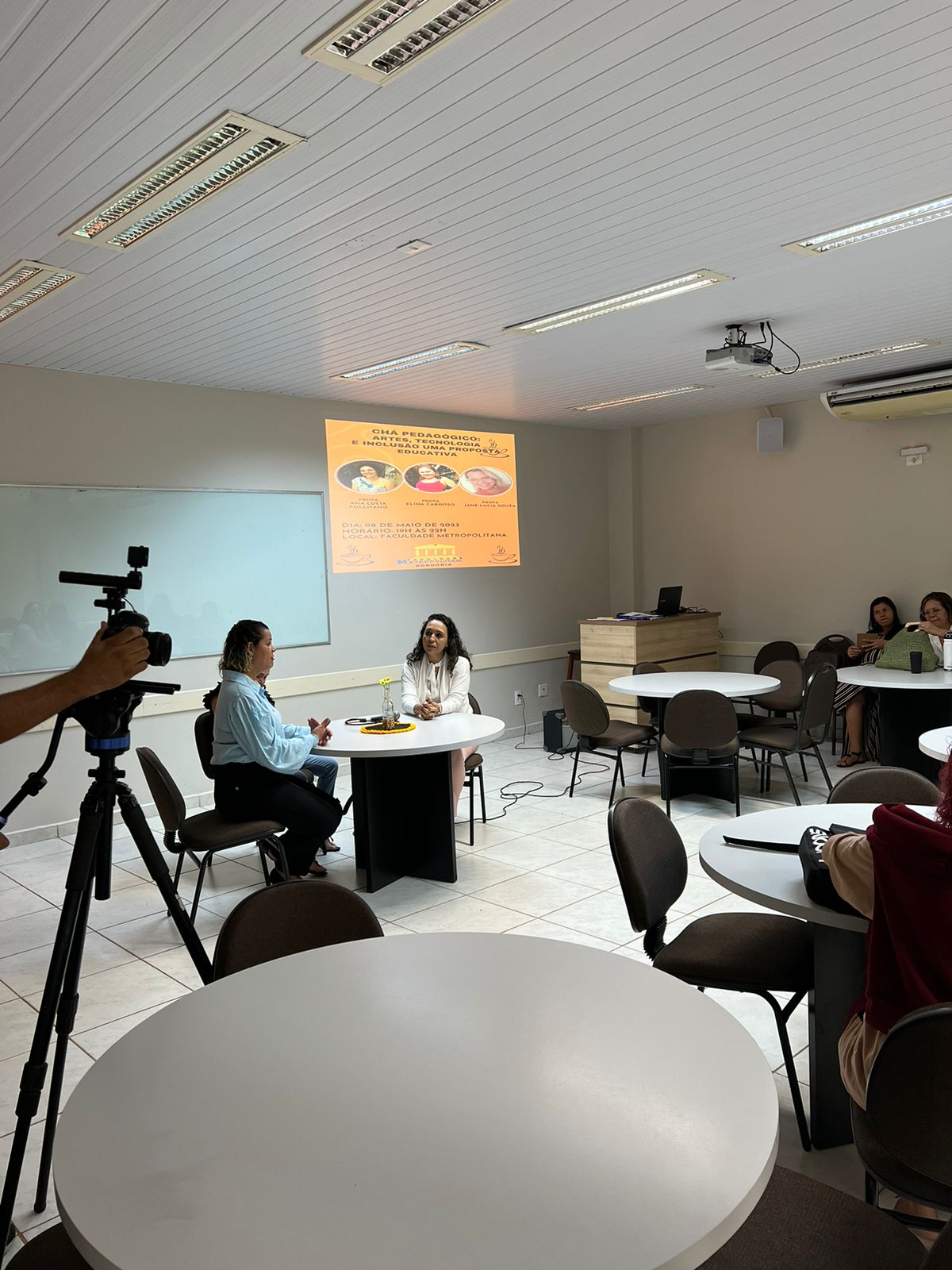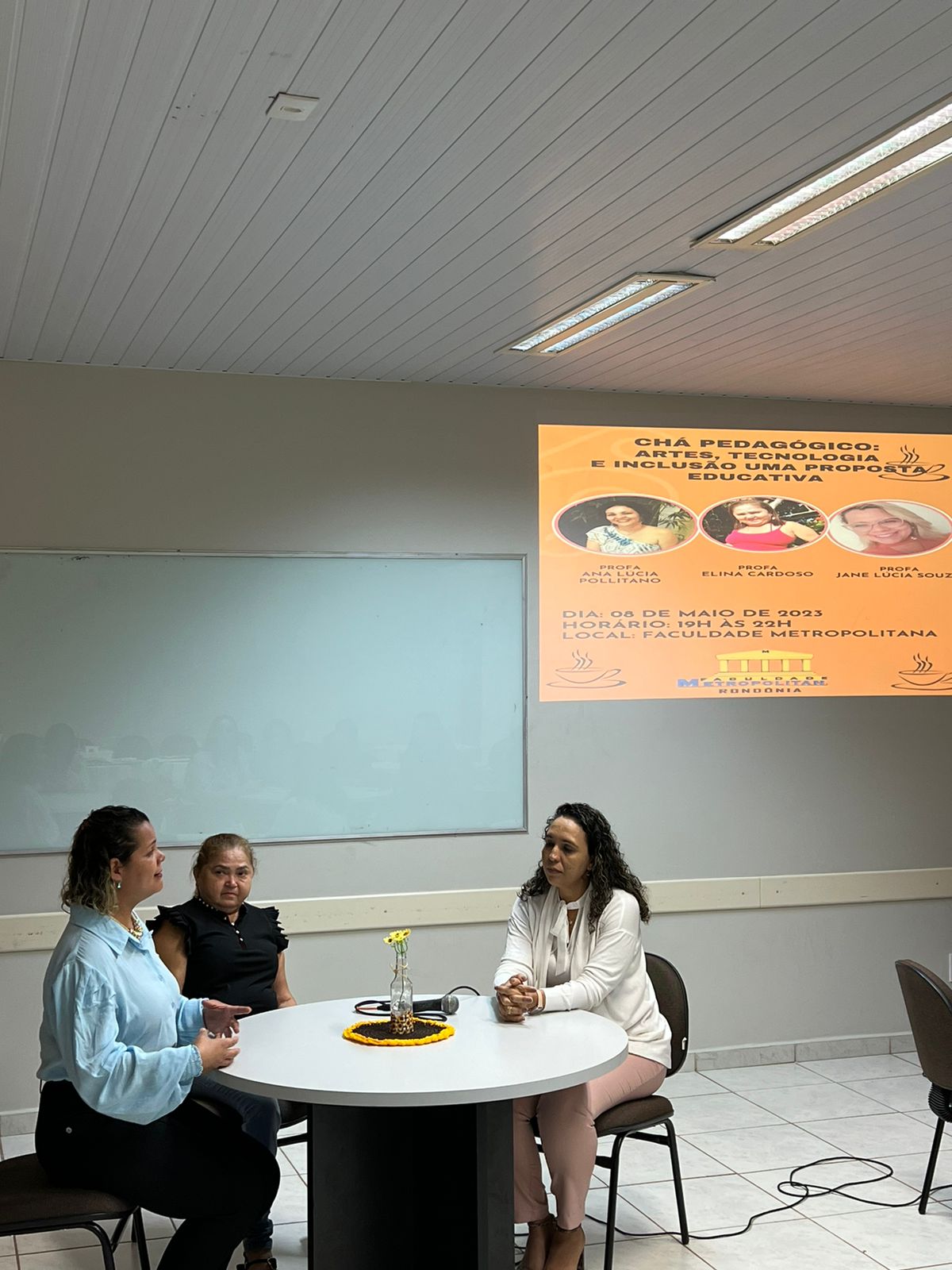 Nesta segunda (08), aconteceu a primeira edição do Chá Pedagógico, um programa de extensão do curso de Pedagogia da Faculdade Metropolitana. O tema foi “Artes, Tecnologia e Inclusão – Uma Proposta Educativa, e as professora Ana Lúcia Pollitano, Elina Cardoso e Jane Lúcia Souza dialogaram sobre o assunto.