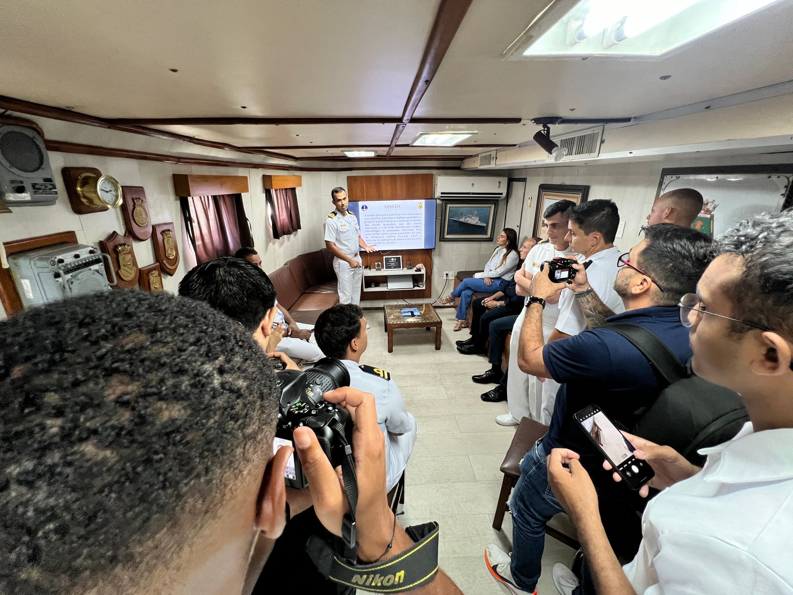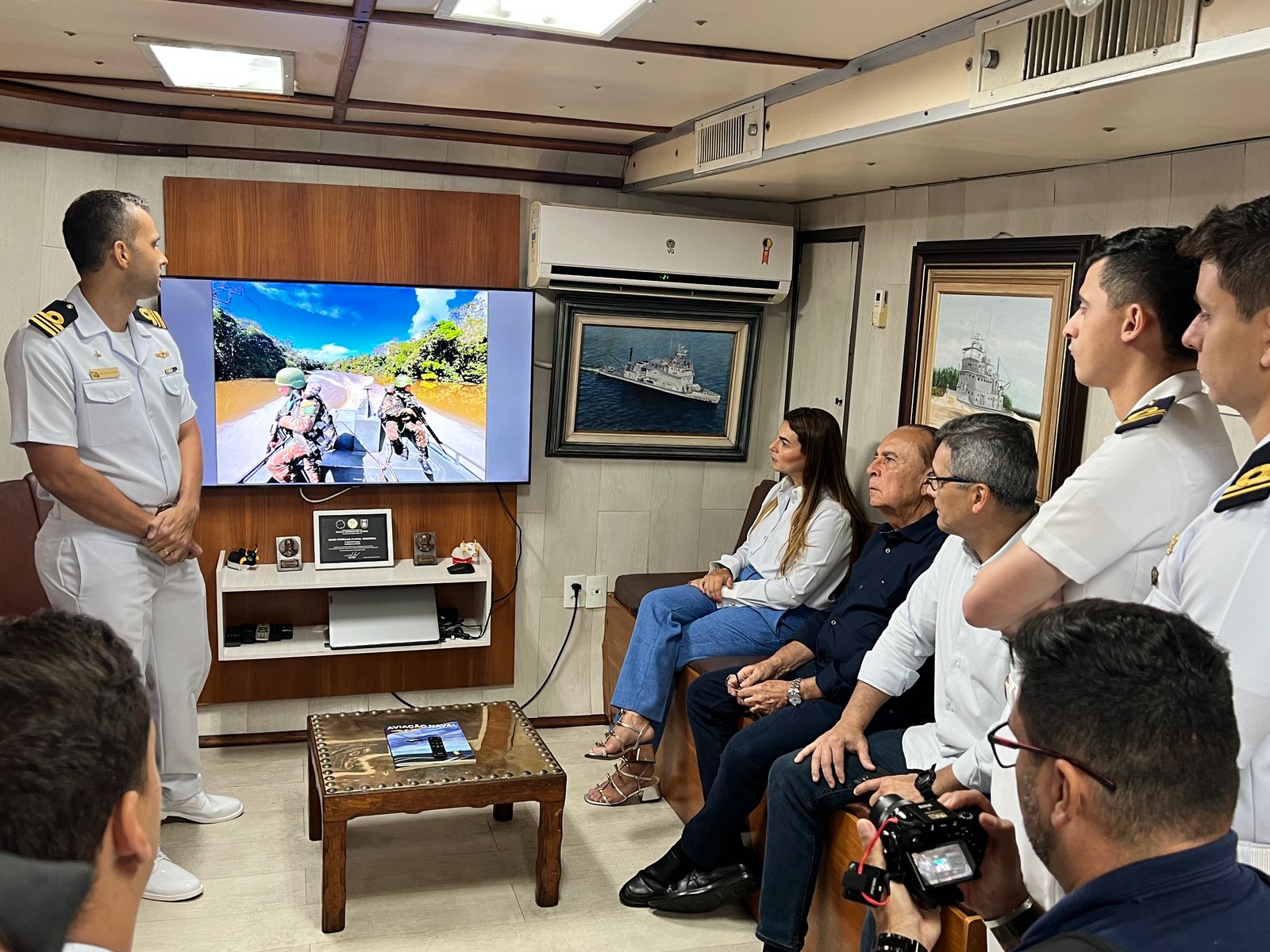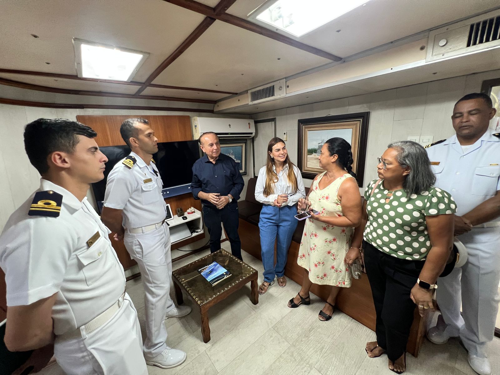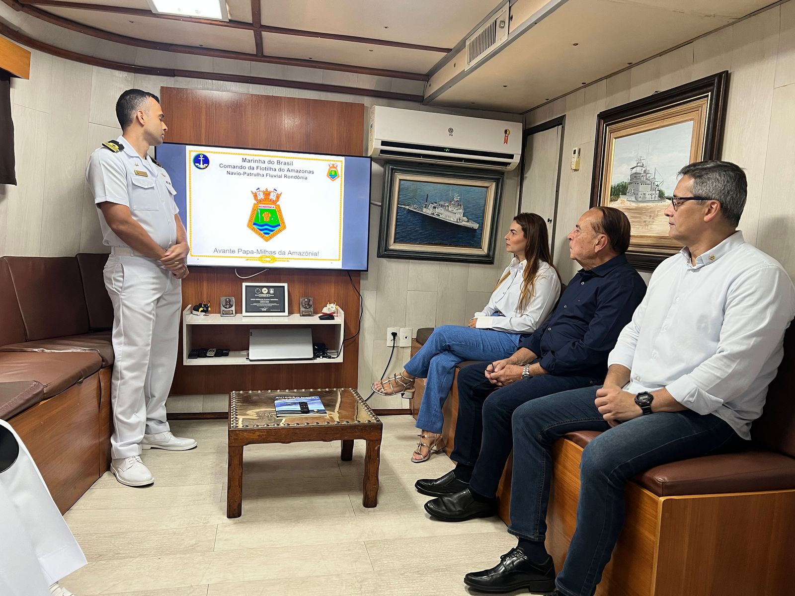 A visita, conduzida pelo Capitão de Corveta Silva Barroso, proporcionou um tour pela estrutura do navio e uma apresentação detalhada das missões desempenhadas pela Marinha na região. Durante o encontro, Dr. Aparício Carvalho, que também é Presidente da Sociedade Amigos da Marinha (SOAMAR) em Porto Velho, destacou a importância da parceria entre as instituições: