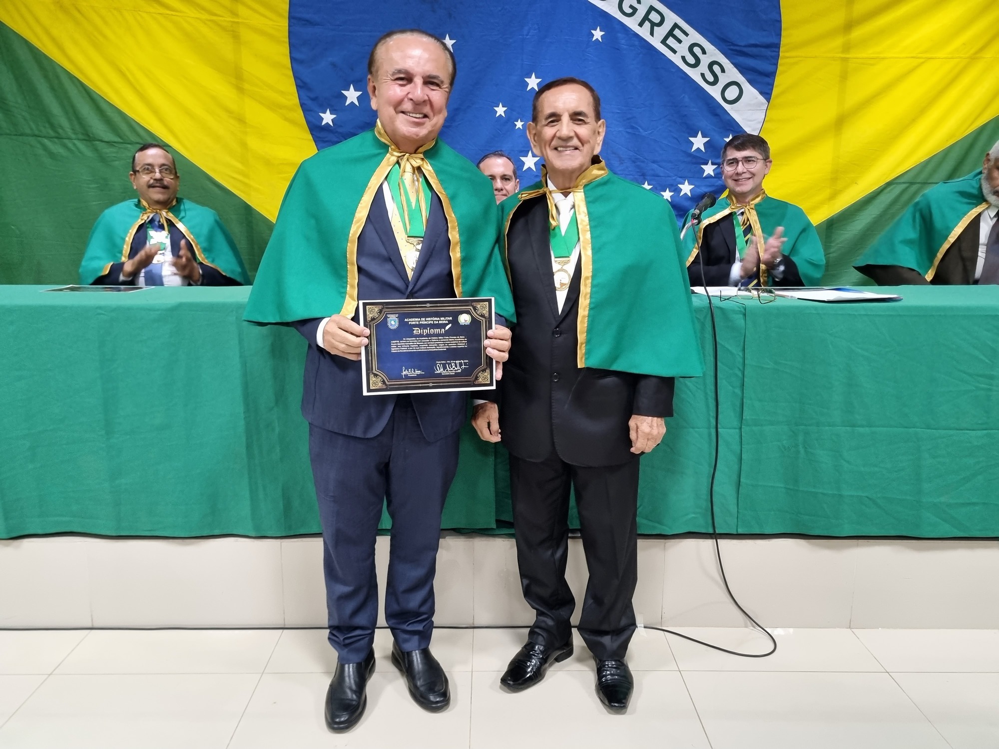 Nesta terça (25), o magnífico reitor do Grupo Educacional Aparício Carvalho, Dr. Aparício Carvalho de Moraes, foi reverenciado com o Diploma e comenda Mérito Acadêmico da Academia de História Militar Forte Príncipe da Beira – AHMFPB.