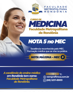 O curso de Medicina da Faculdade Metropolitana de Rondônia alcançou, em 2025, um importante reconhecimento institucional ao receber nota máxima 5 na avaliação do Ministério da Educação (MEC). O resultado consolida um projeto pedagógico construído com base na excelência acadêmica, na forte formação prática, na responsabilidade social e, sobretudo, na experiência real vivenciada pelos estudantes ao longo do curso.