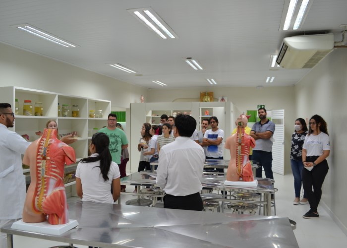 Na manhã desta terça-feira(29), os acadêmicos da primeira turma de Medicina da faculdade Metropolitana foram apresentados há estrutura que vão desfrutar ao longo do curso. Os universitários foram até a biblioteca e também até a sala de Anatomia Humana. O vice-diretor da Faculdade Metropolitana, Professor Luiz Ibanor juntamente com os professores do curso de Medicina foram os encarregados de mostrar toda a estrutura aos acadêmicos.