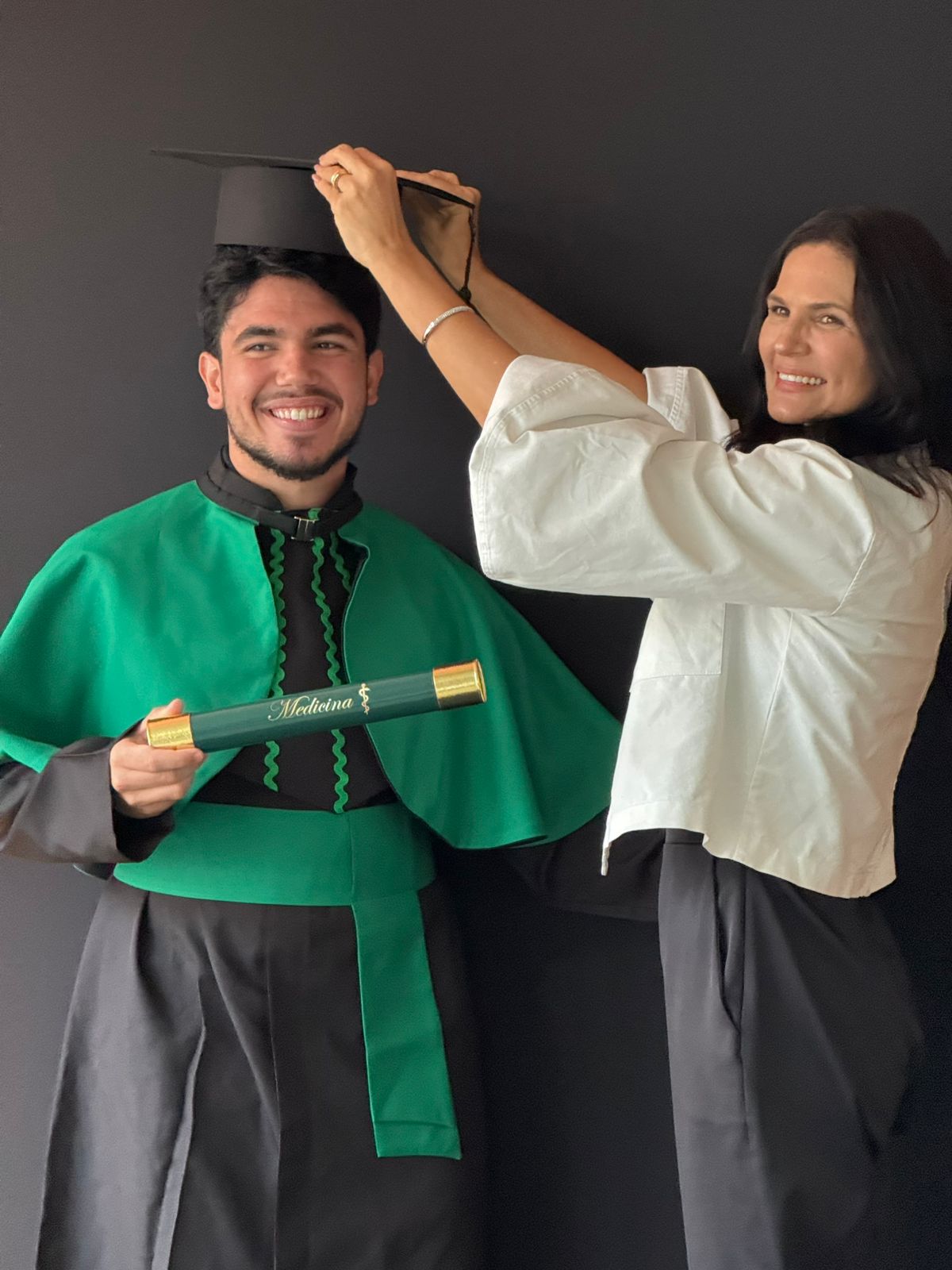 “Dentro do internato, principalmente, a gente vive momentos muito intensos. São seis anos de dedicação, noites estudando, dificuldades emocionais e também o compromisso de cuidar do outro, muitas vezes pessoas carentes e em sofrimento. Levar apoio e acolhimento para esses pacientes transforma a gente. Estar aqui hoje é emocionante, porque sei o quanto foi difícil e o quanto cada etapa valeu a pena. A família tem um papel fundamental nesse momento.”
