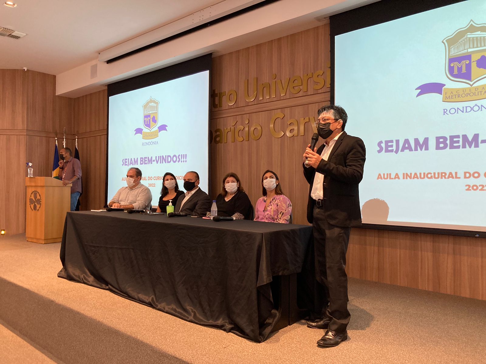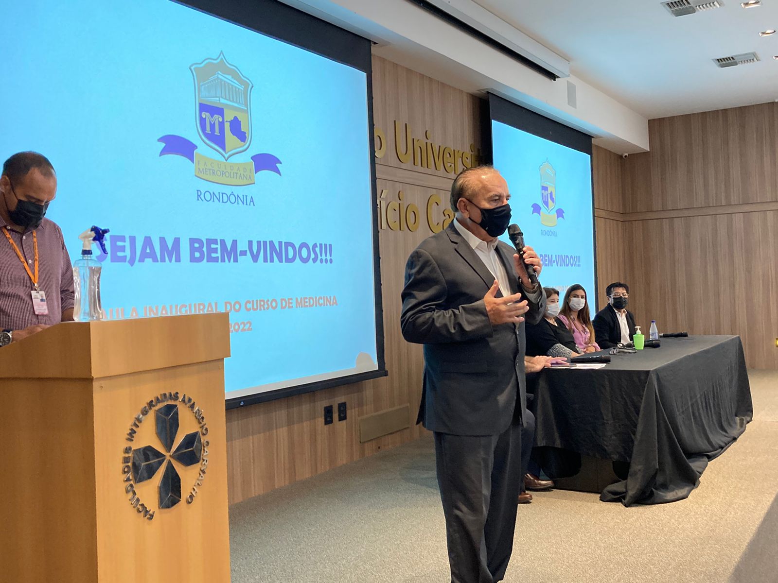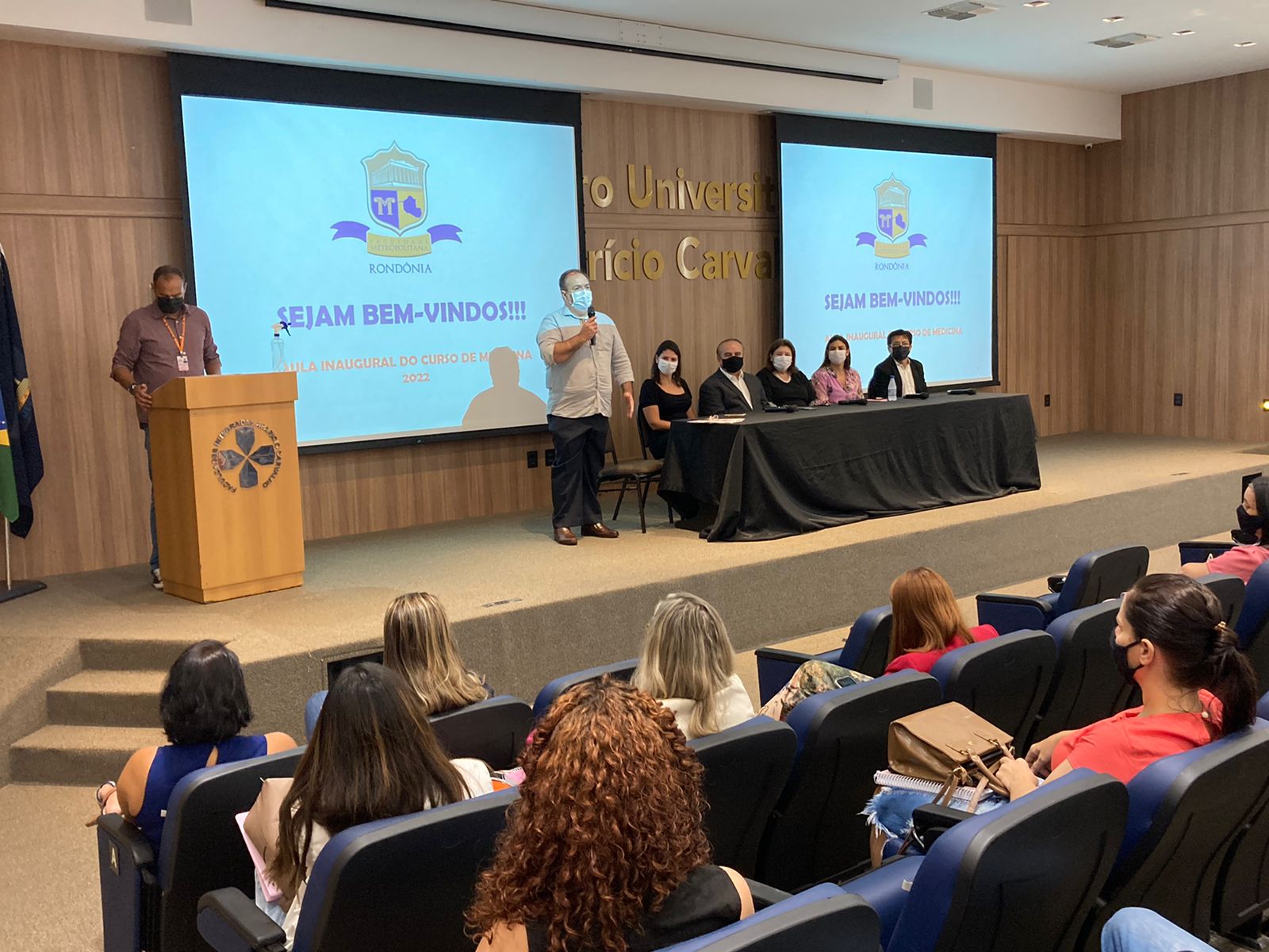 Hoje (31) pela manhã tivemos a recepção dos calouros do curso de Medicina da Faculdade Metropolitana, contamos com a presença do Coordenador Dr. Luiz Maiorquim, o Presidente do Grupo Educacional Aparício Carvalho Dr. Aparício Carvalho de Moraes, a Diretora do Grupo Educacional Aparício Carvalho Dra. Maria Silvia Fonseca Ribeiro Carvalho de Moraes, Diretora de expansão da Faculdade Metropolitana e Deputada Federal de Rondônia Mariana Carvalho, a diretora acadêmica Drª Nelice Bastistelli, o Prof. Luiz Ibanor Vice-Diretor da Faculdade Metropolitana.