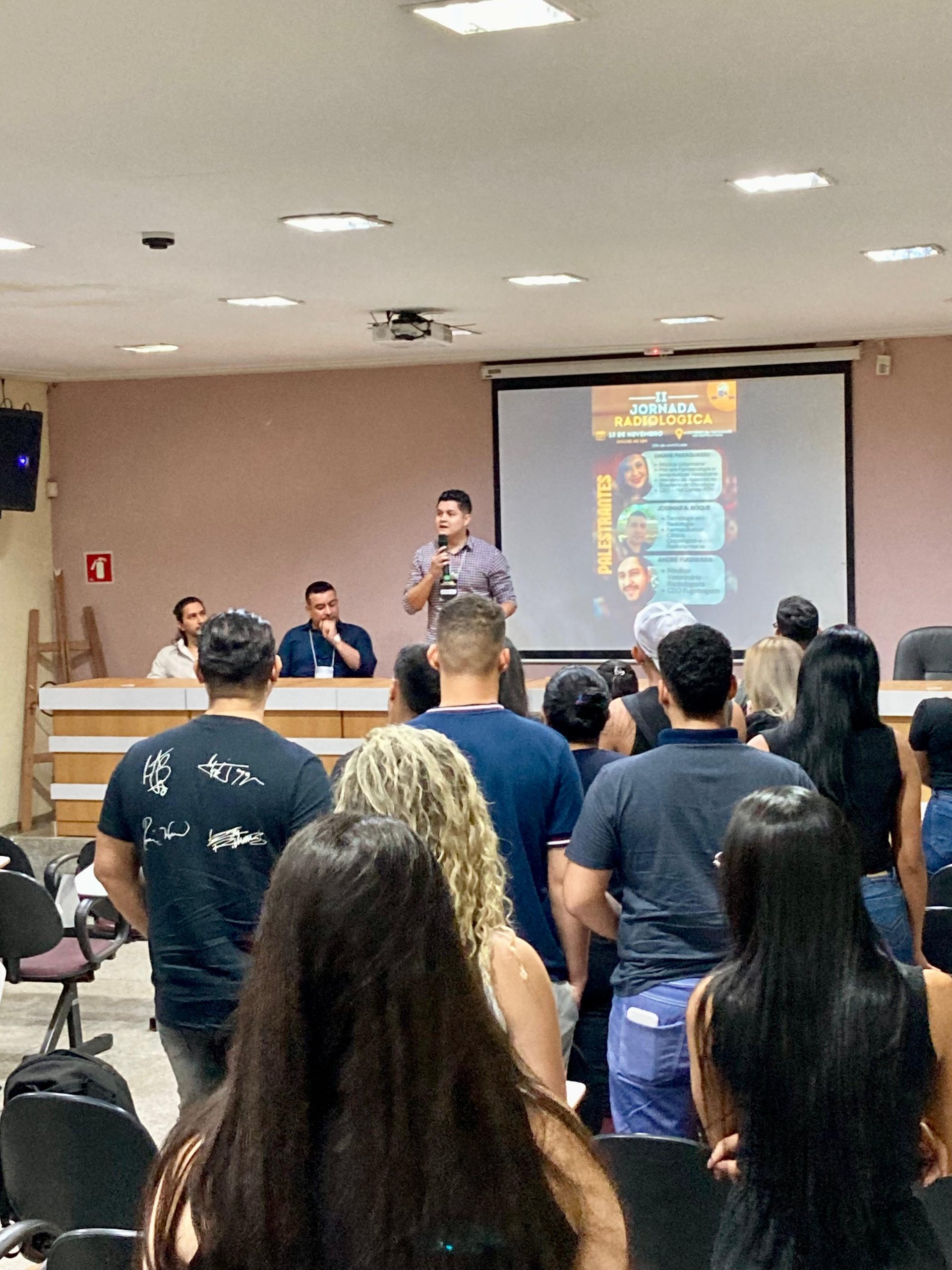 O coordenador do curso de Radiologia, Prof. Luan Botelho, deu início ao evento e destacou a importância da jornada acadêmica na formação dos estudantes. “Momentos como esse ampliam o conhecimento dos nossos alunos e os preparam para os desafios do mercado de trabalho, conectando teoria e prática em um ambiente de aprendizado e interação com profissionais experientes”, afirmou o professor.