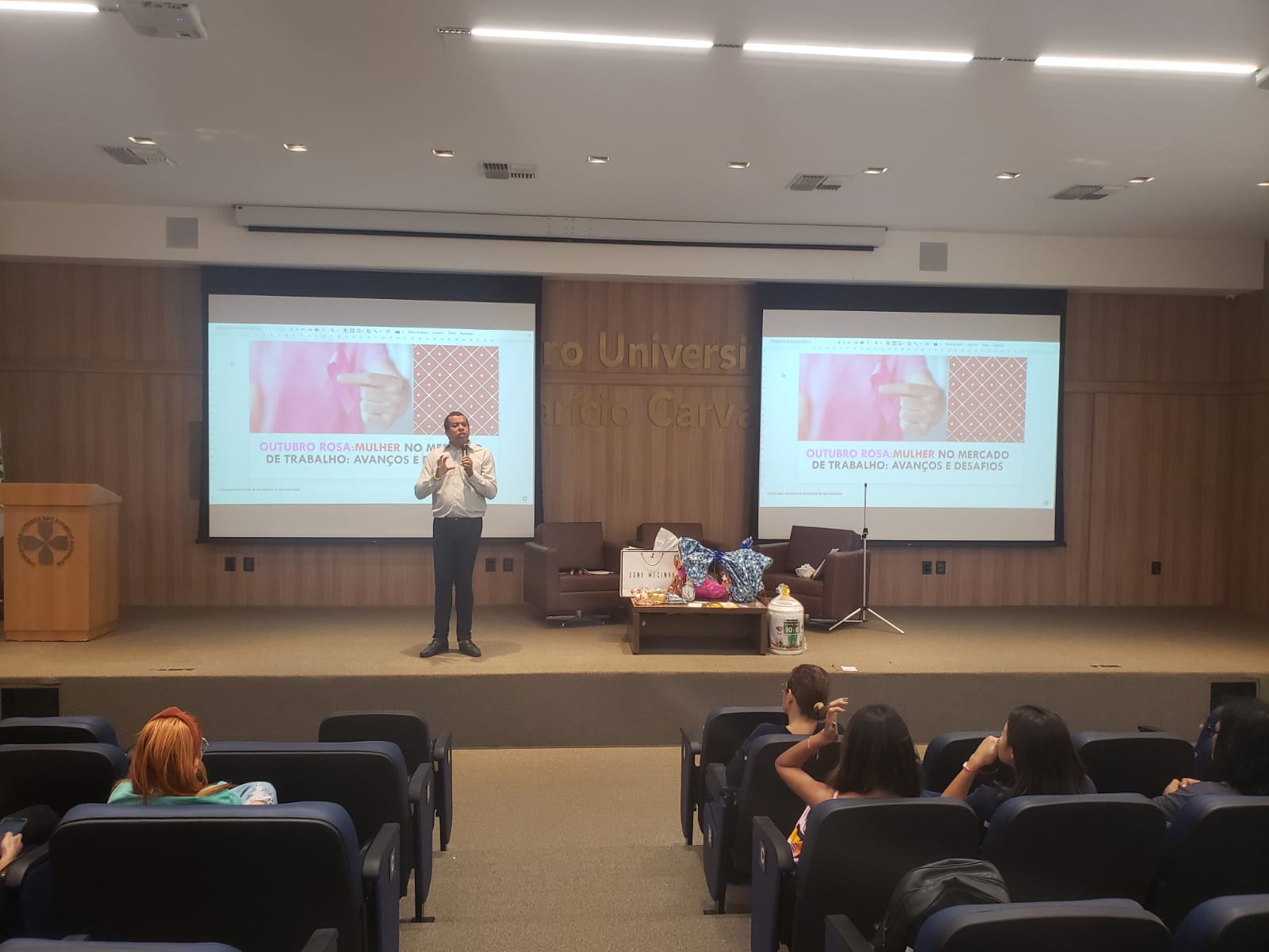 Neste sábado (22), aconteceu no anfiteatro Dra. Maria Silvia Carvalho, uma palestra em alusão ao Outubro Rosa para as colaboradoras do Centro Universitário Aparício Carvalho e da Faculdade Metropolitana.
