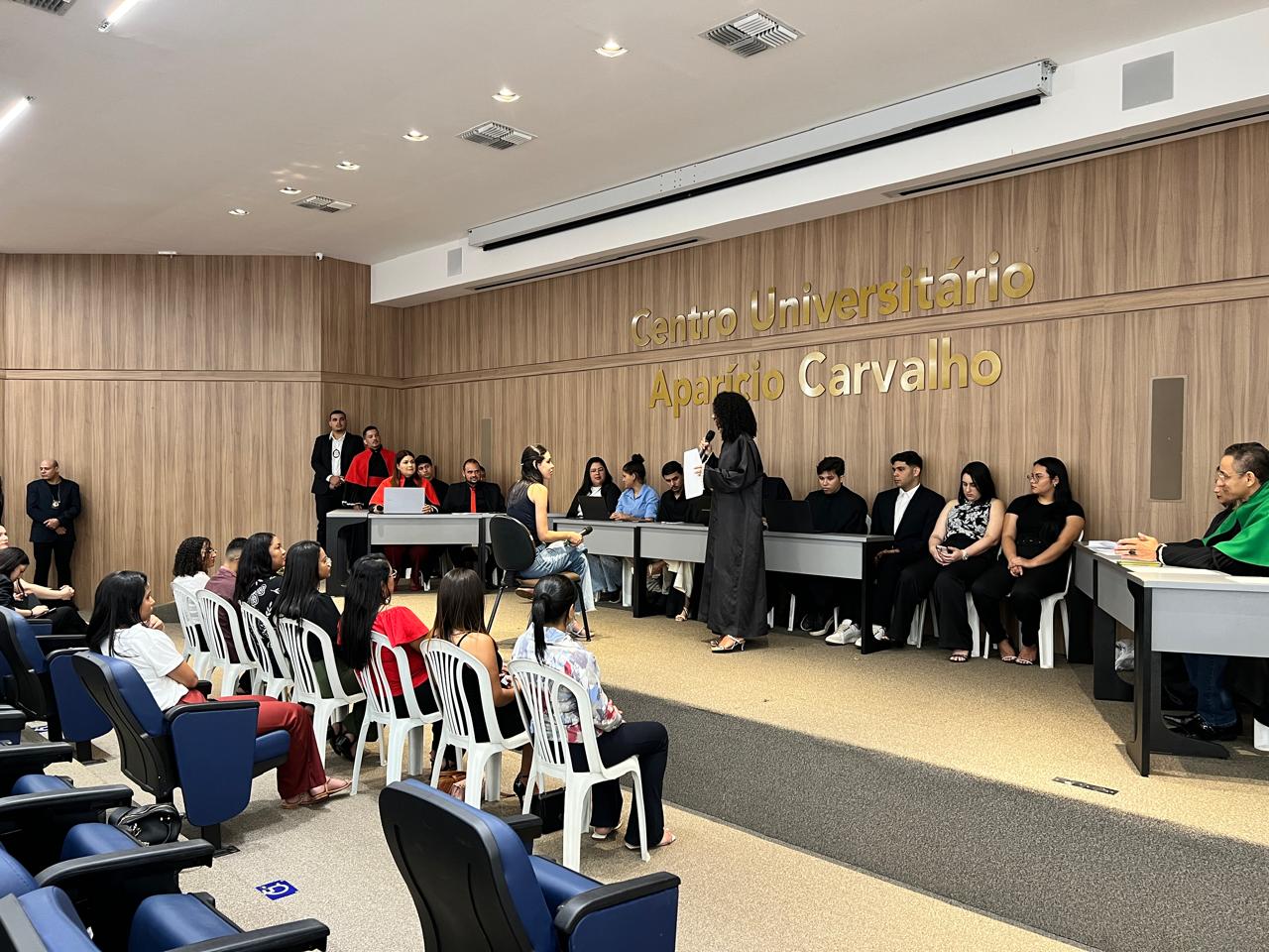 Encerrando a programação, os alunos do primeiro período realizaram um Júri Simulado, colocando em prática os conhecimentos adquiridos ao longo da semana. O caso encenado foi o clássico “Os Exploradores de Caverna”, oportunizando uma imersão no ambiente jurídico e incentivando o pensamento crítico e o trabalho em equipe.