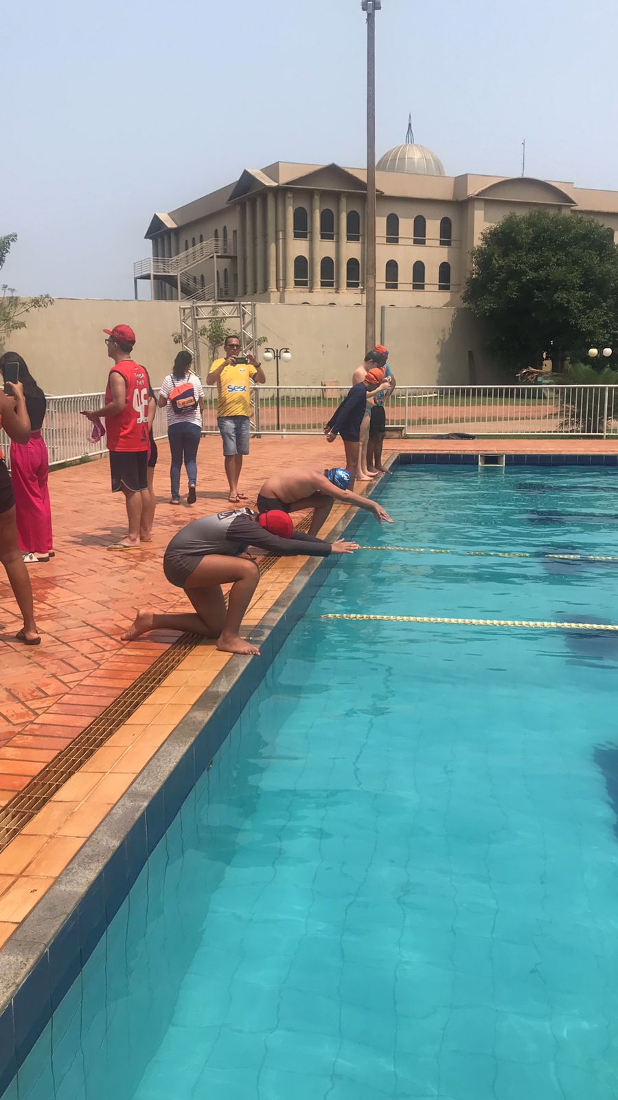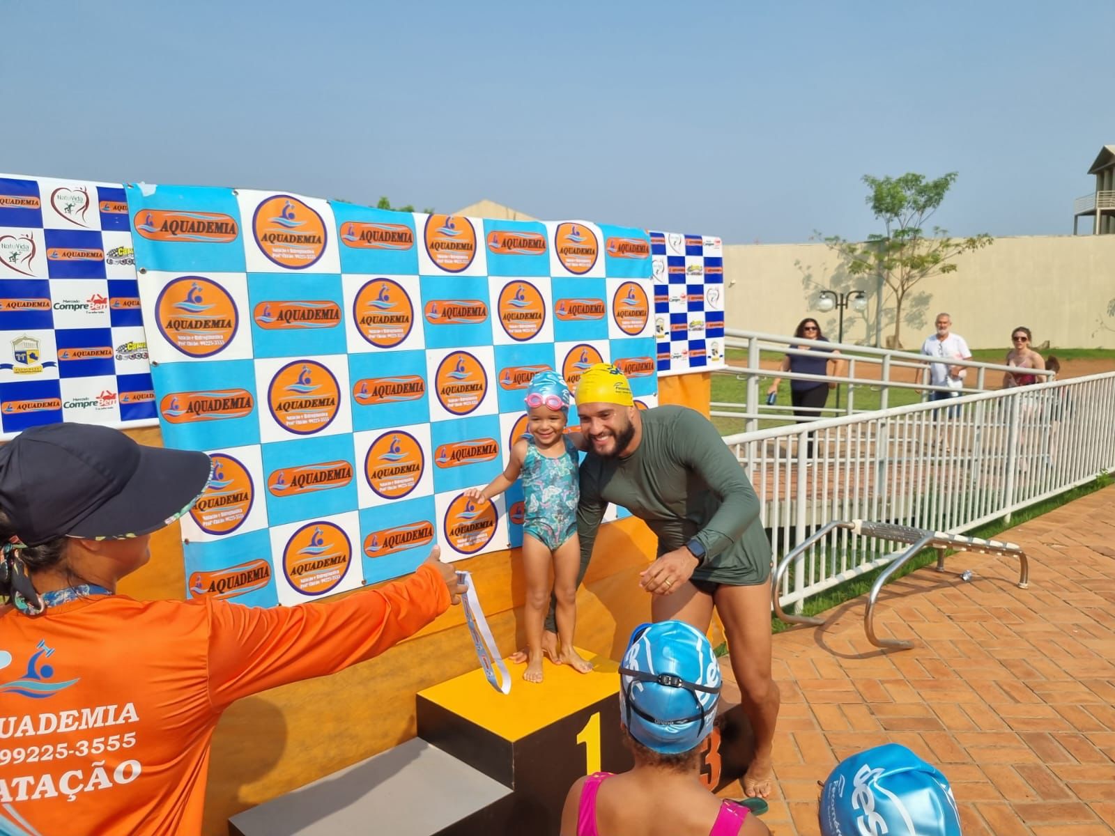 Os acadêmicos do terceiro período de Educação Física, matriculados na disciplina de Natação, e o professor Fábio Macedo desempenharam um papel importante no evento, atuando como supervisores e garantindo a segurança durante as competições.