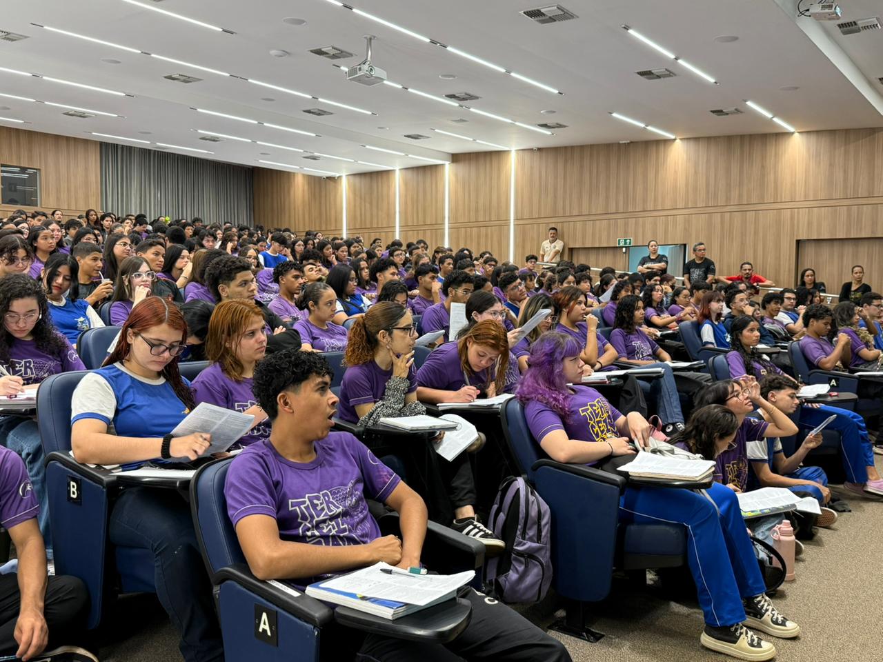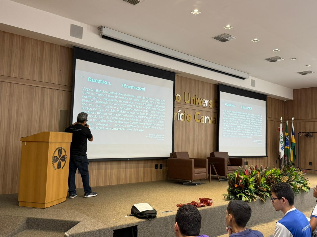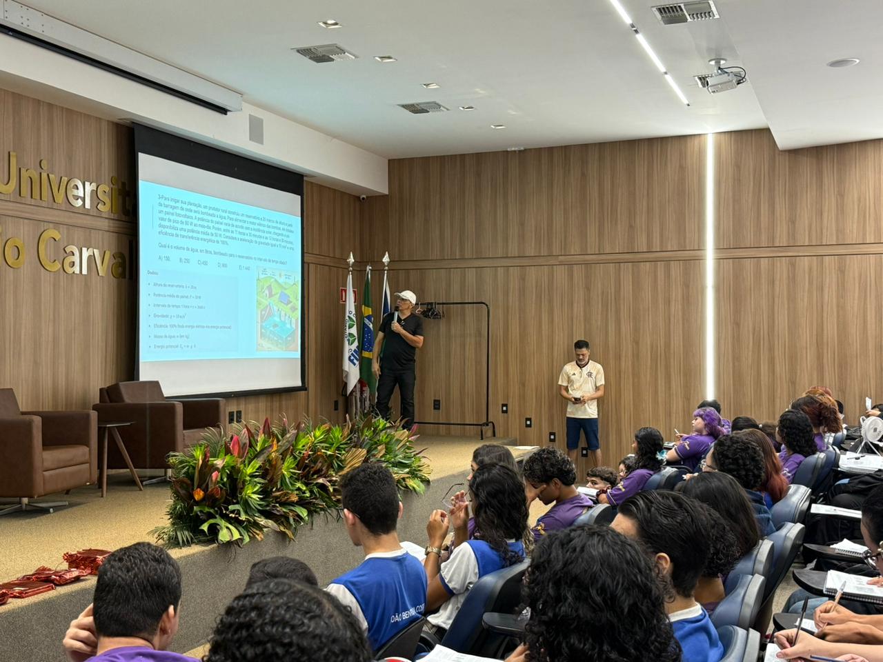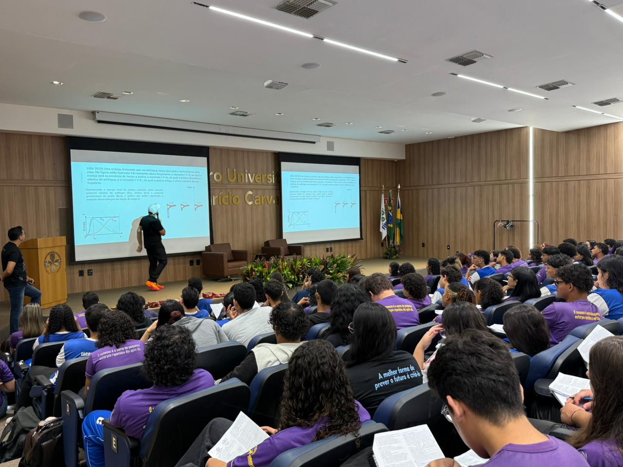 Durante o aulão, os participantes contaram com uma revisão interdisciplinar em áreas fundamentais do ENEM, como Física, Gramática, Literatura, Biologia e Redação.