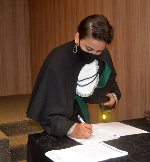 Dra. Maria Silvia, citou o momento de pandemia que não permitiu que familiares e amigos dos formandos estivessem presentes na cerimônia.