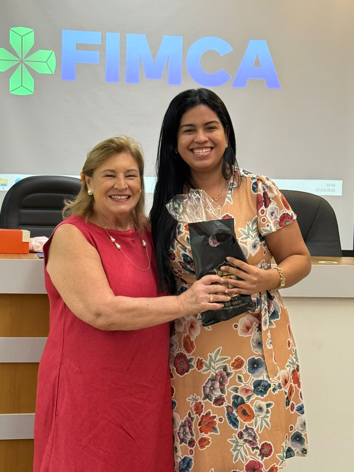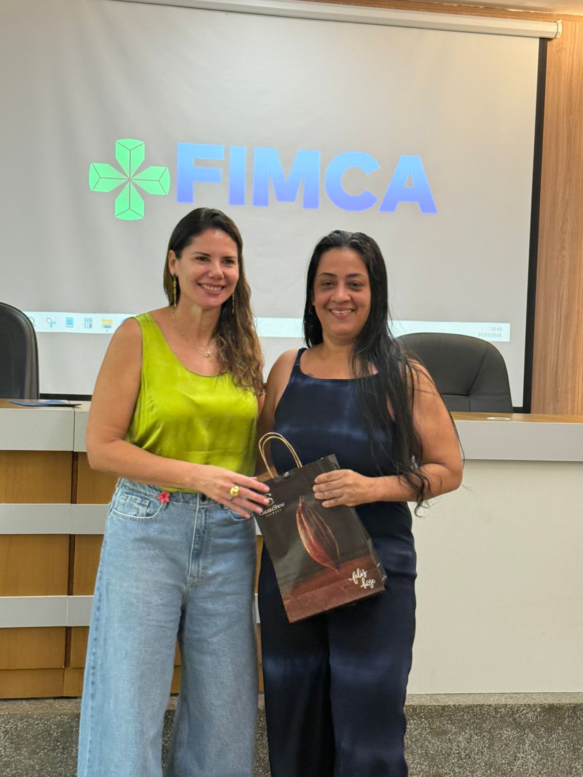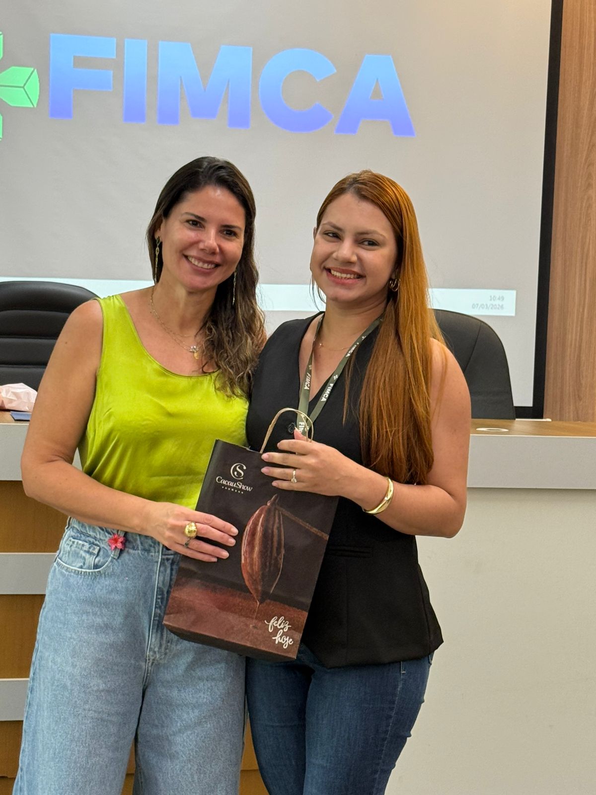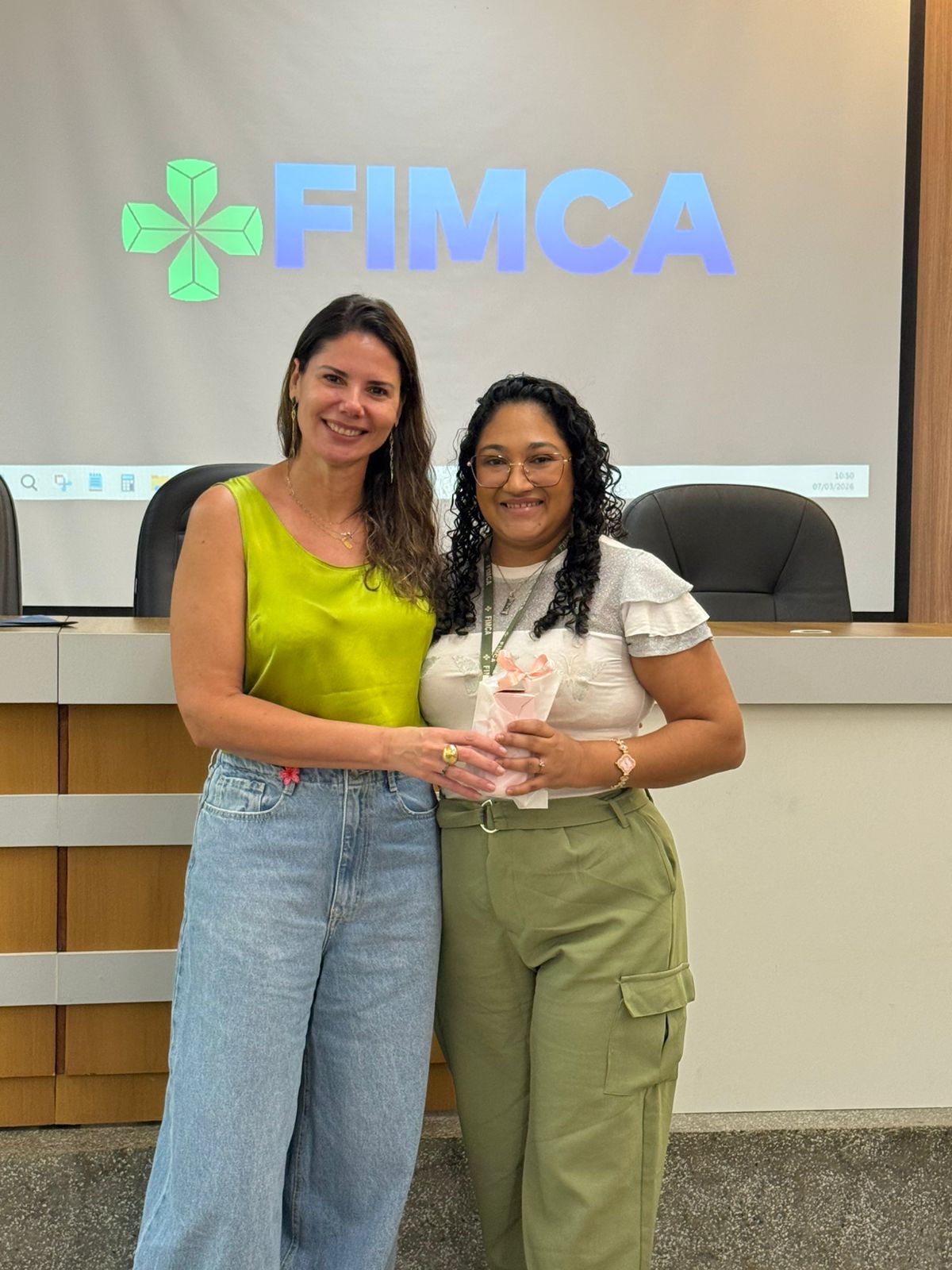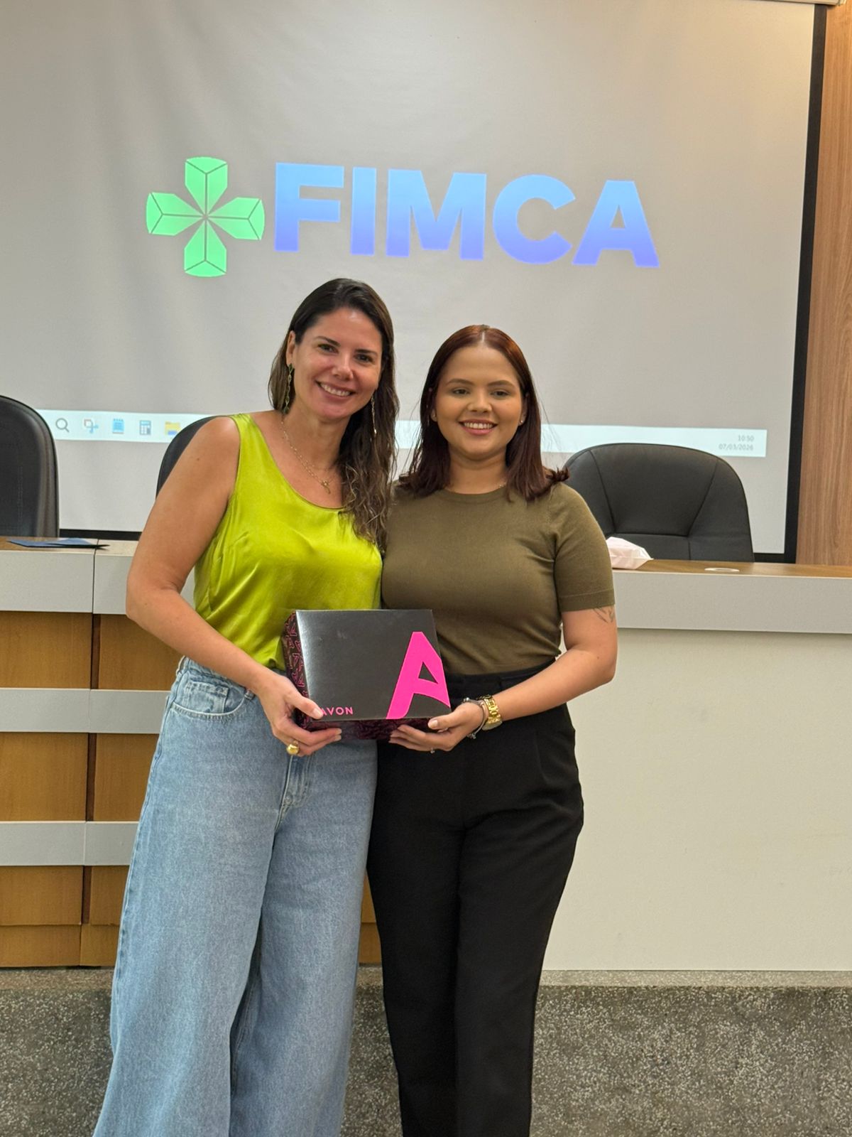 Um dos momentos mais especiais da programação foi a exibição de um vídeo com uma mensagem da reitora da FIMCA e diretora de expansão, Dra. Mariana Carvalho, preparada especialmente para as colaboradoras.