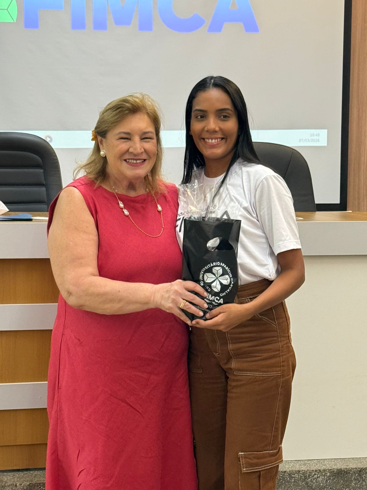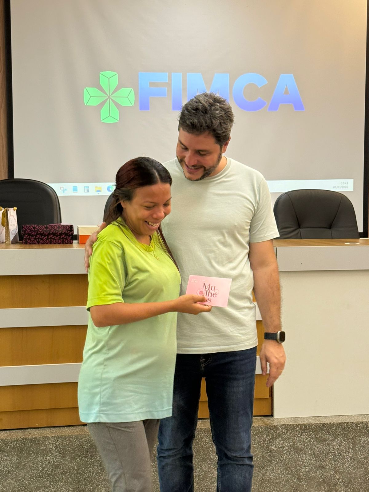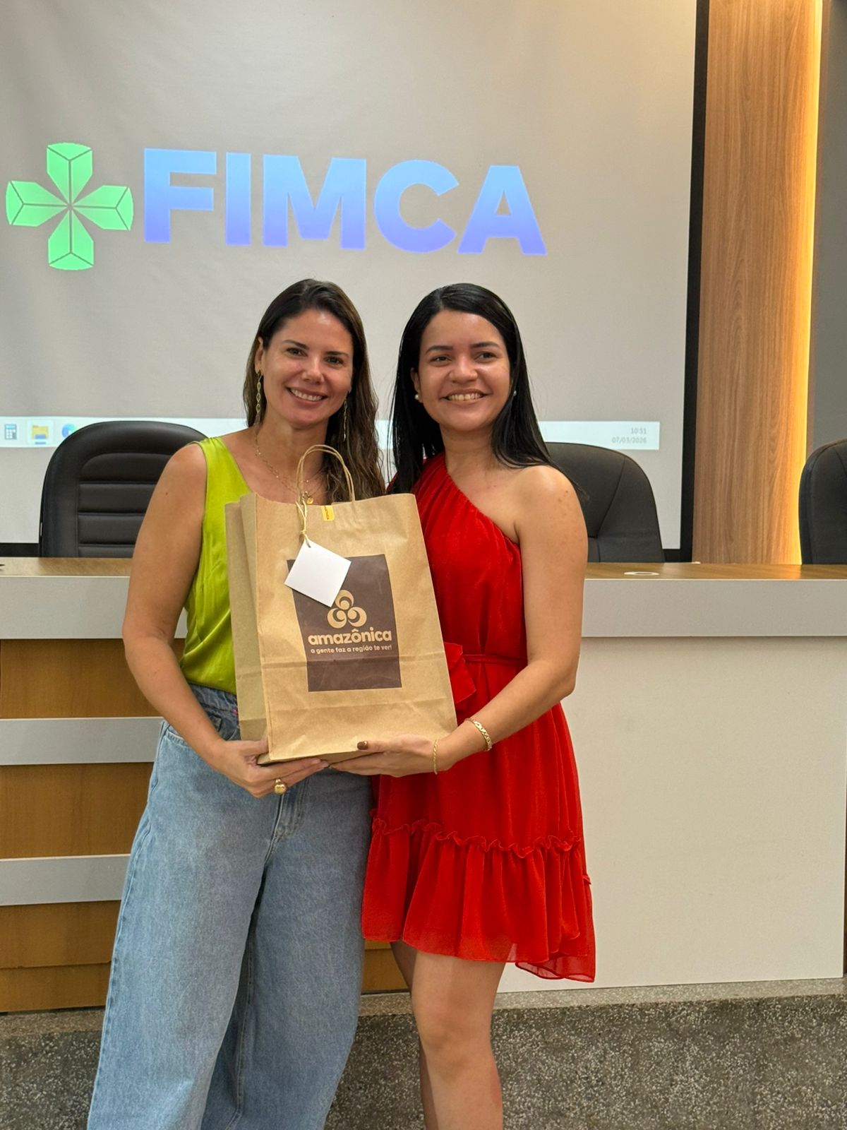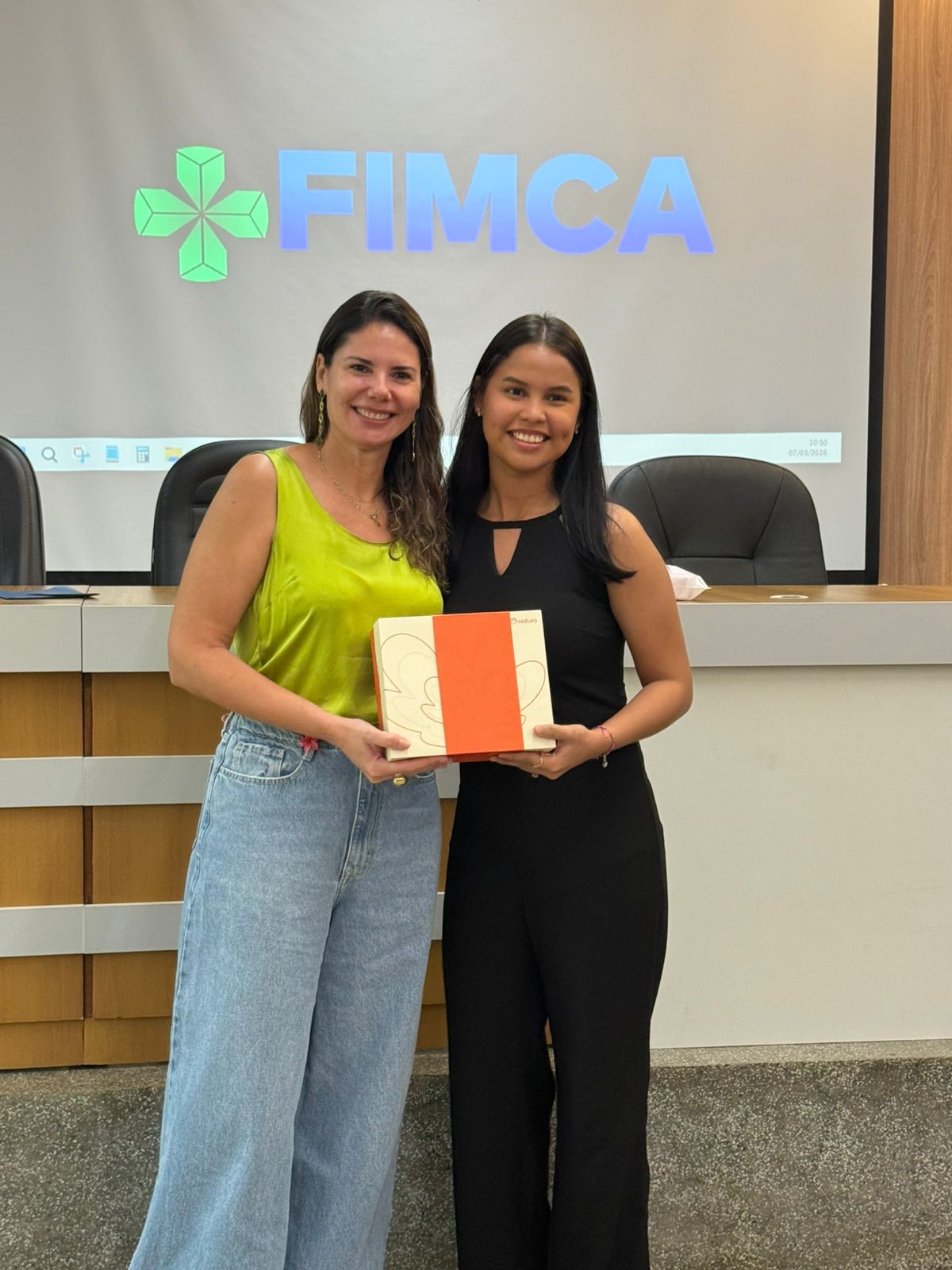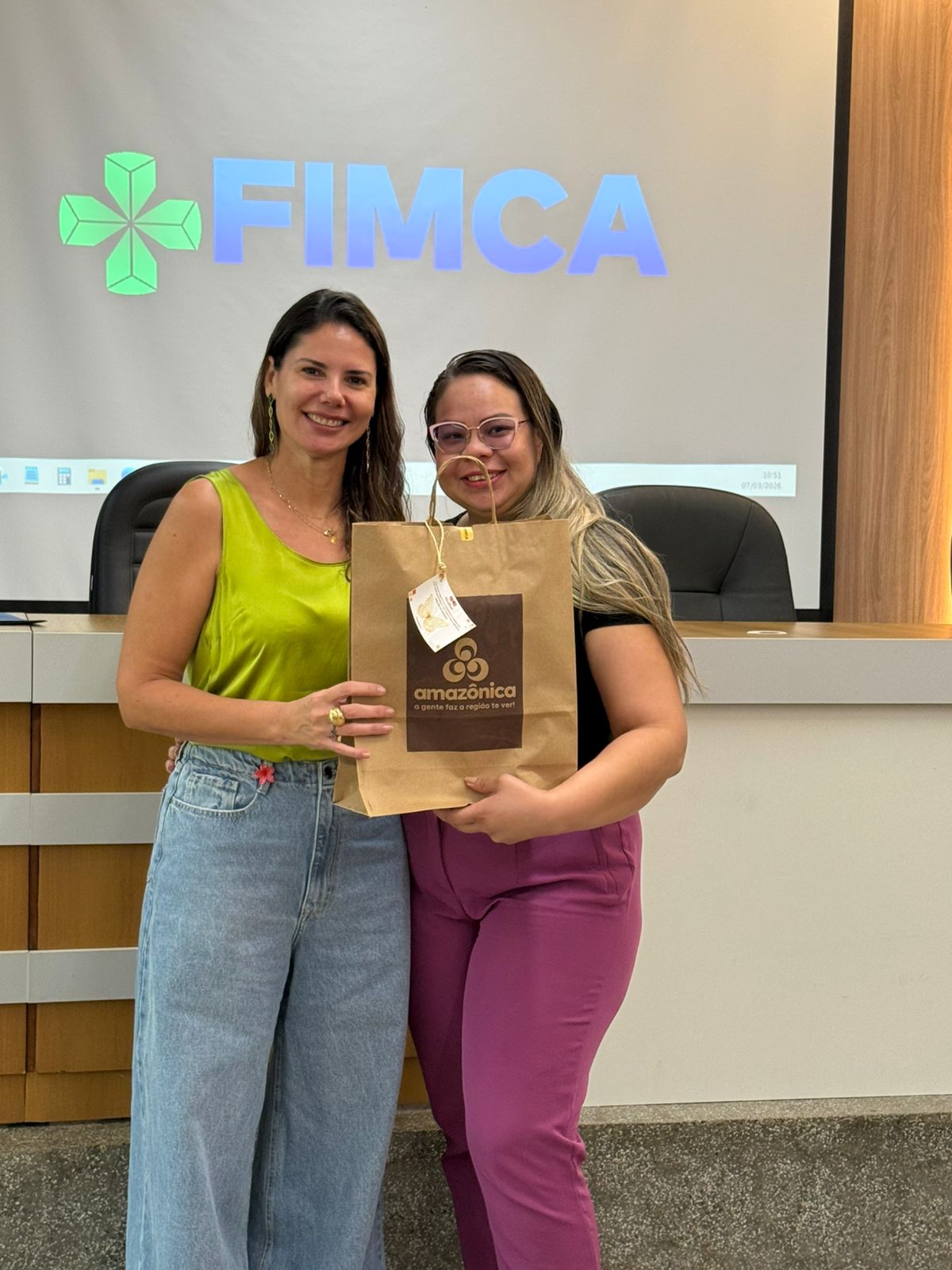 Um dos momentos mais especiais da programação foi a exibição de um vídeo com uma mensagem da reitora da FIMCA e diretora de expansão, Dra. Mariana Carvalho, preparada especialmente para as colaboradoras.