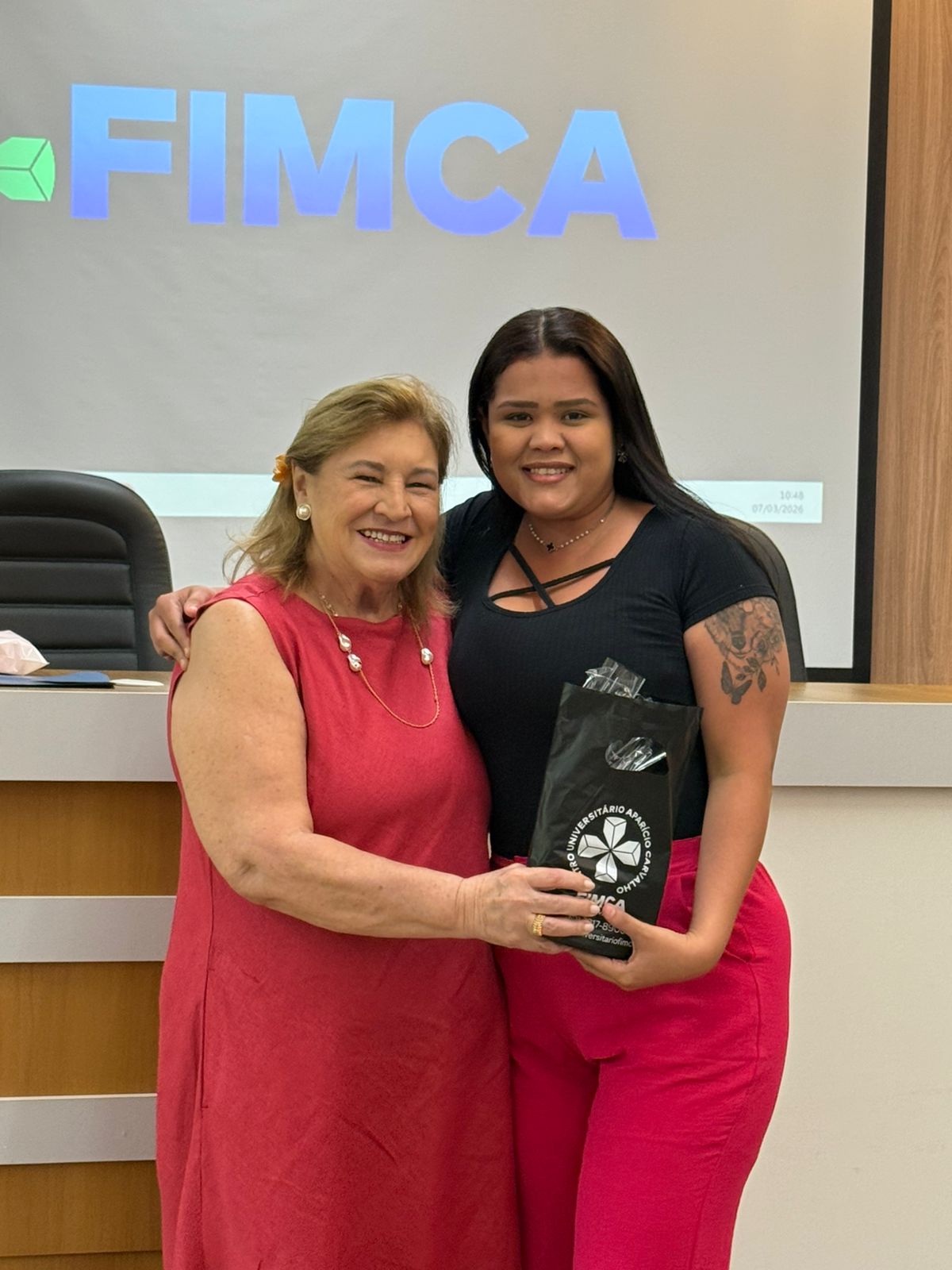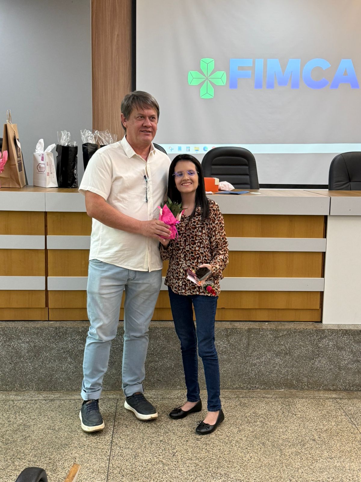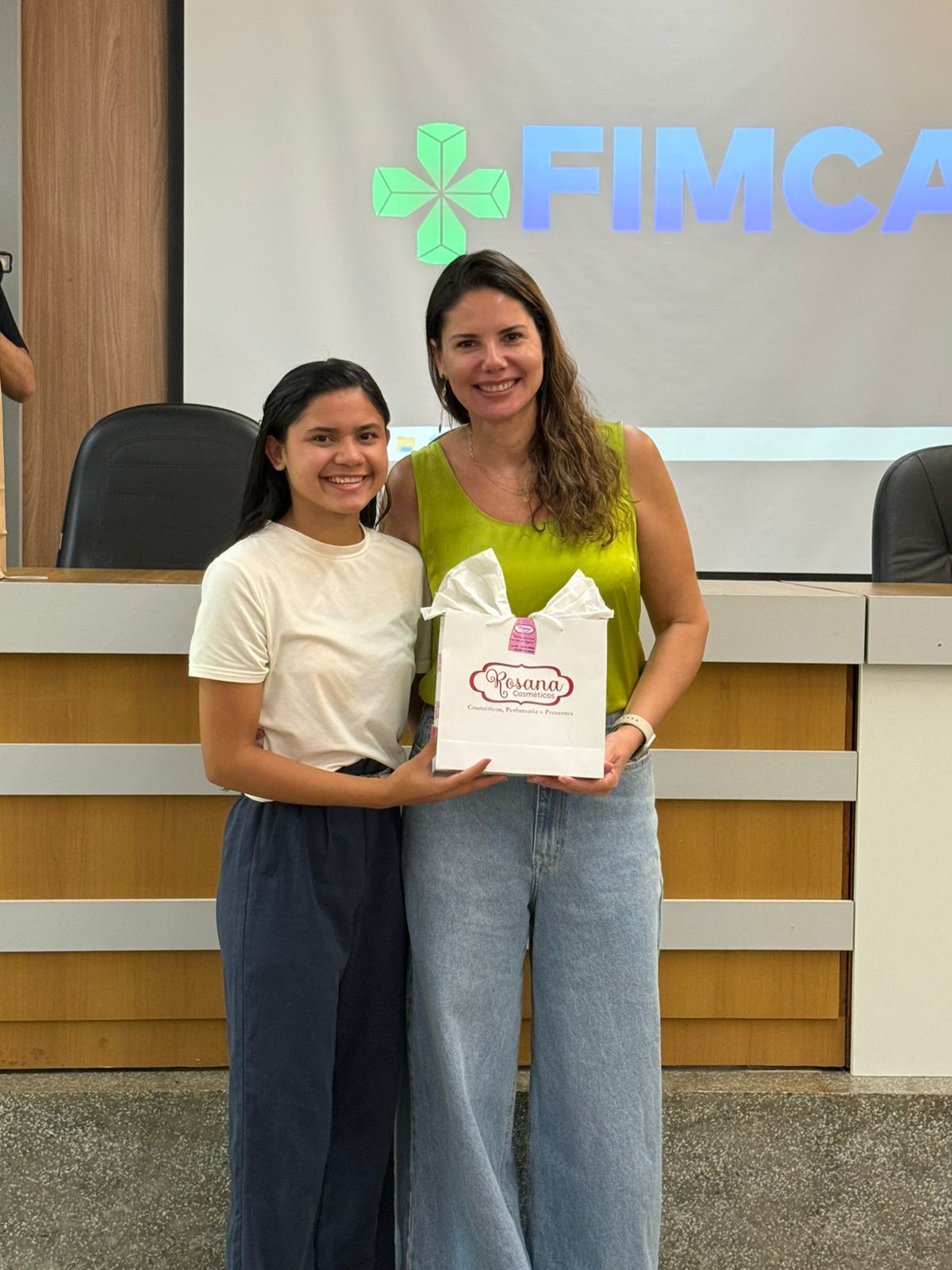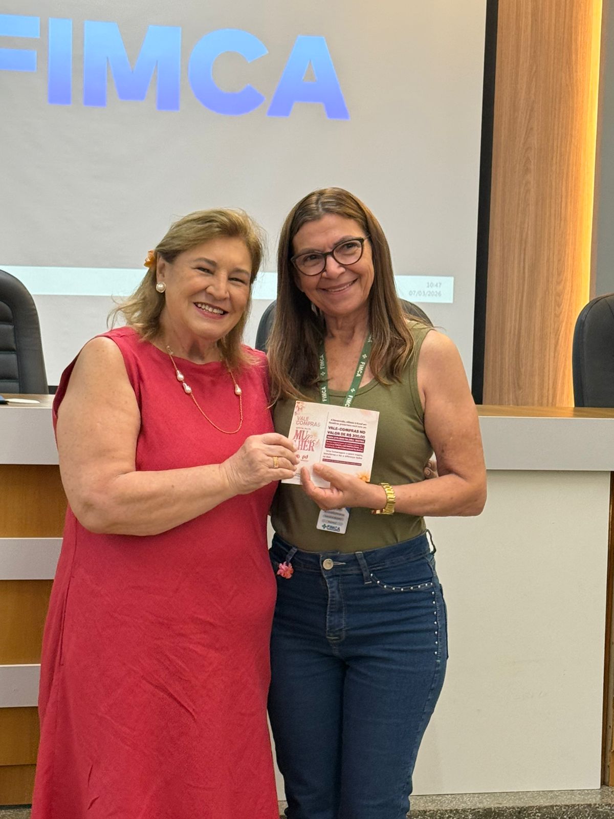 Um dos momentos mais especiais da programação foi a exibição de um vídeo com uma mensagem da reitora da FIMCA e diretora de expansão, Dra. Mariana Carvalho, preparada especialmente para as colaboradoras.