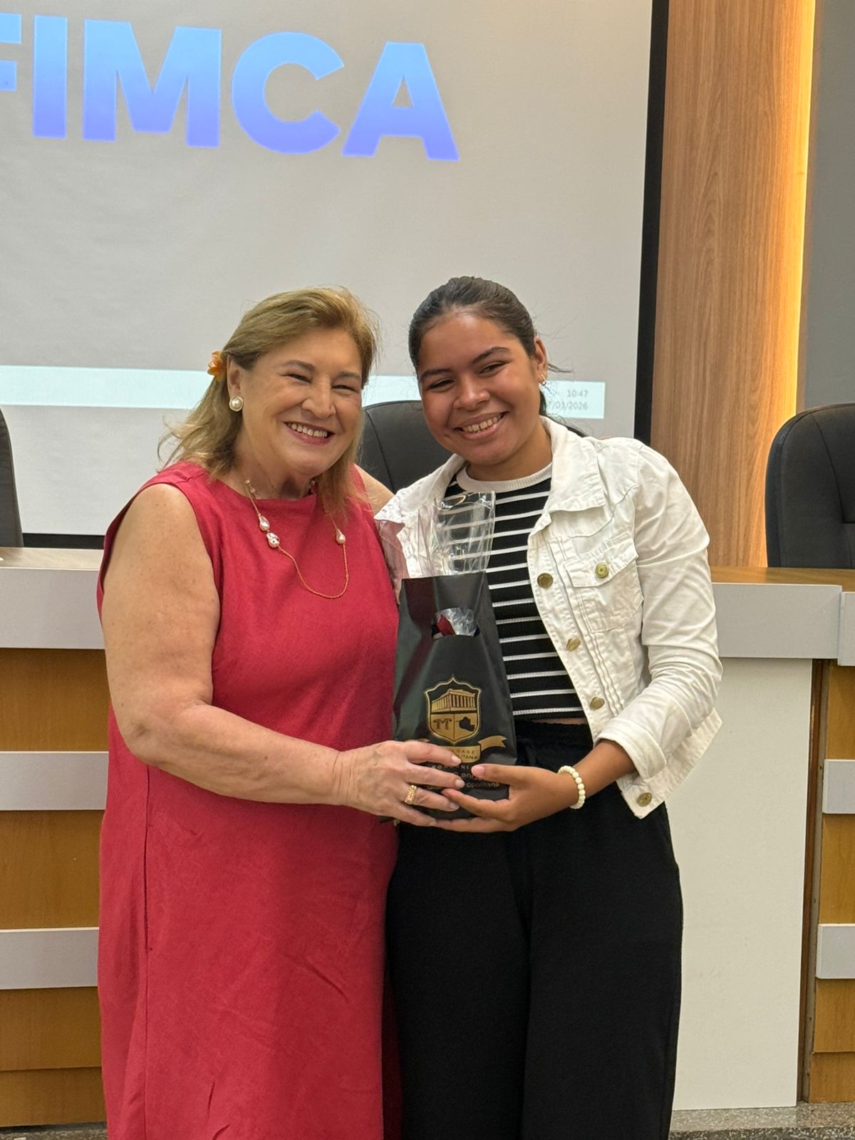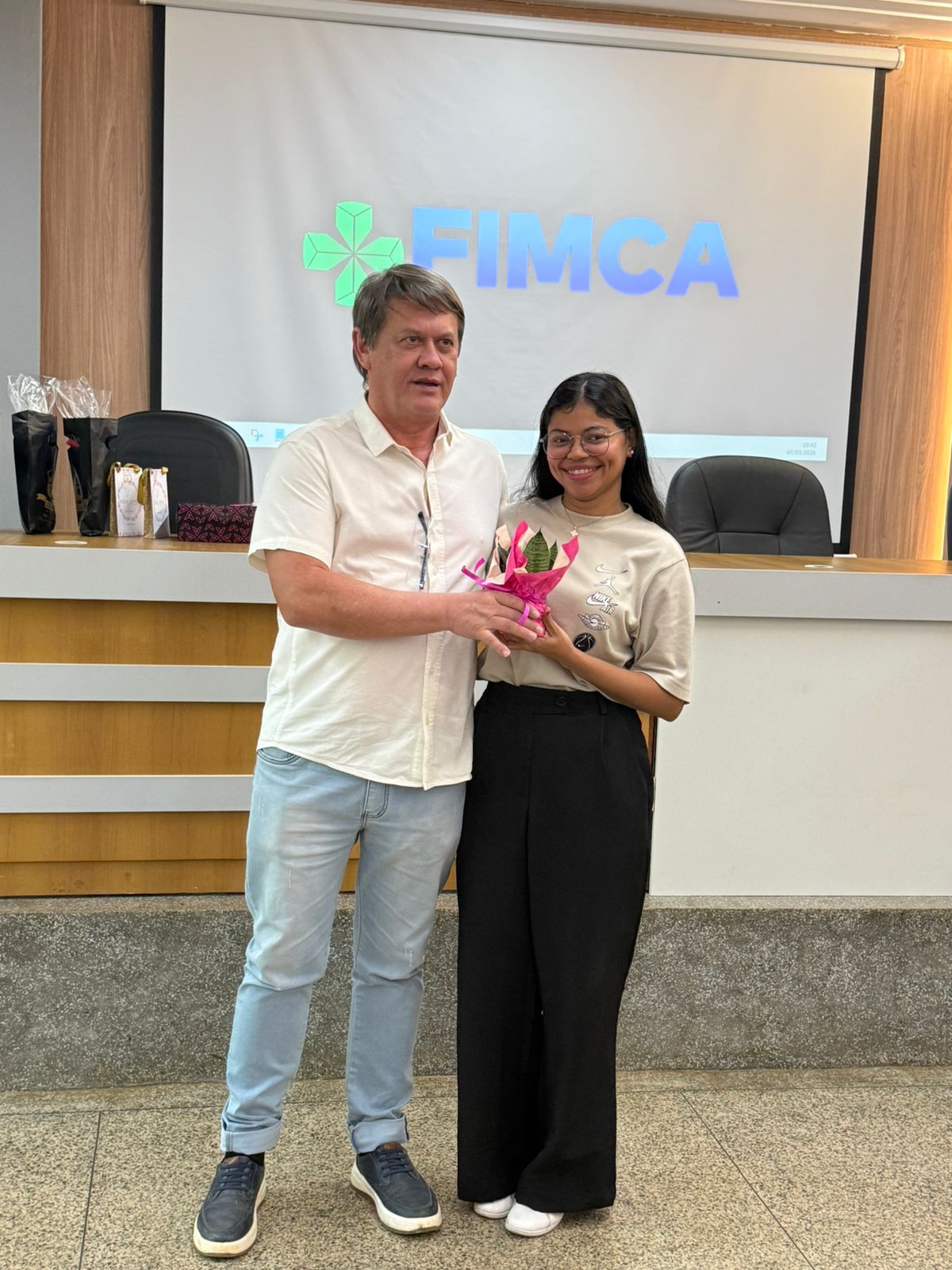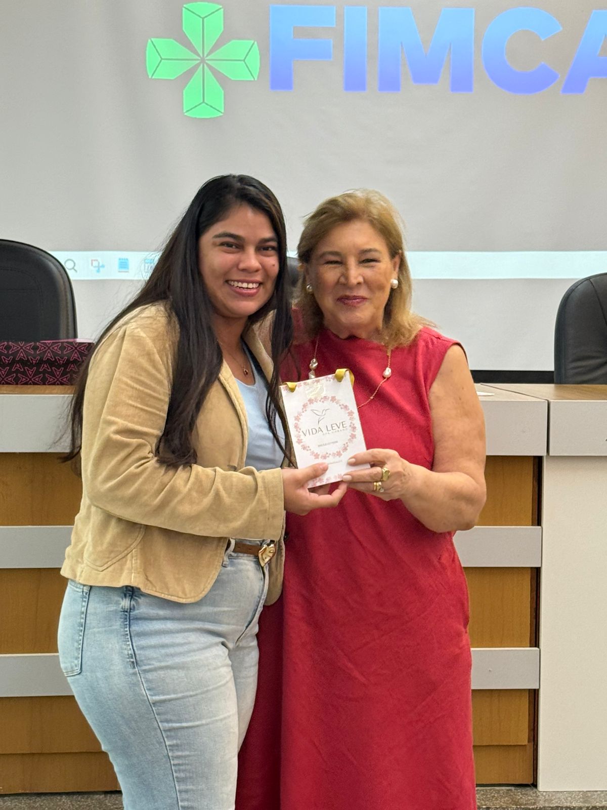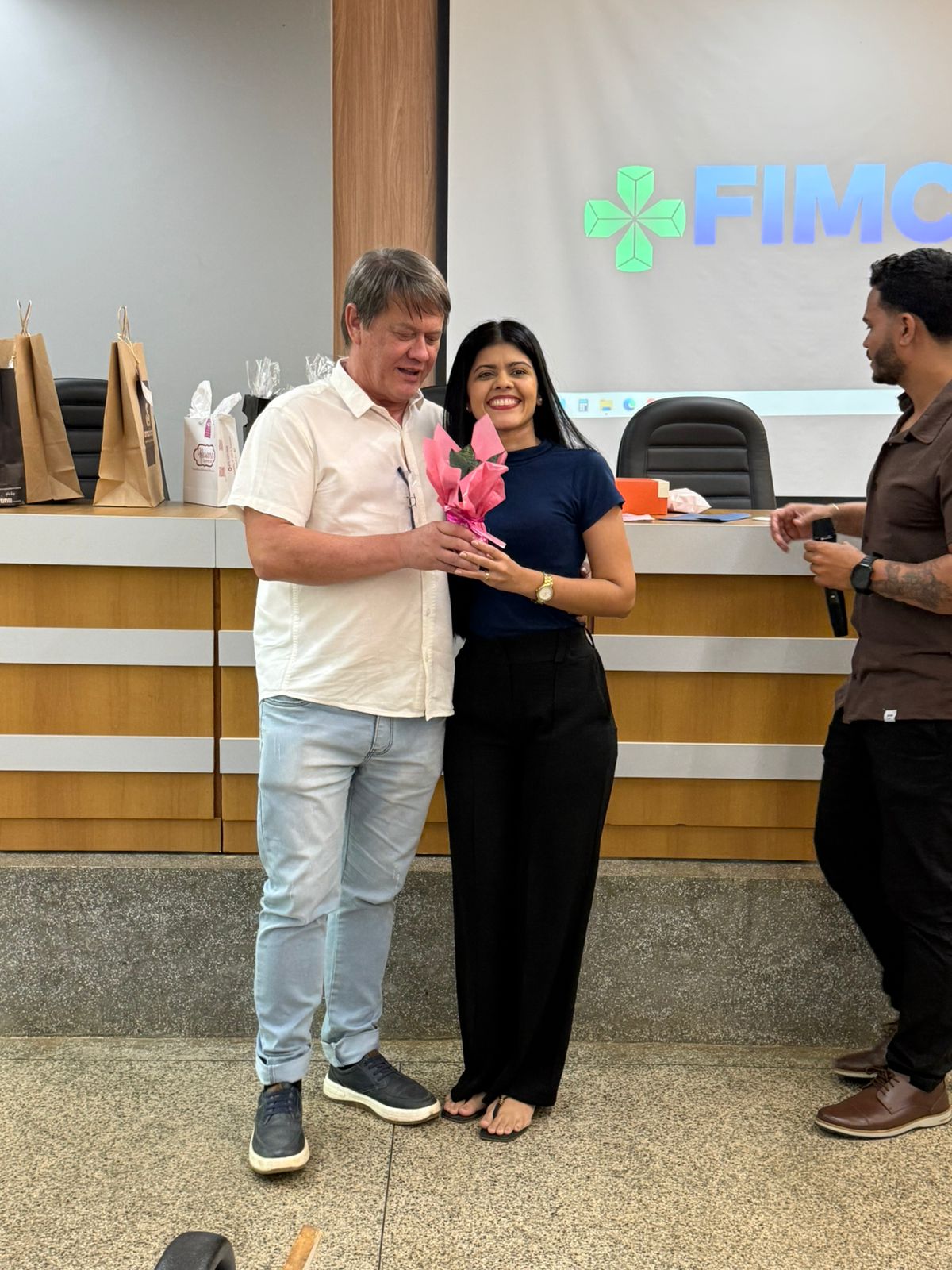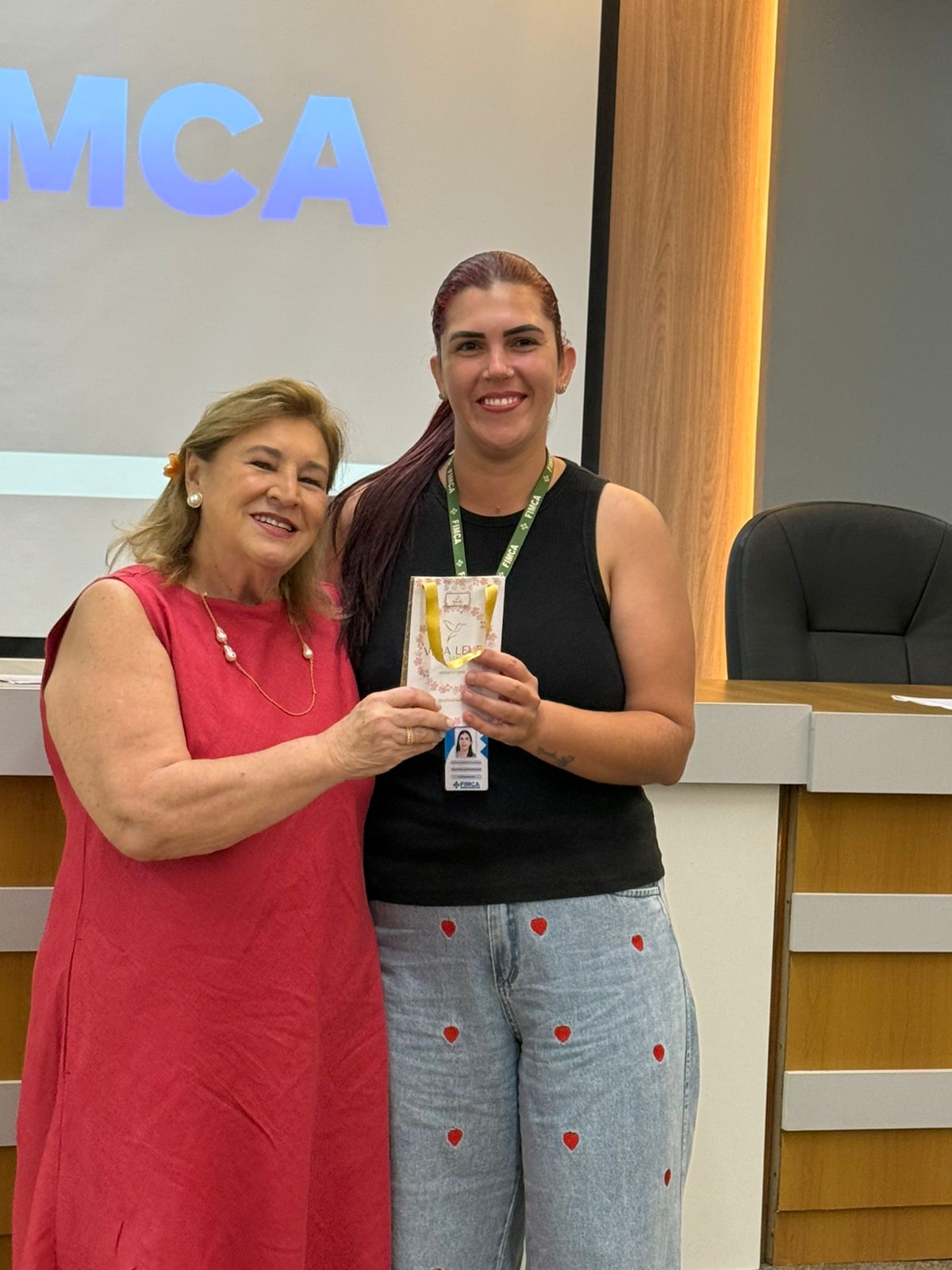 Um dos momentos mais especiais da programação foi a exibição de um vídeo com uma mensagem da reitora da FIMCA e diretora de expansão, Dra. Mariana Carvalho, preparada especialmente para as colaboradoras.