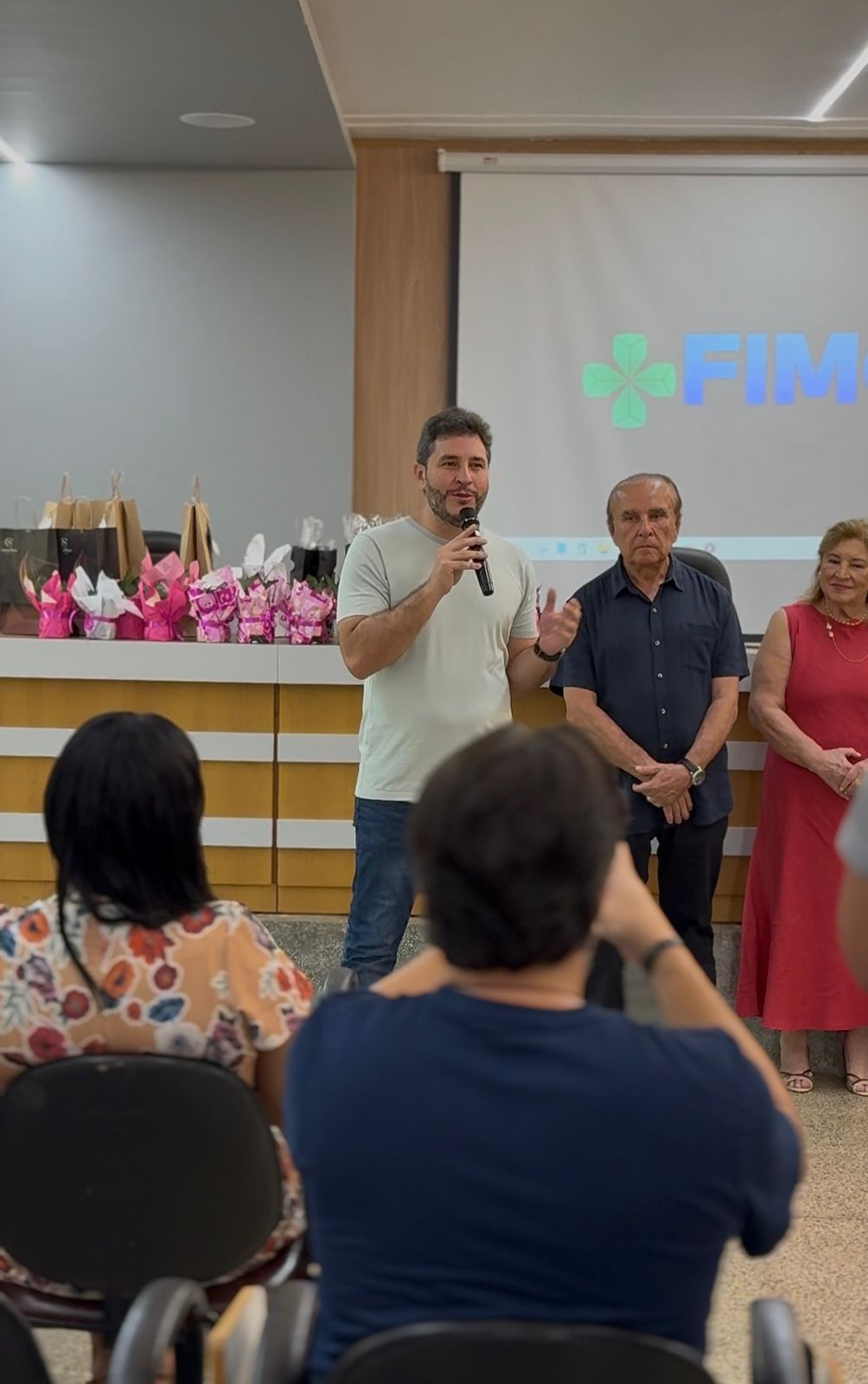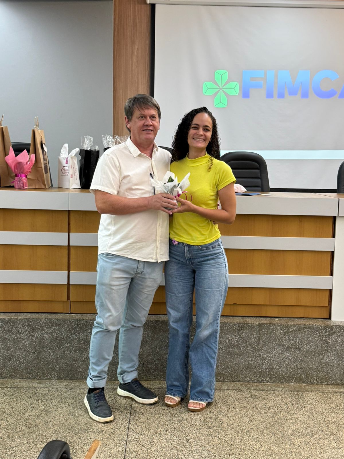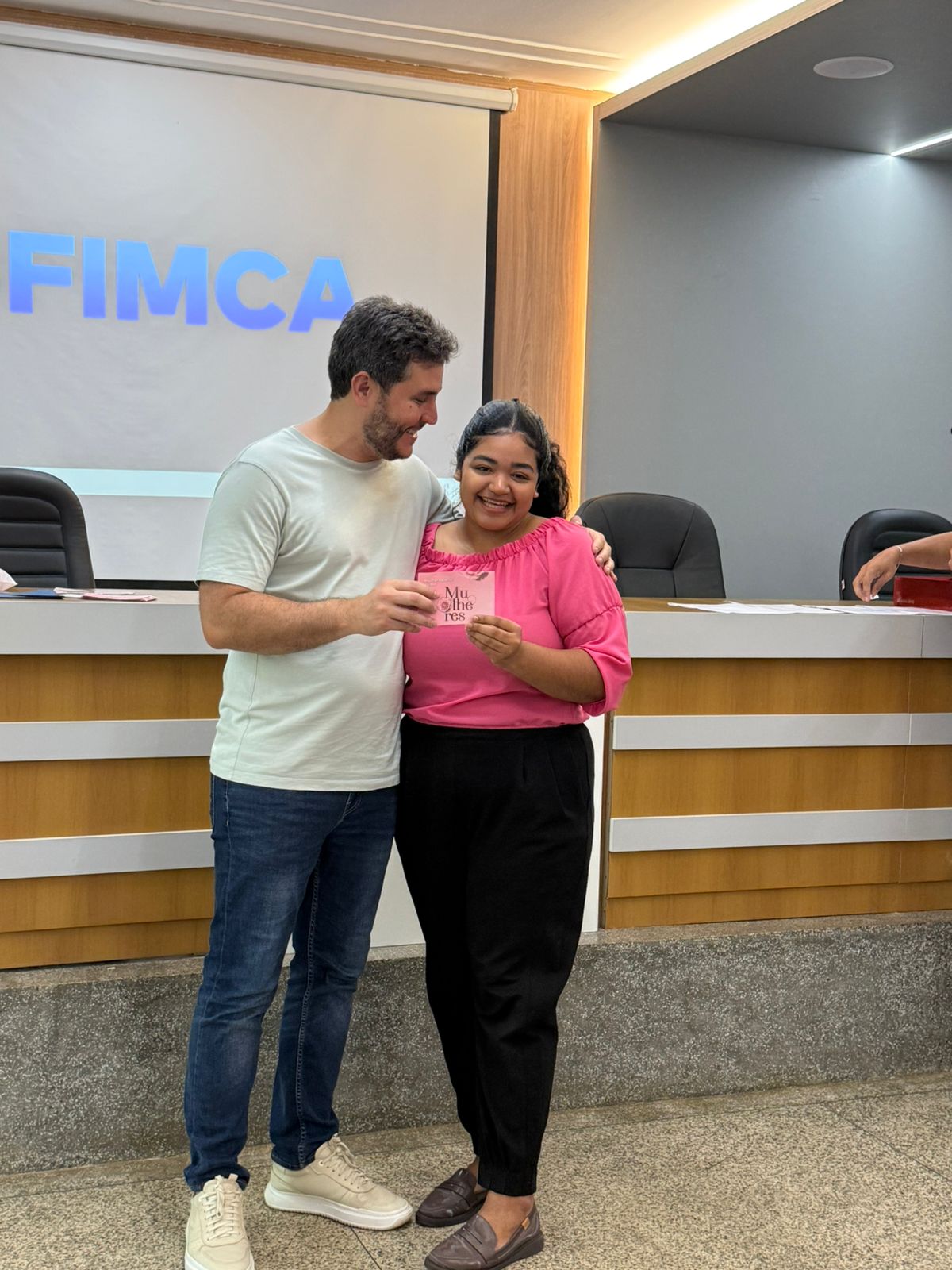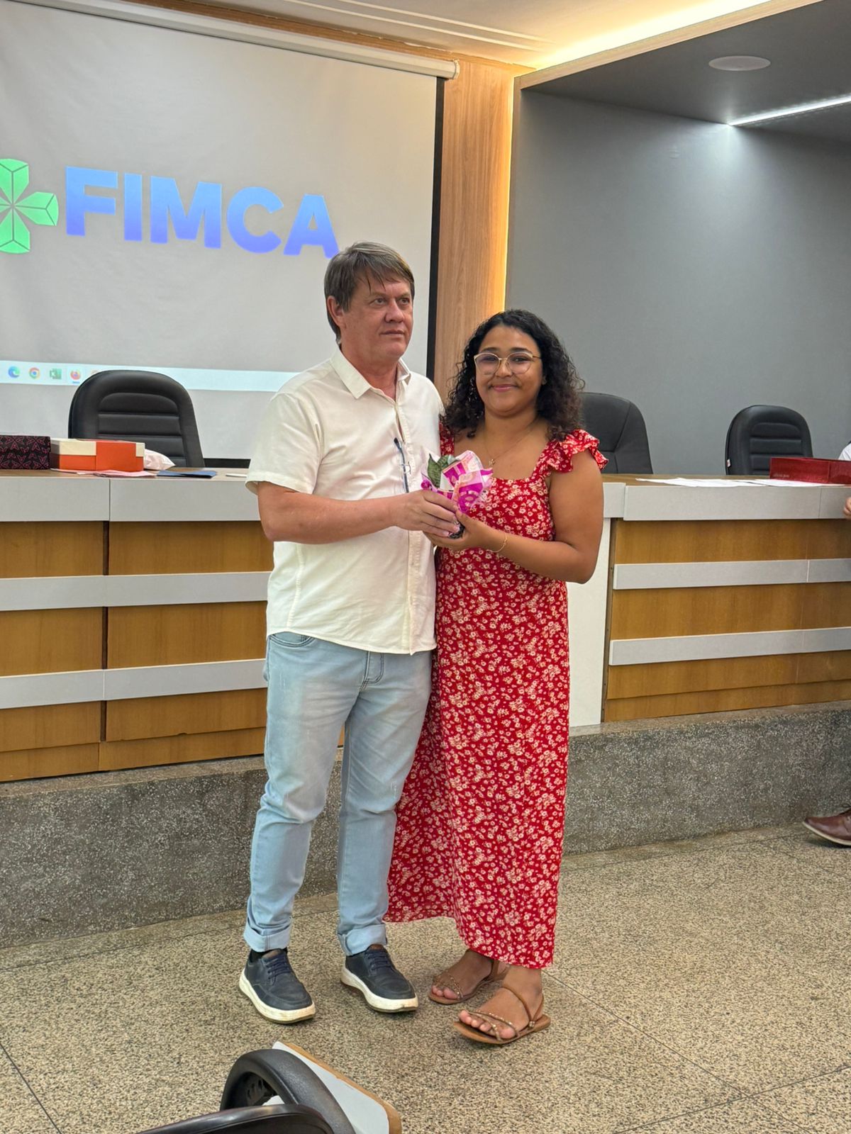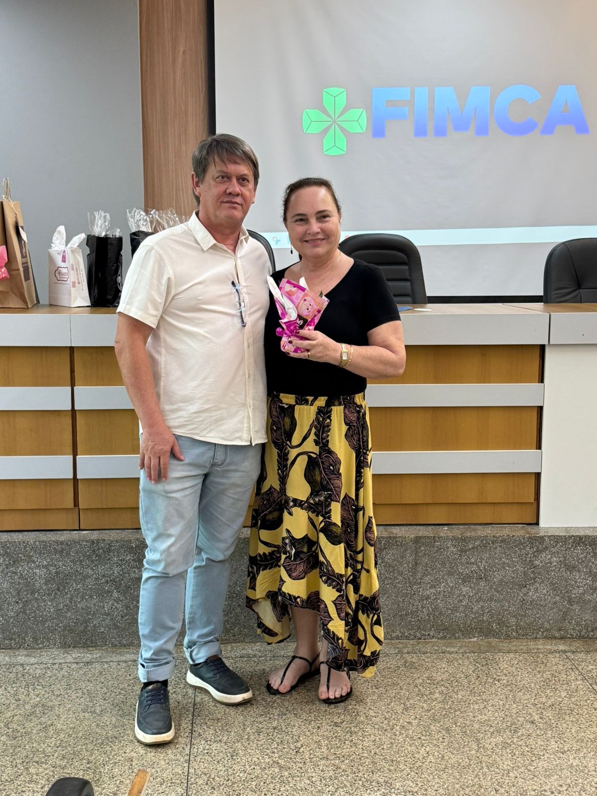 Um dos momentos mais especiais da programação foi a exibição de um vídeo com uma mensagem da reitora da FIMCA e diretora de expansão, Dra. Mariana Carvalho, preparada especialmente para as colaboradoras.