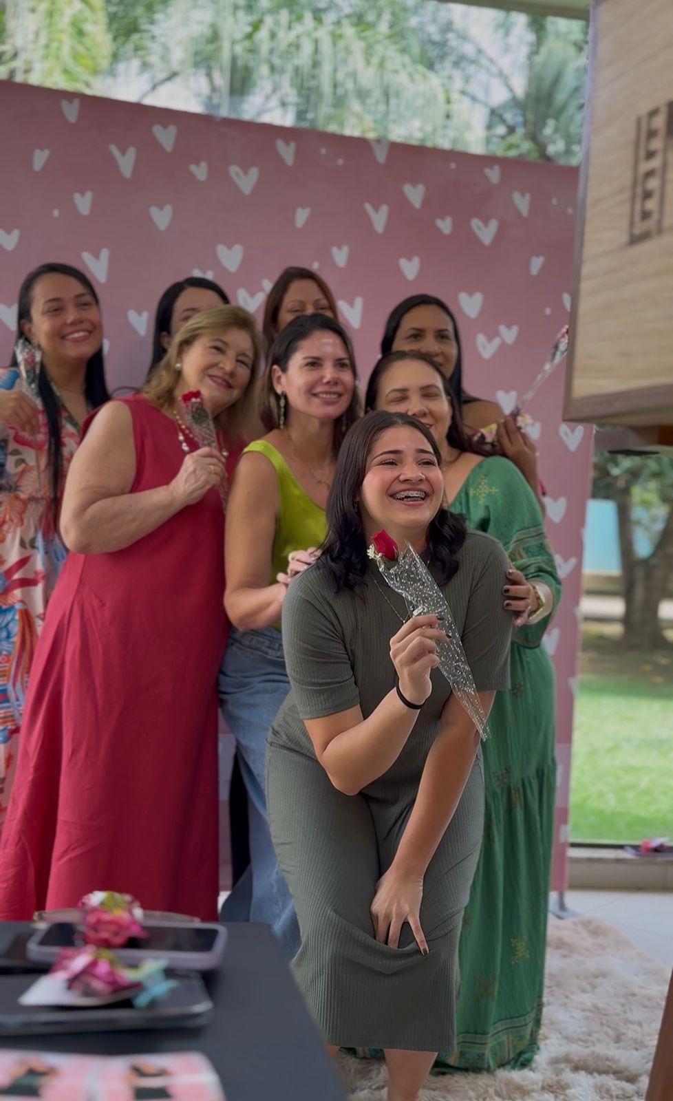 Outro destaque foi a criação de um espaço especial para fotos, onde as colaboradoras puderam registrar o momento e levar uma lembrança do evento. As fotografias eram impressas na hora, permitindo que cada participante guardasse uma recordação da celebração.