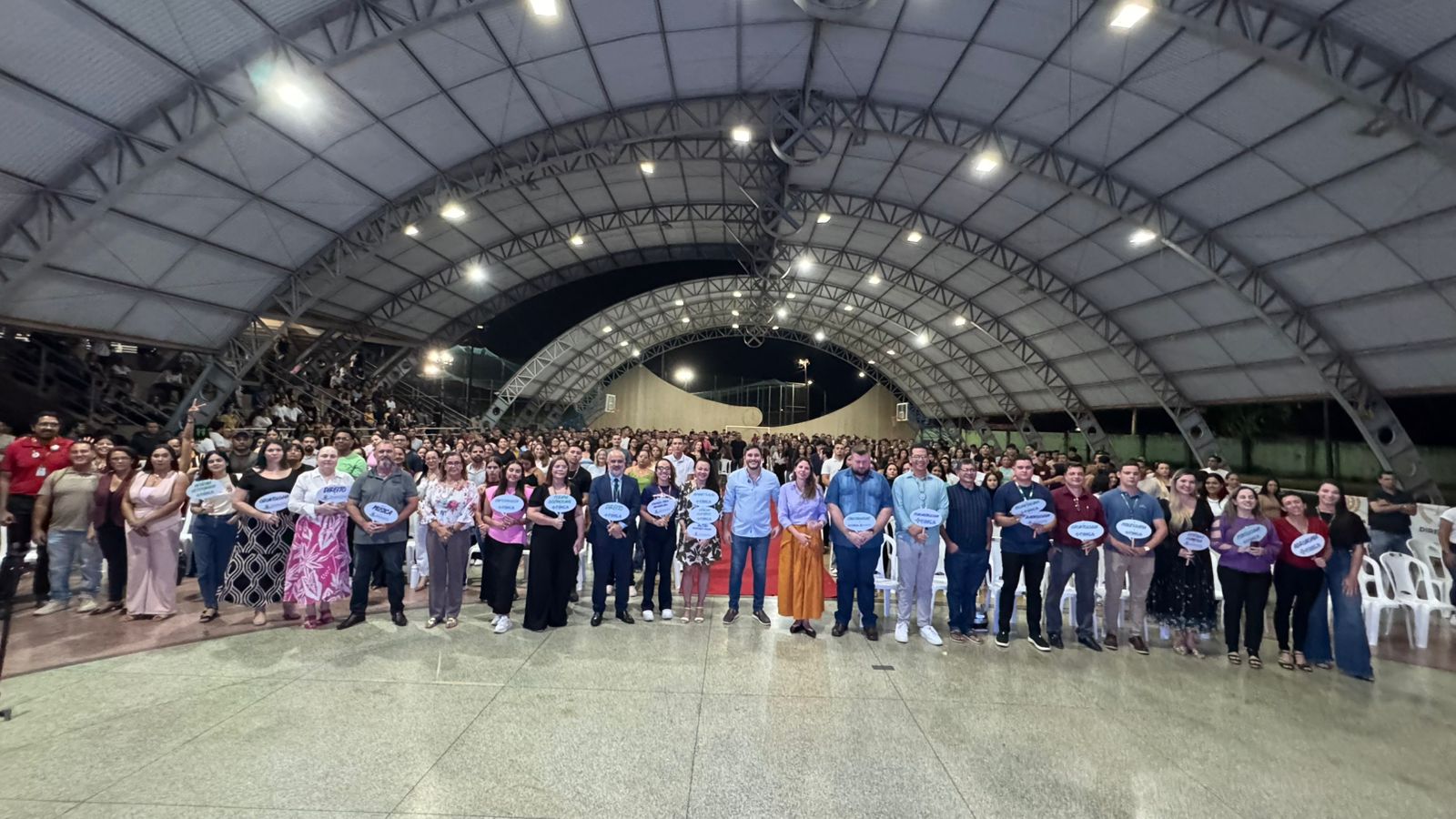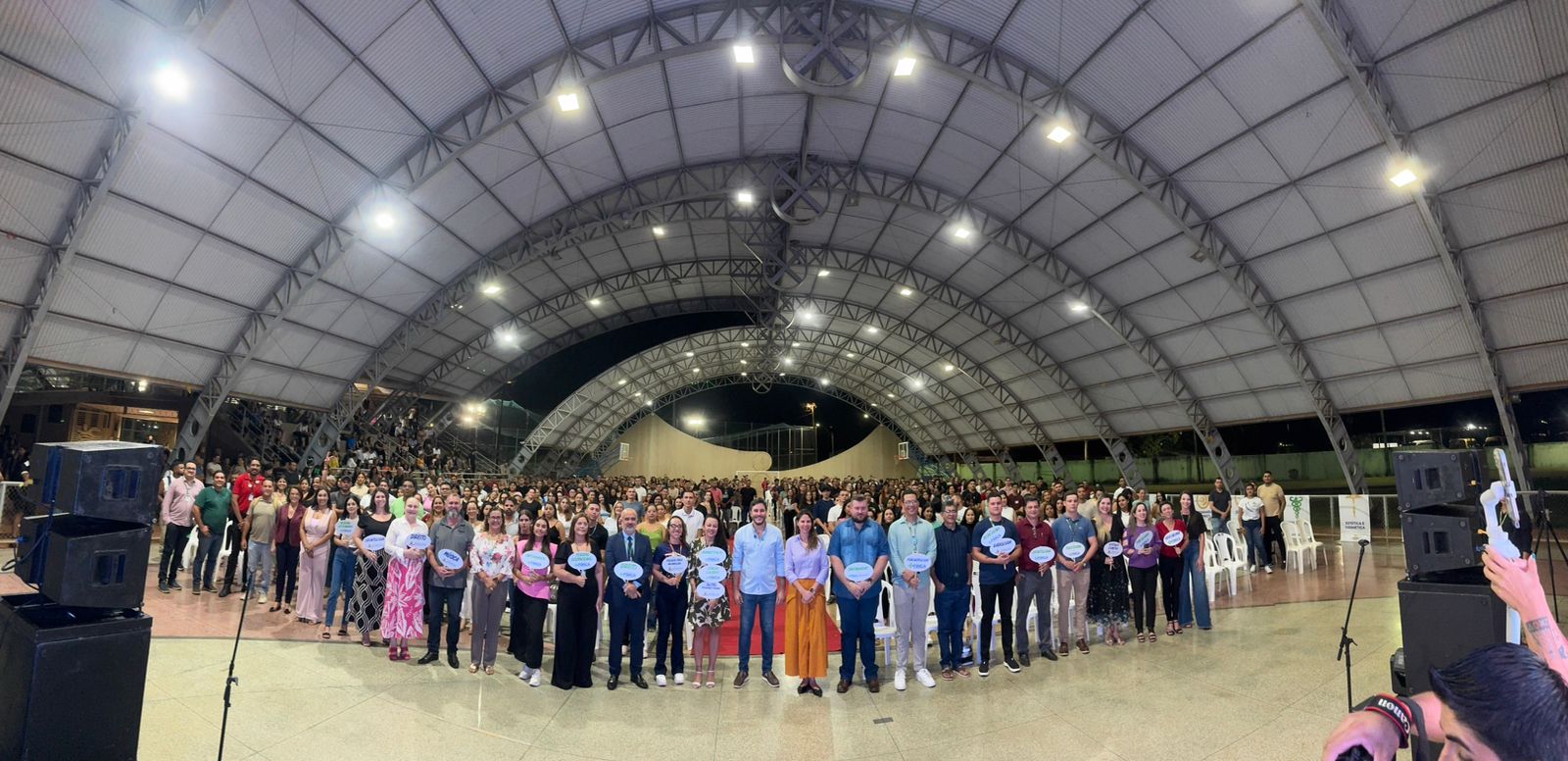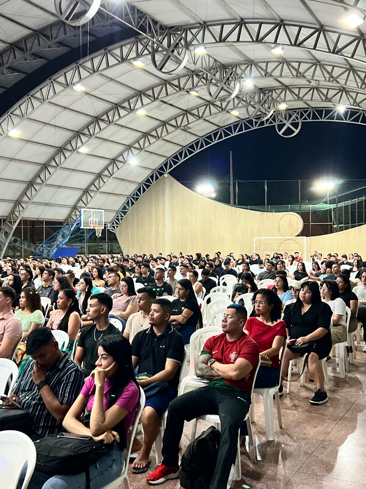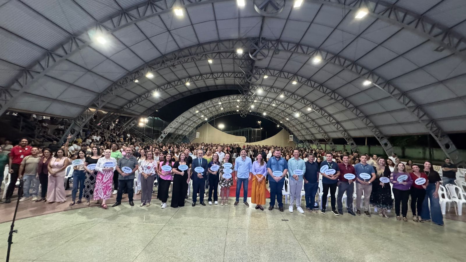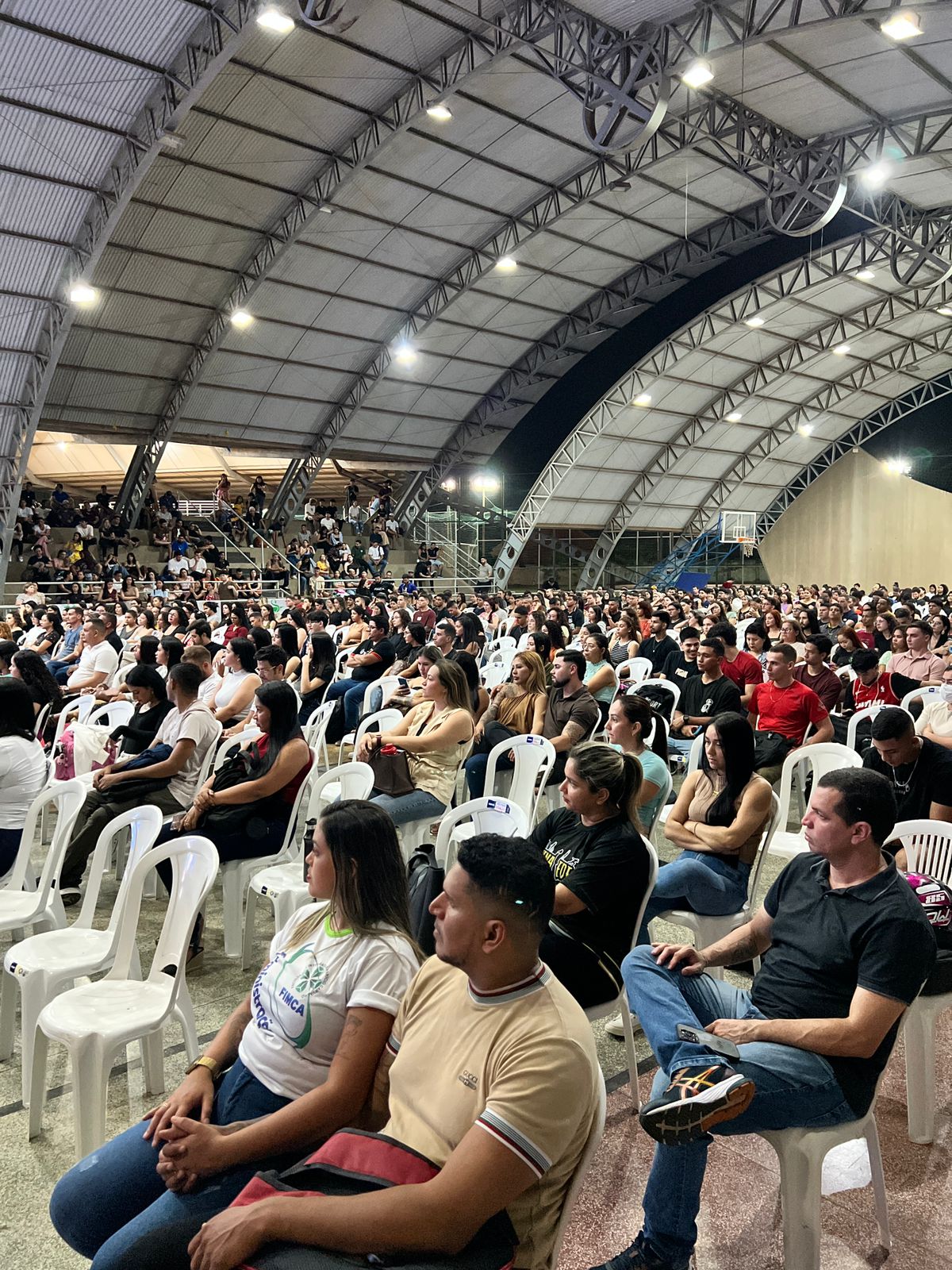 A recepção aconteceu na quadra poliesportiva da Vila Olímpica e contou com a presença de mais de 800 novos calouros, de diversas áreas do conhecimento. O momento foi marcado por acolhimento, integração e incentivo à jornada acadêmica que se inicia.