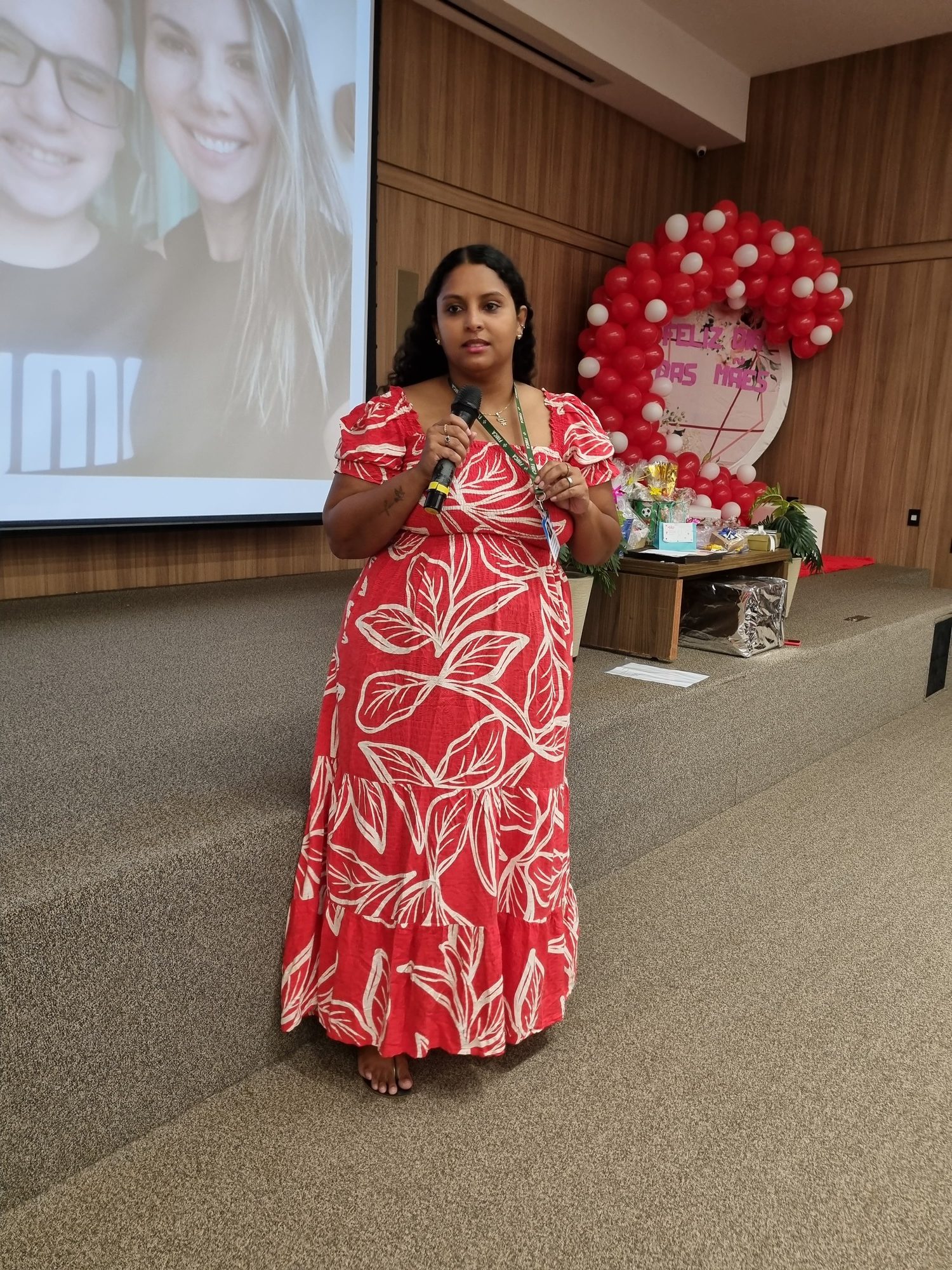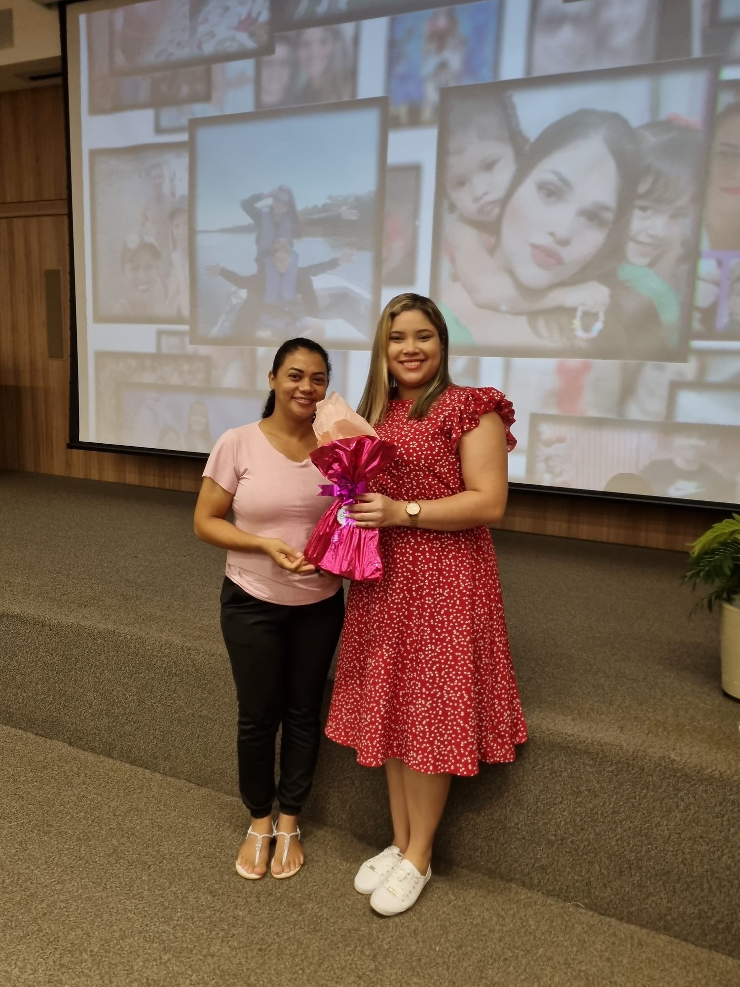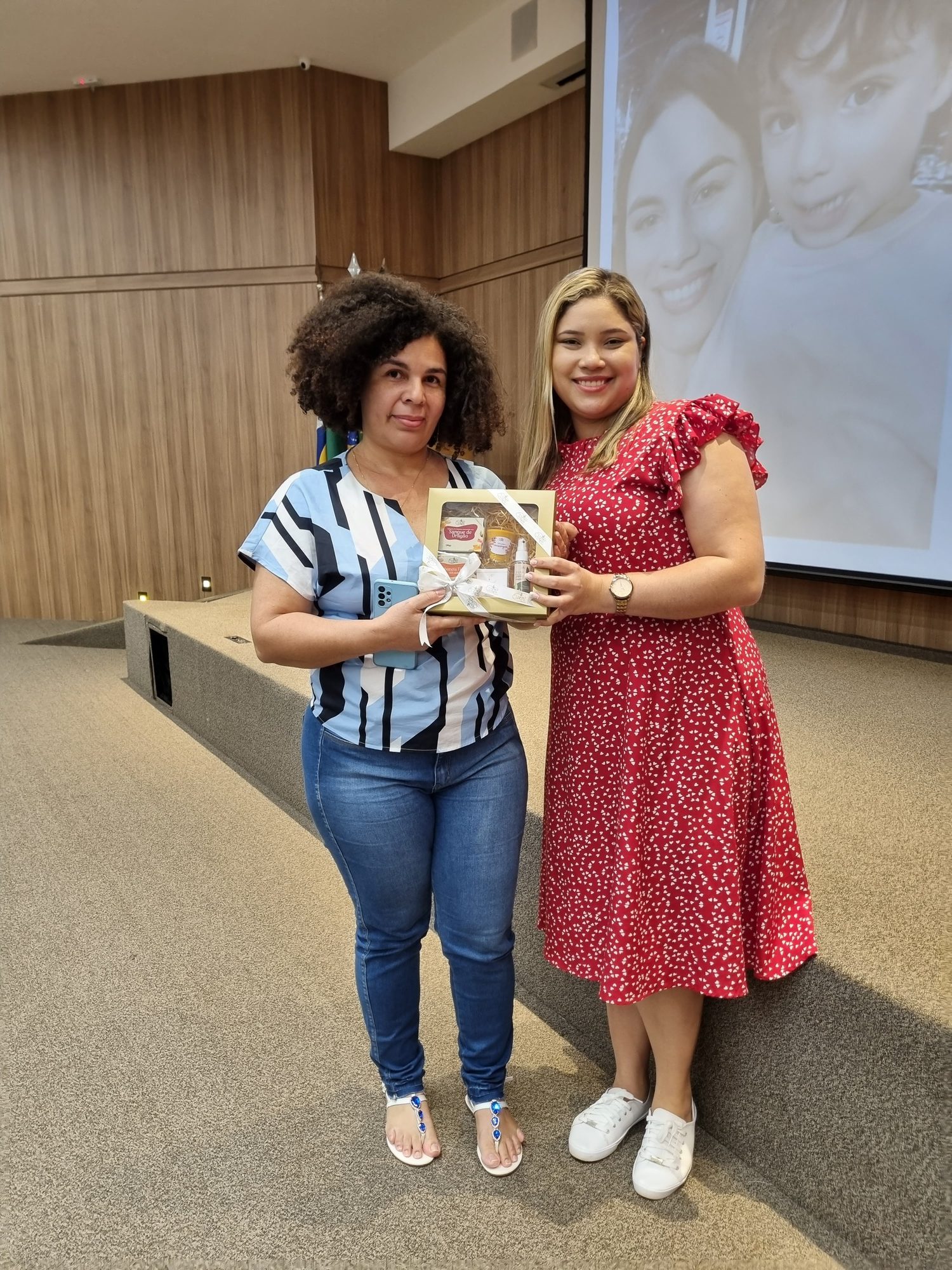 Na ocasião, foram exibidas as fotos enviadas pelas mamães da instituição e um vídeo com uma linda homenagem. Houve um espaço para que elas pudessem compartilhar algumas experiências, o que foi feito por algumas colaboradoras, e também foi feito o sorteio de vários brindes de parceiros da instituição.