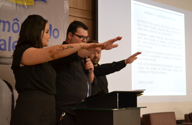 Os novos acadêmicos também fizeram o juramento do estudante de medicina e foram orientados quanto à ética, postura enquanto graduando e o perfil profissional que o mercado exige.