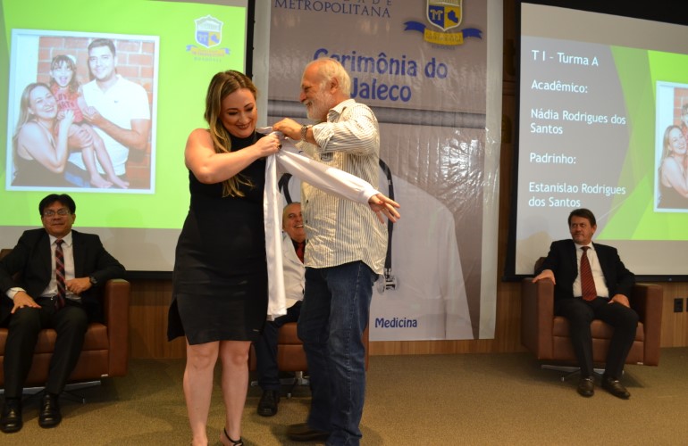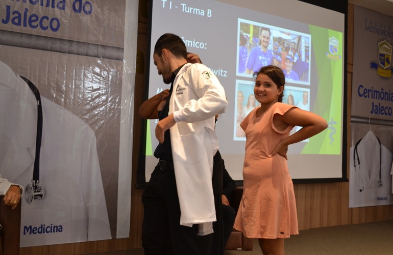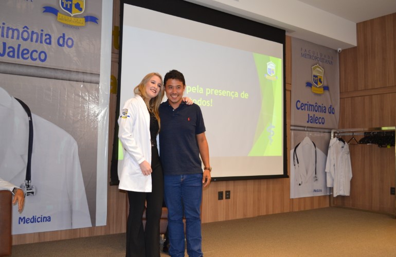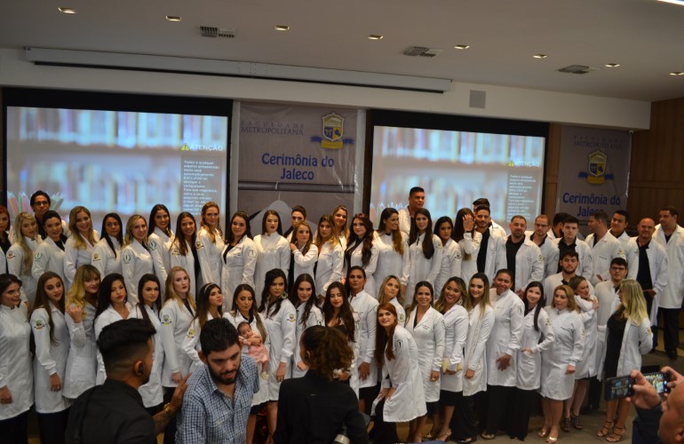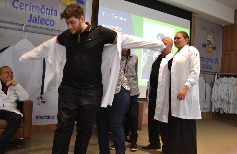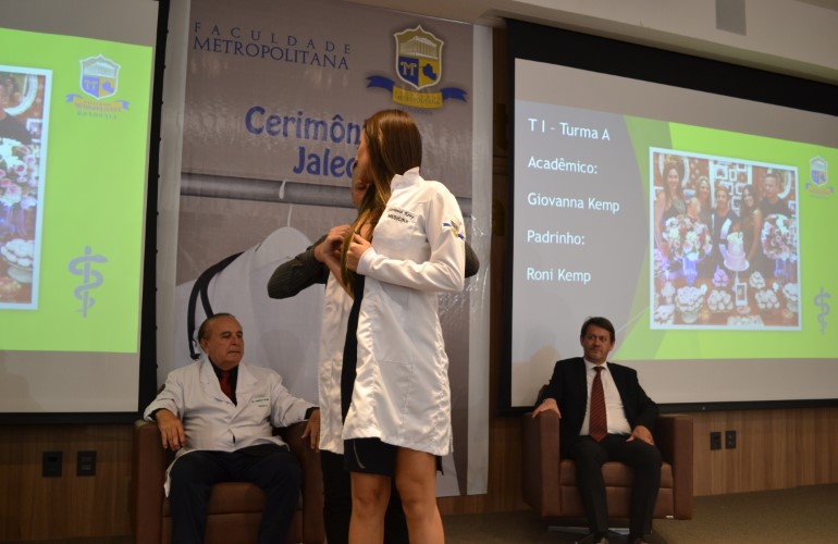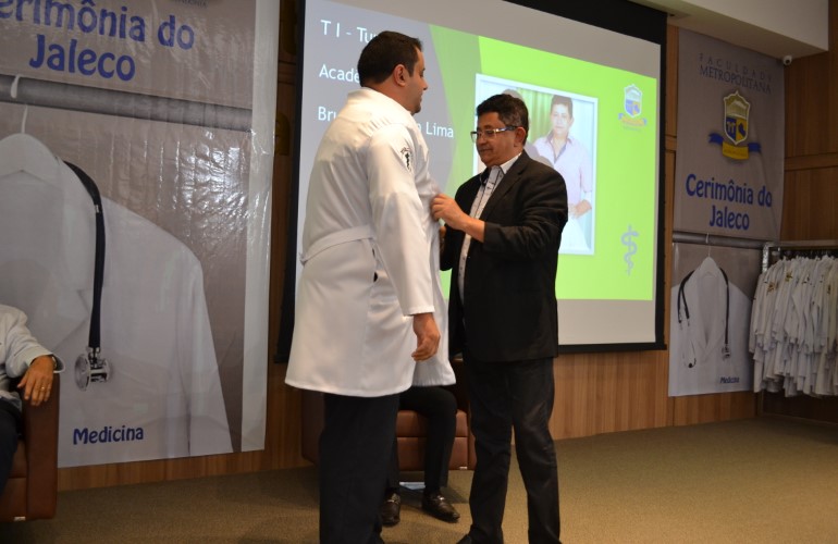 Antes mesmo de se tornarem Médicos formados, os novos acadêmicos do curso de Medicina da Faculdade Metropolitana já puderam sentir na pele a responsabilidade que a profissão exige. Neste ultimo sábado, 15, os calouros receberam cada um o seu jaleco, como símbolo da iniciação no curso, na ‘Cerimônia do Jaleco’.