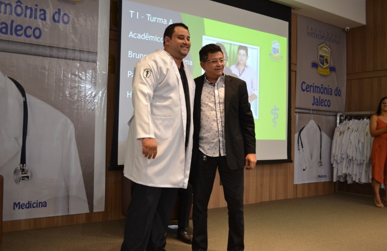 A ‘Cerimônia do Jaleco’ tem como objetivo preparar o futuro médico quanto a postura que deve passar a adotar. Participaram da Solenidade o Presidente do Grupo Educacional Aparício Carvalho e Coordenador do curso de Medicina da Faculdade Metropolitana, o Dr. Aparício Carvalho, juntamente com o Vice-diretor da Instituição, o Professor Luiz Ibanor. Veja como foi a cerimônia em nossa galeria de fotos :