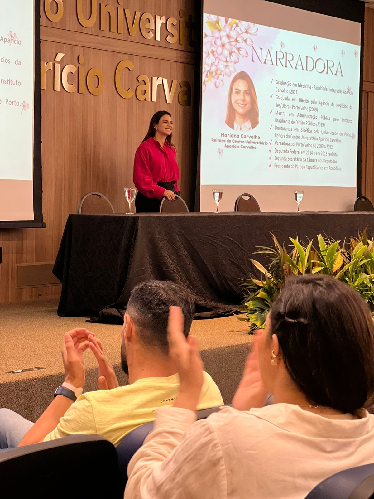 A reitora Dra. Mariana Carvalho agradeceu o espaço para falar da importância das mulheres no mundo corporativo: “Falamos sobre os lugares que as mulheres cada vez mais têm conquistado na nossa sociedade. Mesmo que com muita luta, temos provado que lugar de mulher é onde ela quiser! Deixo meus parabéns para todas as mulheres que fazem o Grupo Educacional Aparício Carvalho: nossas colaboradoras, nossas professoras, nossas coordenadoras e nossas acadêmicas”.