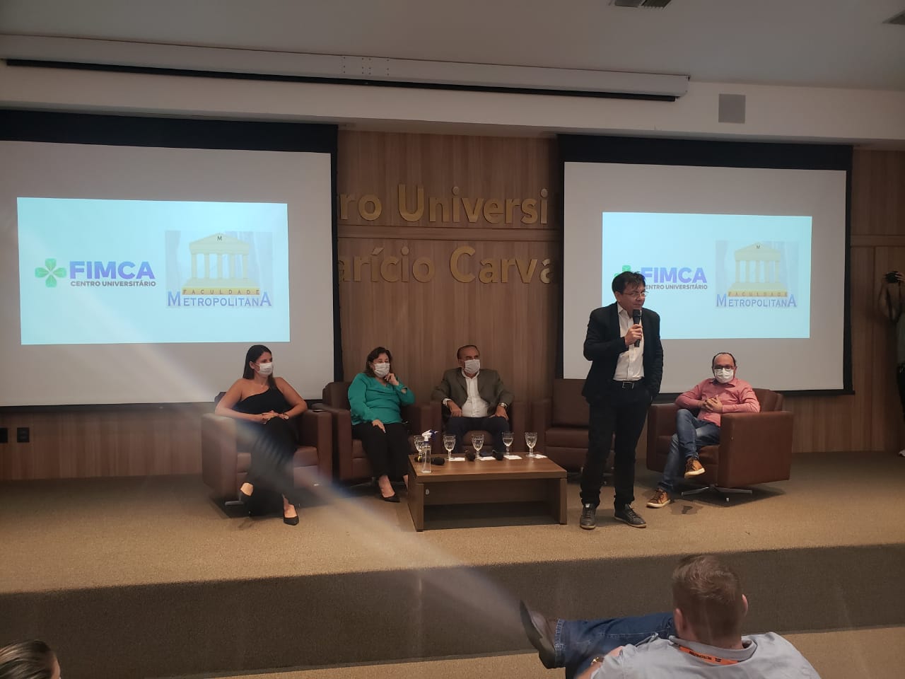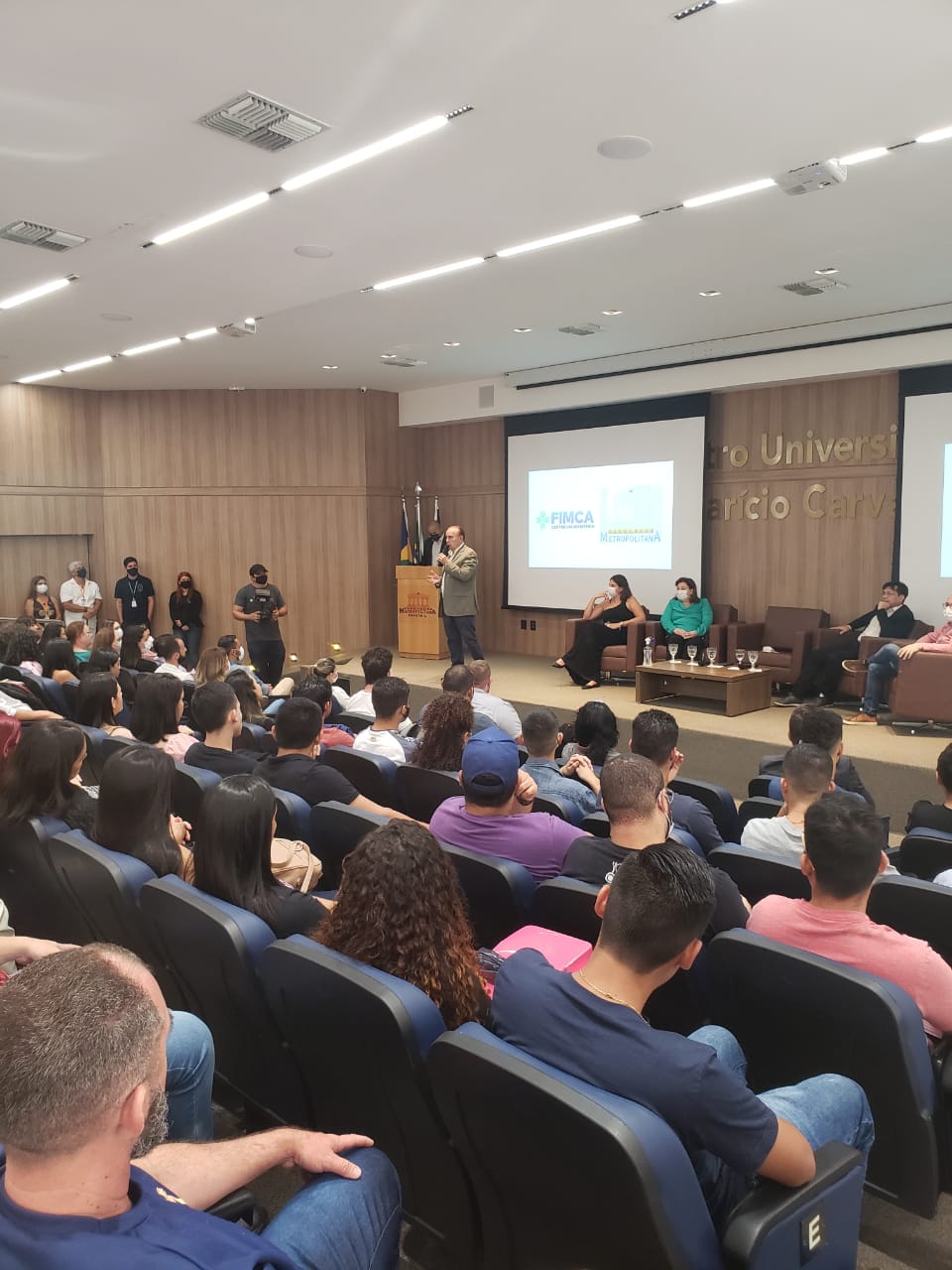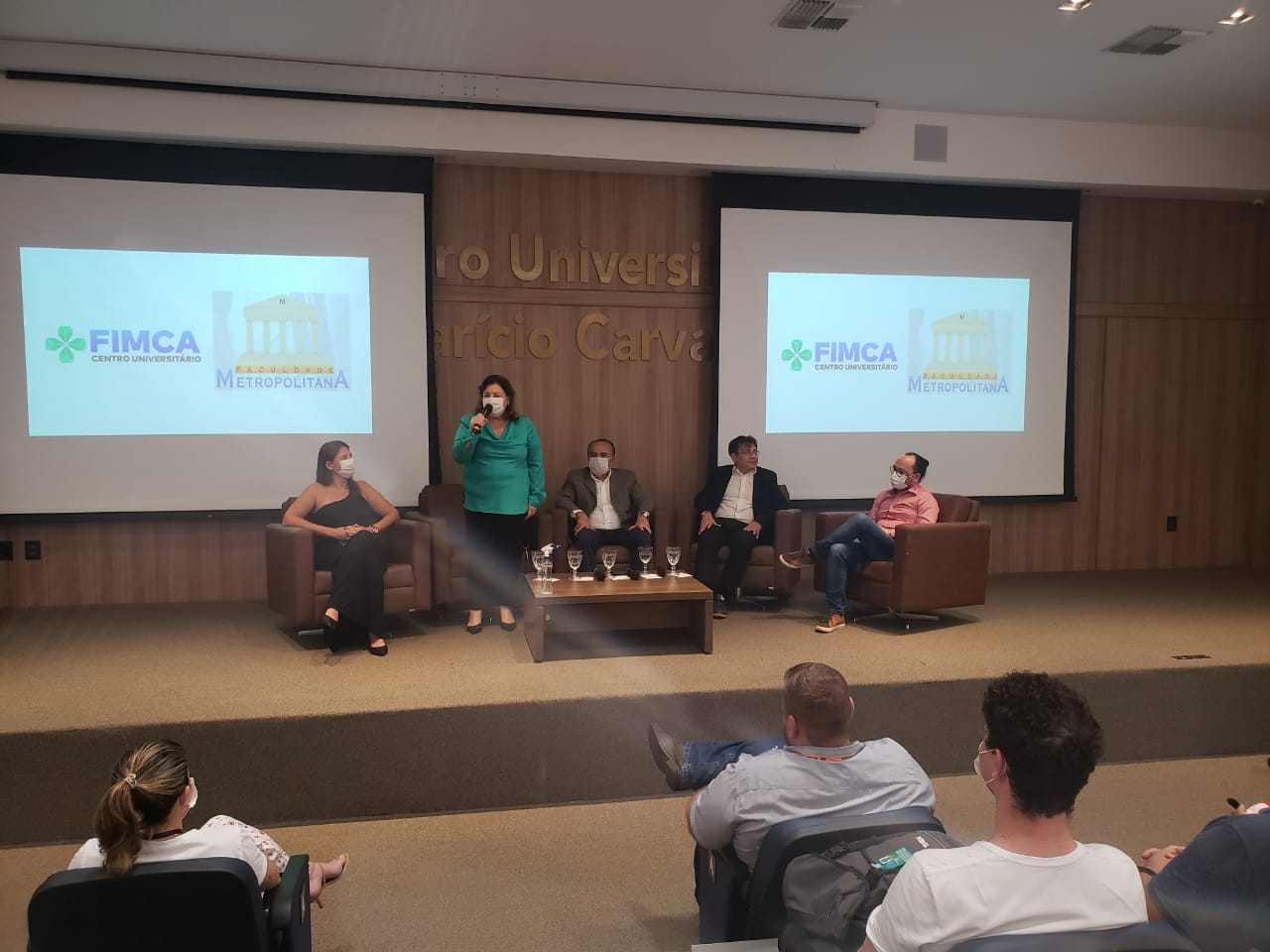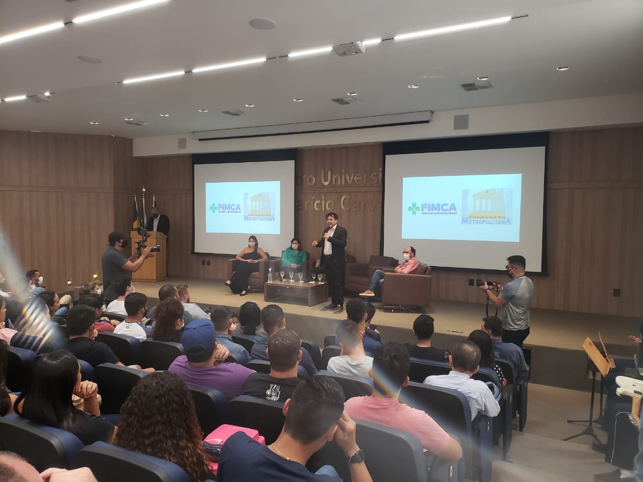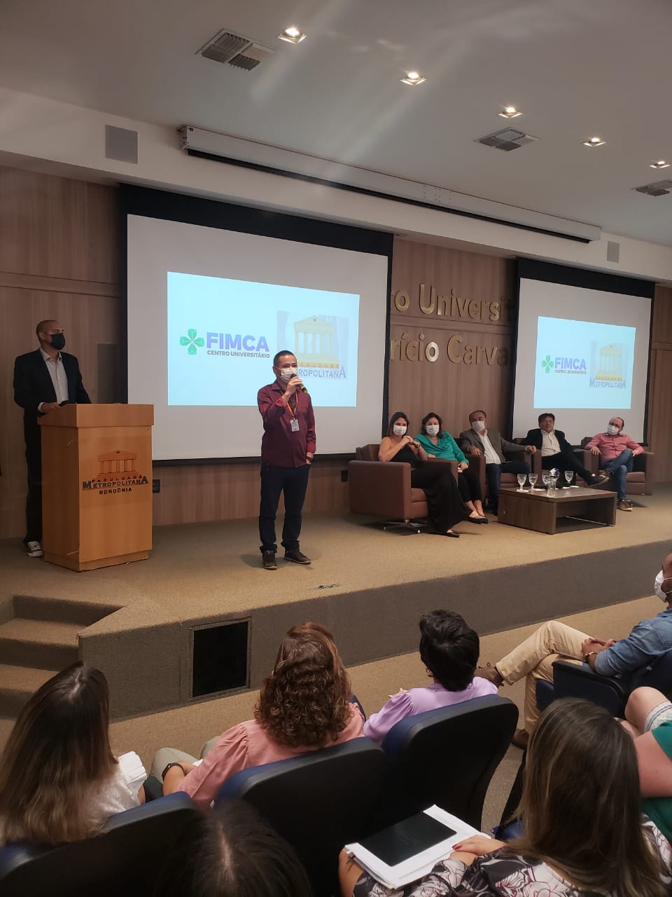 O Diretor Pedagógico Edimar Sartoro começou com a palavra, contando um pouco da história da FIMCA. Em seguida, falou o professor Luiz Ibanor, falando da qualidade dos nossos cursos e que temos os melhores professores, além da nota máxima conferida pelo MEC. A Diretora Acadêmica Dra. Nelice Batistelli expôs a importância da dedicação do acadêmico. Que de nada vai adiantar a melhor estrutura e os melhores docentes, se o aluno não fizer sua parte. A Dra. Maria Silvia relembrou o início da instituição, em 1998, e falou da emoção de ver o quanto cresceu. O Dr. Aparício Carvalho deu as boas-vindas aos calouros, ressaltando que terão a melhor estrutura, os melhores professores, e uma instituição empenhada em oferecer o melhor aos novos acadêmicos.