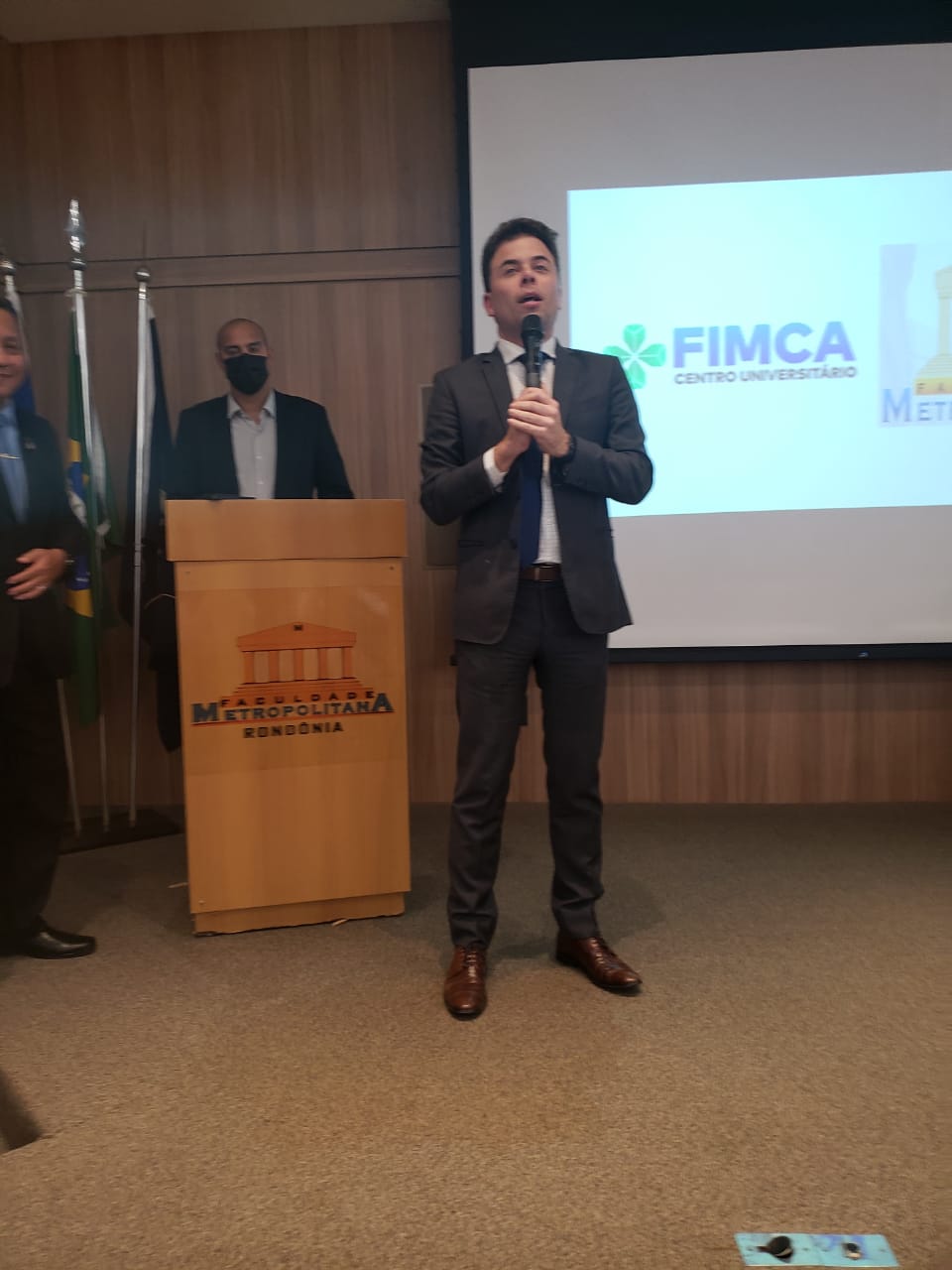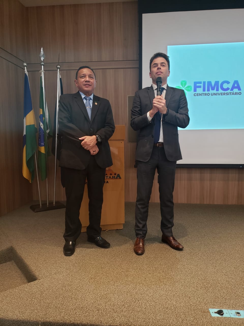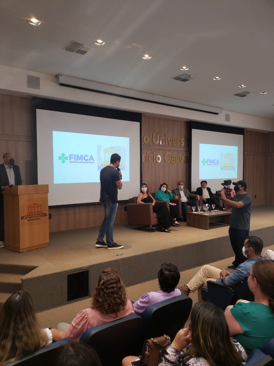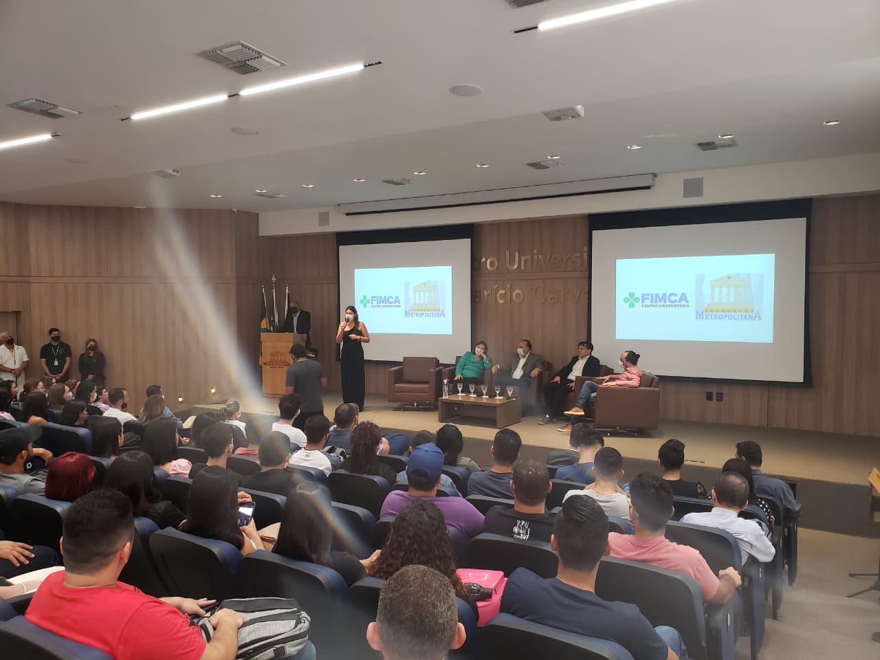 O Diretor Pedagógico Edimar Sartoro começou com a palavra, contando um pouco da história da FIMCA. Em seguida, falou o professor Luiz Ibanor, falando da qualidade dos nossos cursos e que temos os melhores professores, além da nota máxima conferida pelo MEC. A Diretora Acadêmica Dra. Nelice Batistelli expôs a importância da dedicação do acadêmico. Que de nada vai adiantar a melhor estrutura e os melhores docentes, se o aluno não fizer sua parte. A Dra. Maria Silvia relembrou o início da instituição, em 1998, e falou da emoção de ver o quanto cresceu. O Dr. Aparício Carvalho deu as boas-vindas aos calouros, ressaltando que terão a melhor estrutura, os melhores professores, e uma instituição empenhada em oferecer o melhor aos novos acadêmicos.
