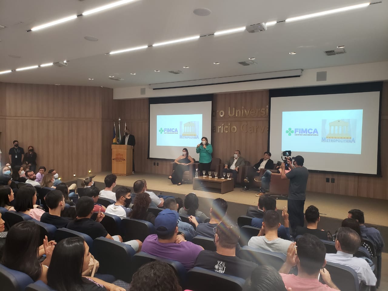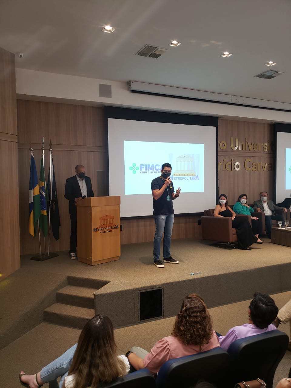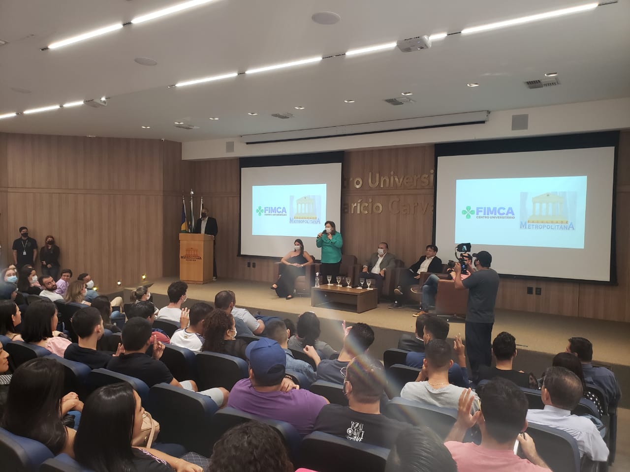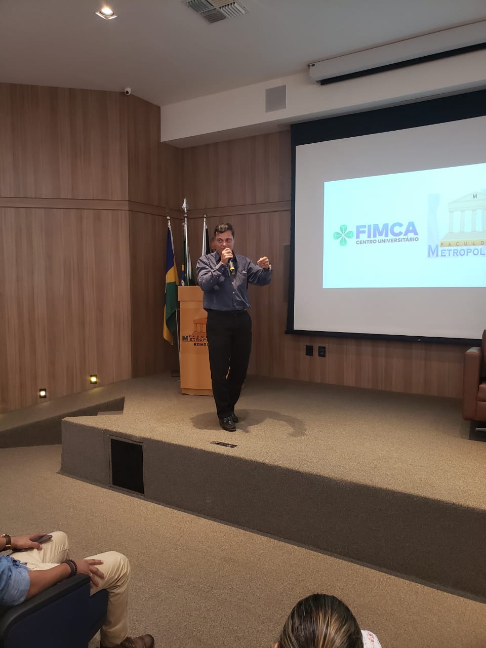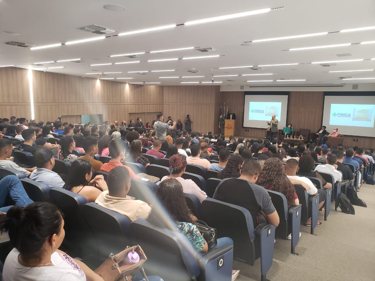 O Diretor Pedagógico Edimar Sartoro começou com a palavra, contando um pouco da história da FIMCA. Em seguida, falou o professor Luiz Ibanor, falando da qualidade dos nossos cursos e que temos os melhores professores, além da nota máxima conferida pelo MEC. A Diretora Acadêmica Dra. Nelice Batistelli expôs a importância da dedicação do acadêmico. Que de nada vai adiantar a melhor estrutura e os melhores docentes, se o aluno não fizer sua parte. A Dra. Maria Silvia relembrou o início da instituição, em 1998, e falou da emoção de ver o quanto cresceu. O Dr. Aparício Carvalho deu as boas-vindas aos calouros, ressaltando que terão a melhor estrutura, os melhores professores, e uma instituição empenhada em oferecer o melhor aos novos acadêmicos.