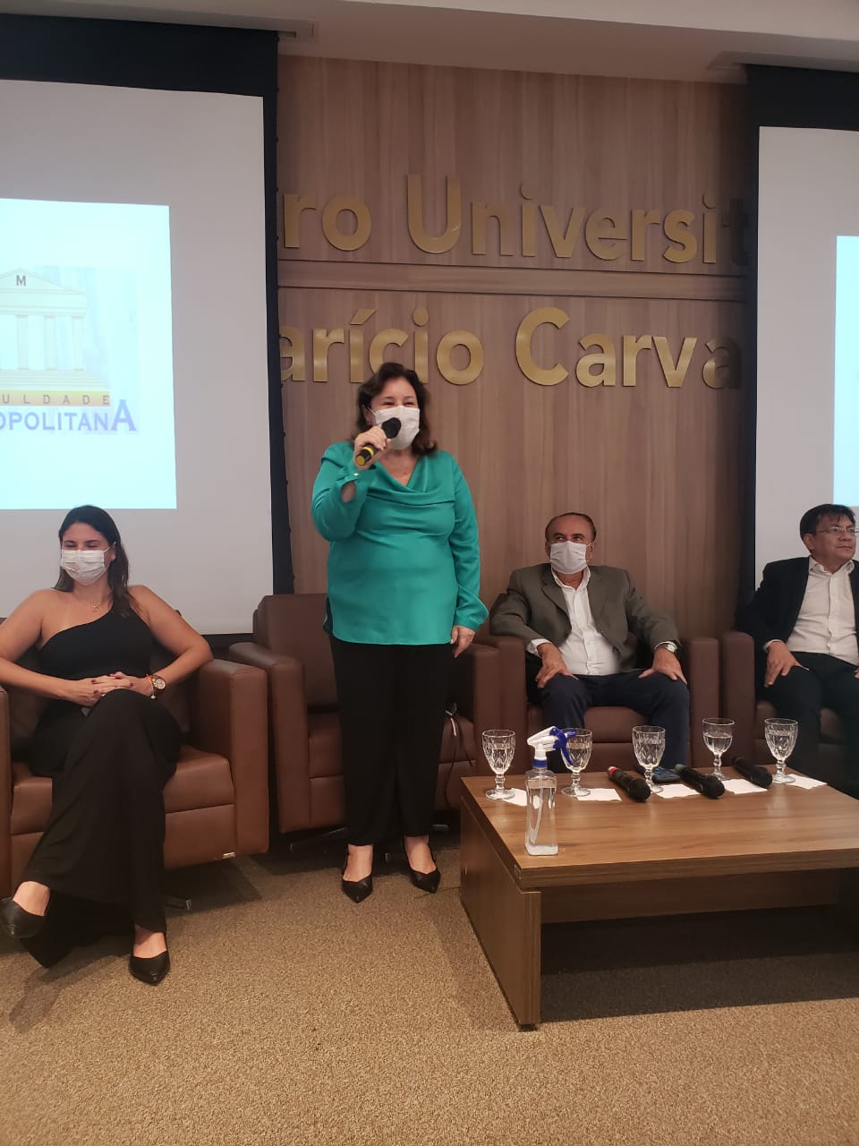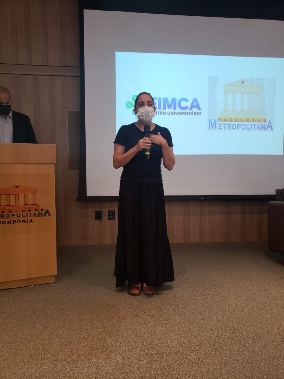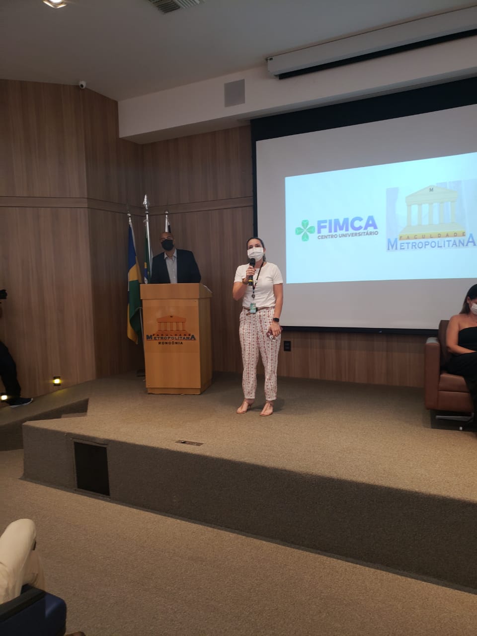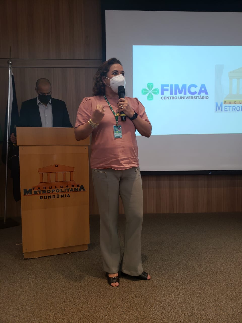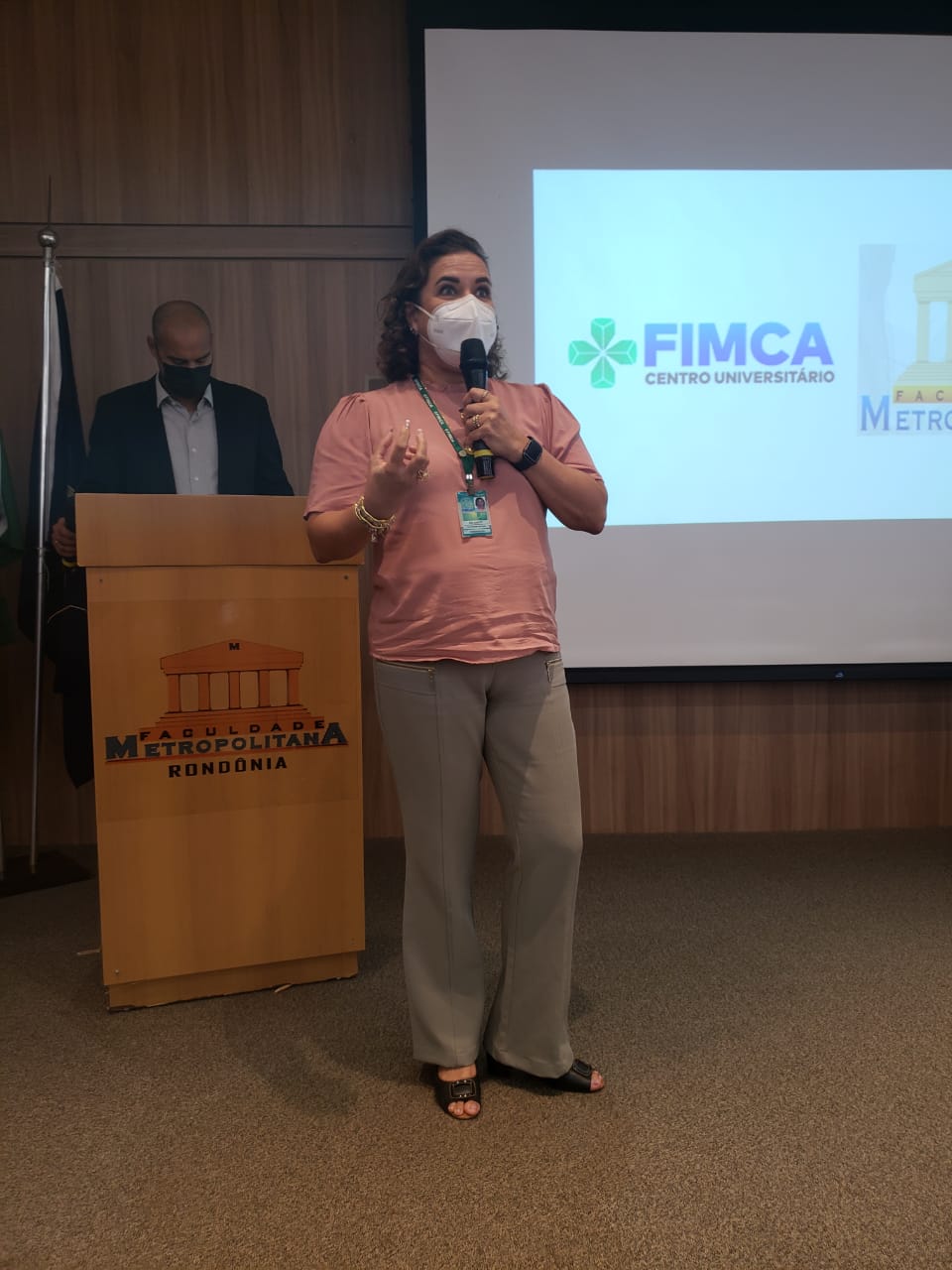 O Diretor Pedagógico Edimar Sartoro começou com a palavra, contando um pouco da história da FIMCA. Em seguida, falou o professor Luiz Ibanor, falando da qualidade dos nossos cursos e que temos os melhores professores, além da nota máxima conferida pelo MEC. A Diretora Acadêmica Dra. Nelice Batistelli expôs a importância da dedicação do acadêmico. Que de nada vai adiantar a melhor estrutura e os melhores docentes, se o aluno não fizer sua parte. A Dra. Maria Silvia relembrou o início da instituição, em 1998, e falou da emoção de ver o quanto cresceu. O Dr. Aparício Carvalho deu as boas-vindas aos calouros, ressaltando que terão a melhor estrutura, os melhores professores, e uma instituição empenhada em oferecer o melhor aos novos acadêmicos.