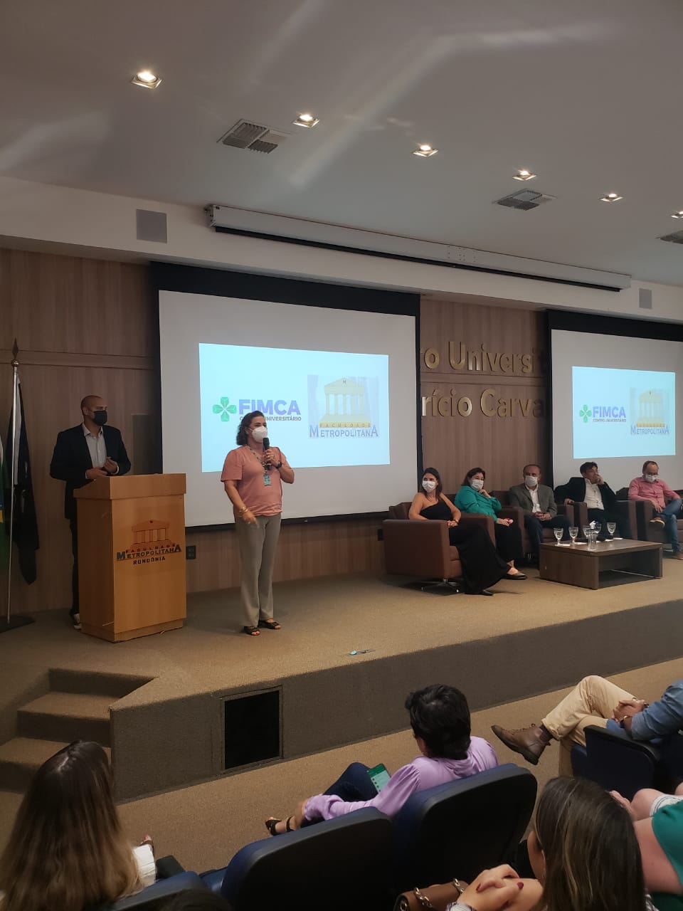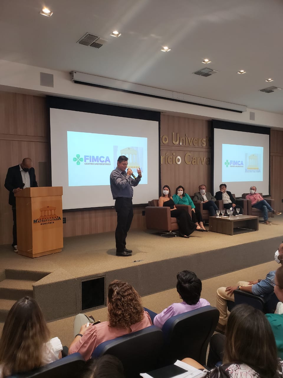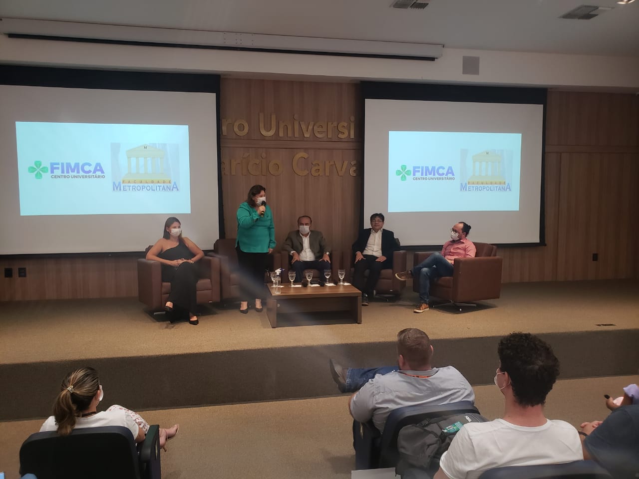 Nesta segunda (08), no Centro Universitário Aparício Carvalho – FIMCA, aconteceu a abertura da Semana dos Calouros. O evento foi realizado no auditório Dra. Maria Silvia Carvalho, a partir das 19:30h. Estiveram presentes o magnífico Reitor do Centro Universitário FIMCA, Dr. Aparício Carvalho, a Ex.ma Vice-Reitora Dra. Maria Silvia Fonseca Ribeiro Carvalho de Moraes, a Diretora Acadêmica Dra. Nelice Milena Batistelli, o Diretor Pedagógico Me. Edimar Sartoro, e o Vice-Diretor da Faculdade Metropolitana professor Me. Luiz Ibanor, além dos coordenadores de todos os cursos do Centro Universitário FIMCA e Faculdade Metropolitana.