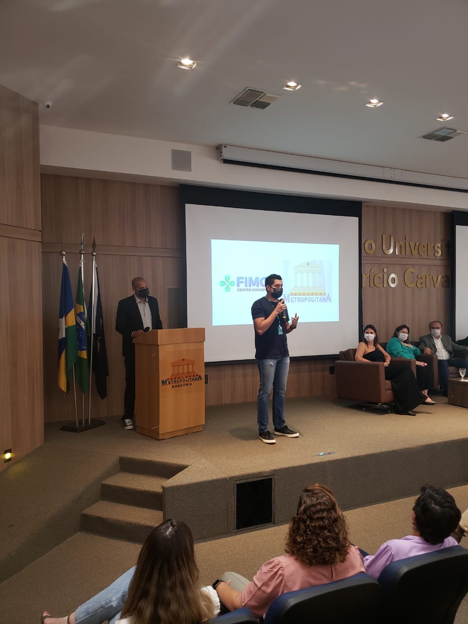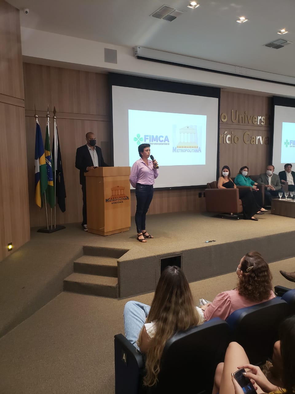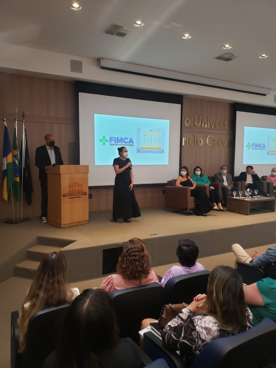 Nesta segunda (08), no Centro Universitário Aparício Carvalho – FIMCA, aconteceu a abertura da Semana dos Calouros. O evento foi realizado no auditório Dra. Maria Silvia Carvalho, a partir das 19:30h. Estiveram presentes o magnífico Reitor do Centro Universitário FIMCA, Dr. Aparício Carvalho, a Ex.ma Vice-Reitora Dra. Maria Silvia Fonseca Ribeiro Carvalho de Moraes, a Diretora Acadêmica Dra. Nelice Milena Batistelli, o Diretor Pedagógico Me. Edimar Sartoro, e o Vice-Diretor da Faculdade Metropolitana professor Me. Luiz Ibanor, além dos coordenadores de todos os cursos do Centro Universitário FIMCA e Faculdade Metropolitana.
