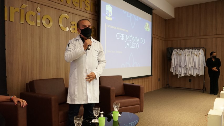 Ontem a turma de Medicina da Faculdade Metropolitana realizou a Cerimônia do Jaleco. Durante o evento o Coordenador de Medicina da Faculdade Metropolitana Dr. Aparício Carvalho de Moraes  esteve presente e trouxe uma palavra de ânimo e sucesso para os acadêmicos. Participou também da solenidade a Diretora acadêmica a Professora Nelice Bastitelli e o coordenador adjunto do curdo de Medicina Dr. George.