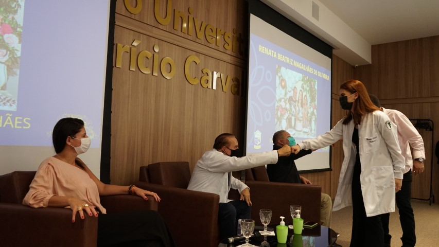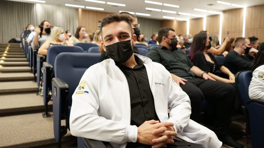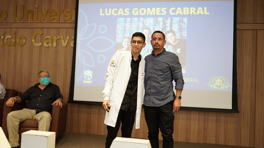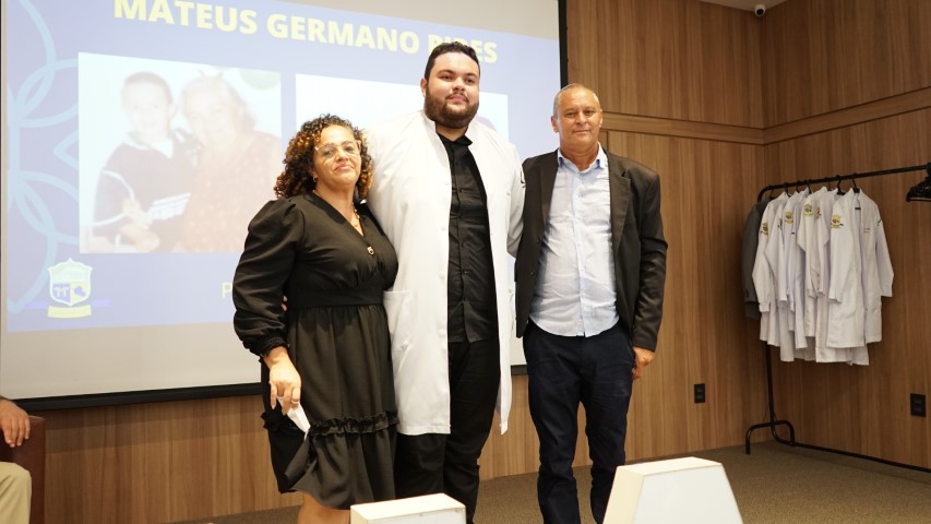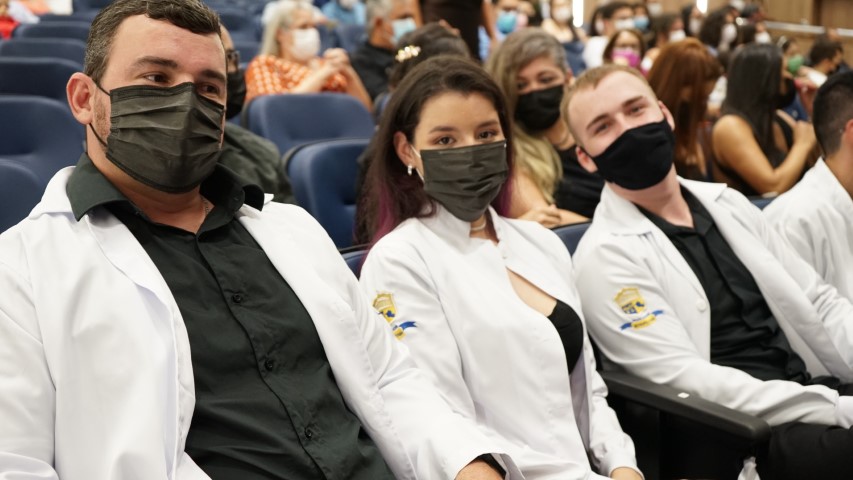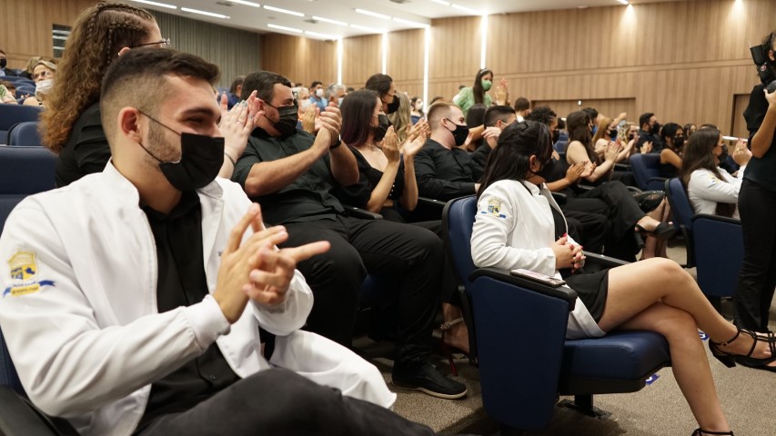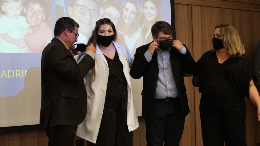 Os familiares participaram da cerimônia e puderam ter a honra de vestir os acadêmicos com o jaleco, um símbolo de novo caminho e jornada de cada futuro profissional da saúde. O jaleco é um EPI (Equipamento de Proteção Individual) e não apenas isso; ele é uma marca universal da Medicina, a sua cor branca representa bondade, limpeza e tranquilidade.